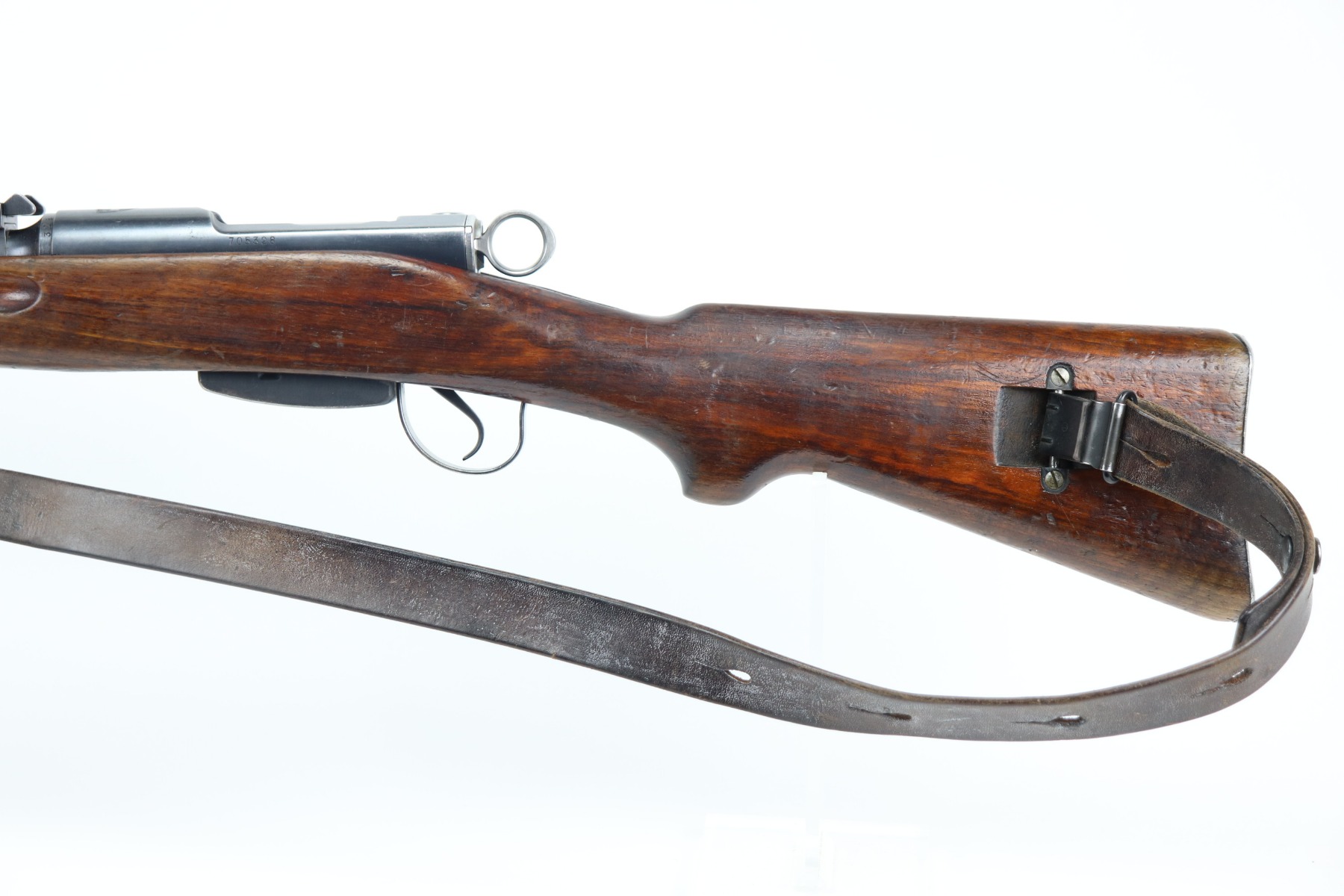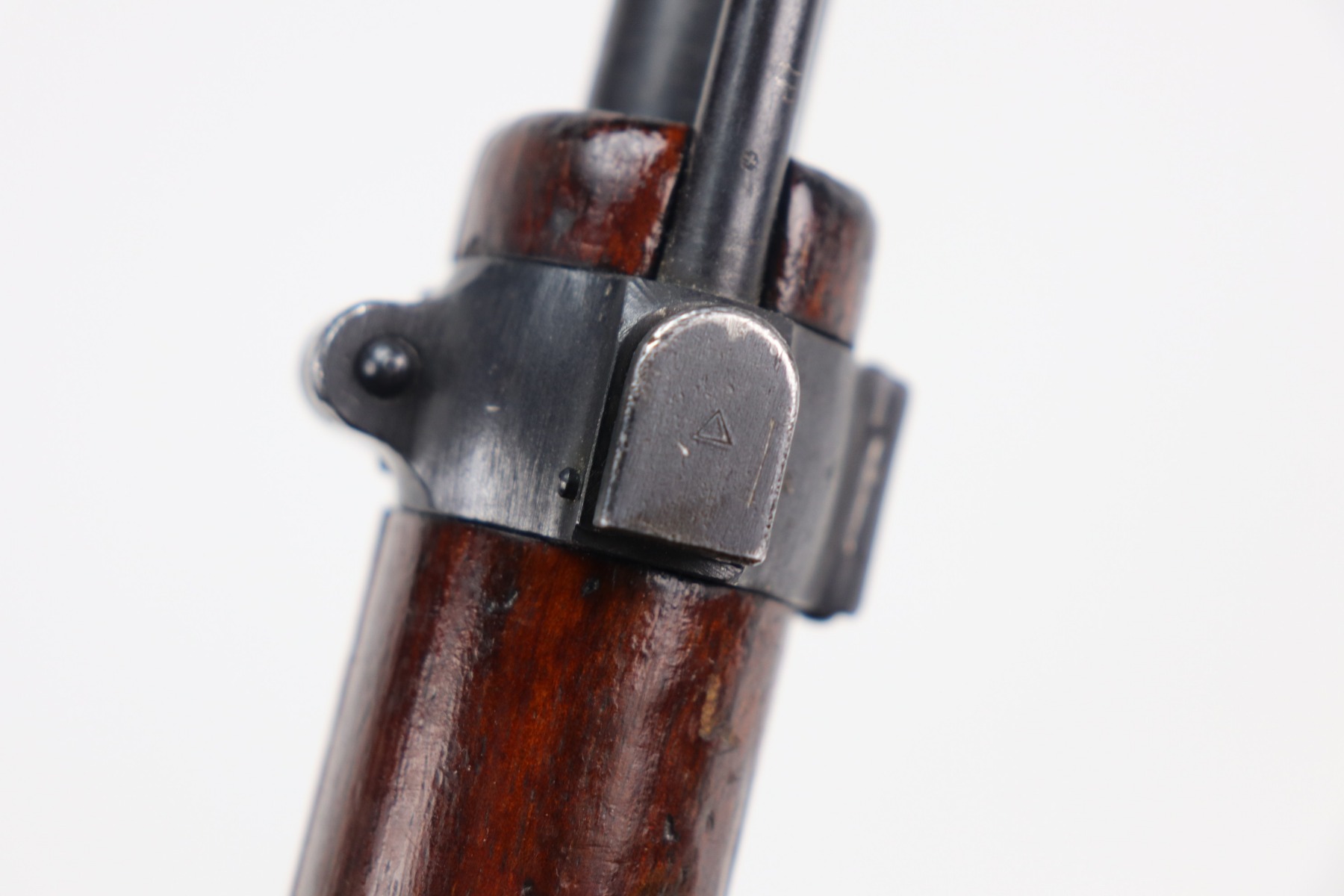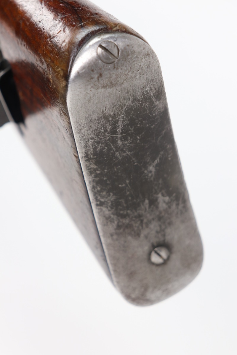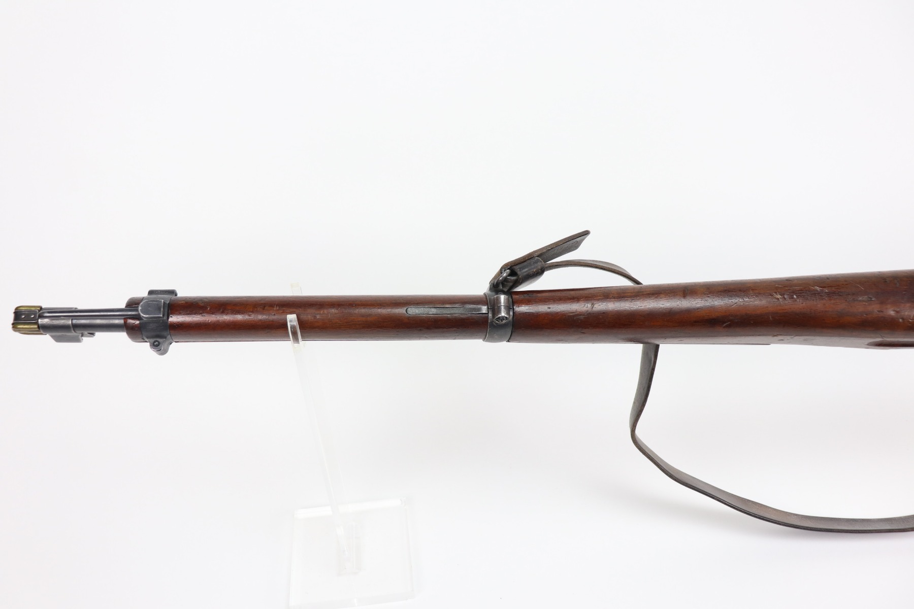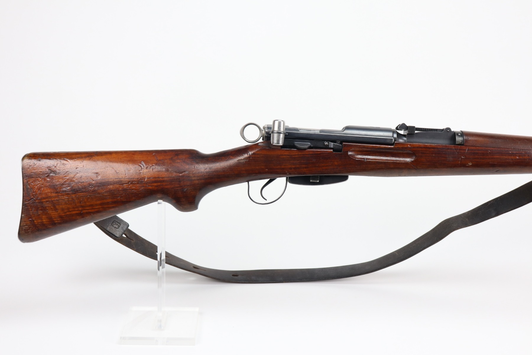 2/22/21 – This is an excellent example of a Waffenfabrik Bern Model K31 issued to the Swiss armed forces in 1942. This one is all matching and has a Swiss cross and shield on the receiver. It comes with an original muzzle cover and leather sling. There is an import mark on the left side of the receiver. The metal parts are excellent, retaining most of their finish. There is minor wear and handling marks on some of the high edges. The stock is very nice with minor dings, dents, and bruises throughout. The bore is excellent – shiny with strong rifling.