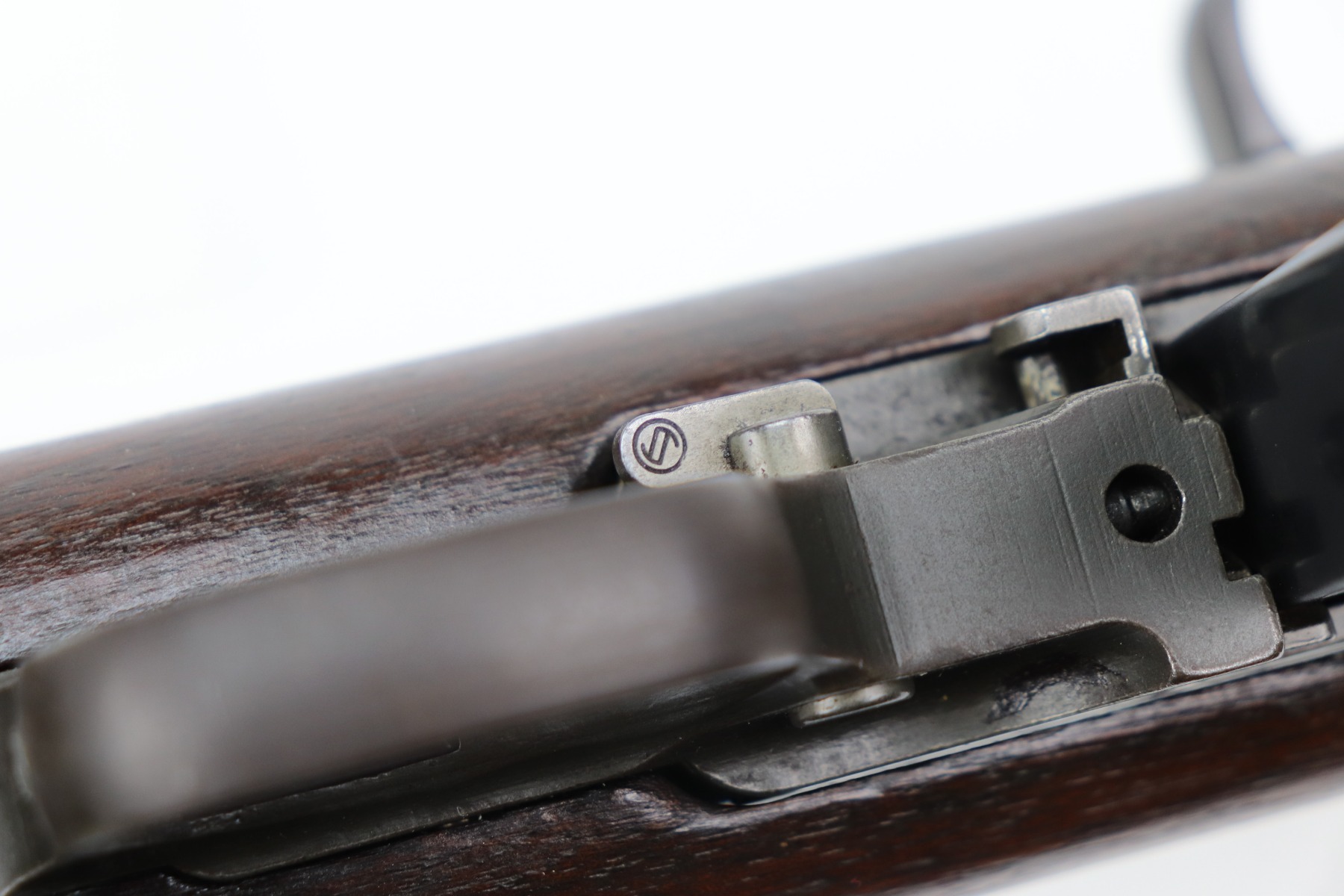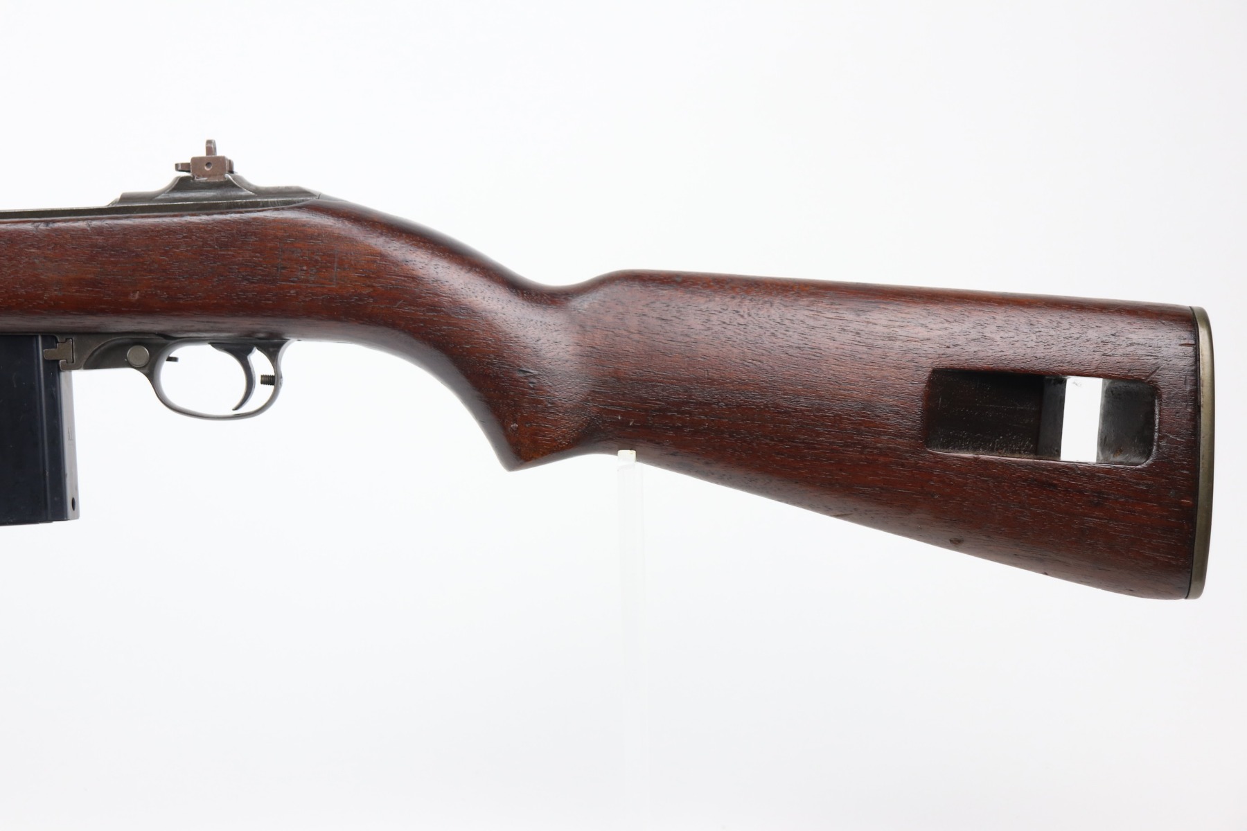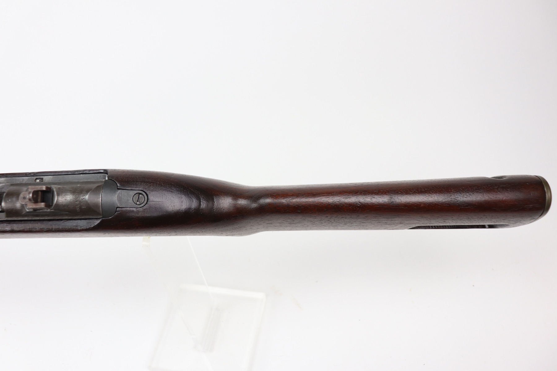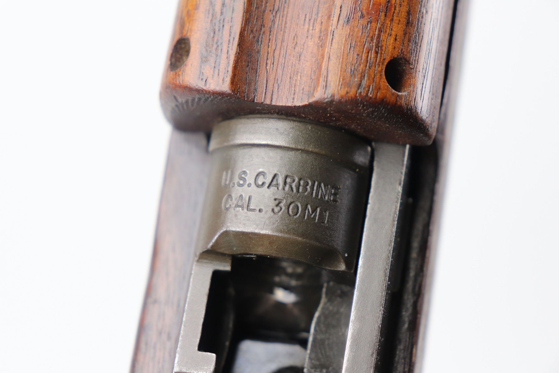 2/24/21 – This is an excellent example of an Inland M1 Carbine issued to the US military in 1943. The barrel is dated August of 1943. The barrel, stock, and receiver are all properly Inland. The stock has a proper cross-canon military cartouche and an RIA rework stamp on it. Overall, the gun is in excellent condition, retaining most of its finish. There is some wear on the bolt and minor thinning just behind the rear sight. The stock is excellent – just a few very minor handling marks here and there. Comes with a period-correct magazine. The bore is excellent – shiny with strong rifling.