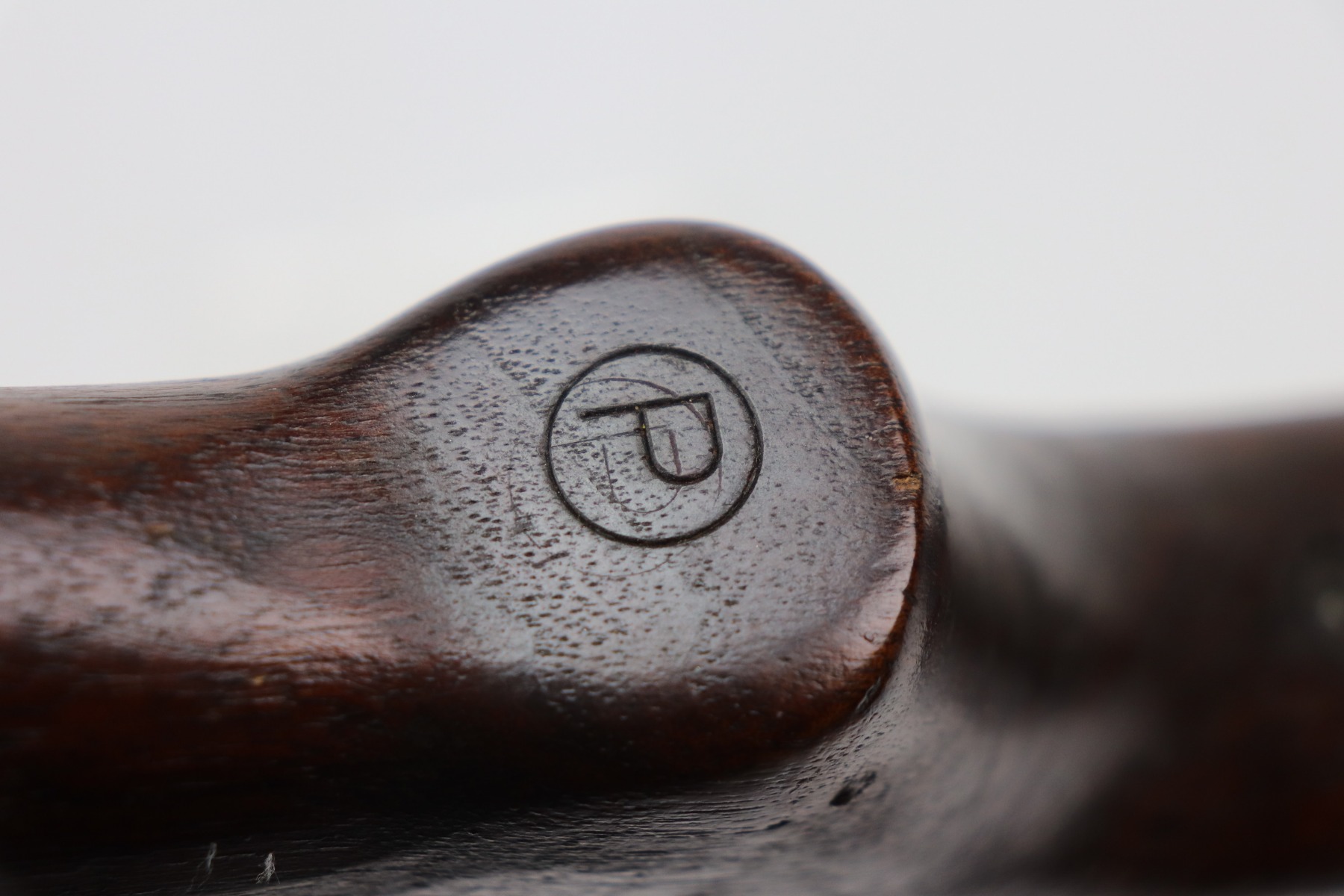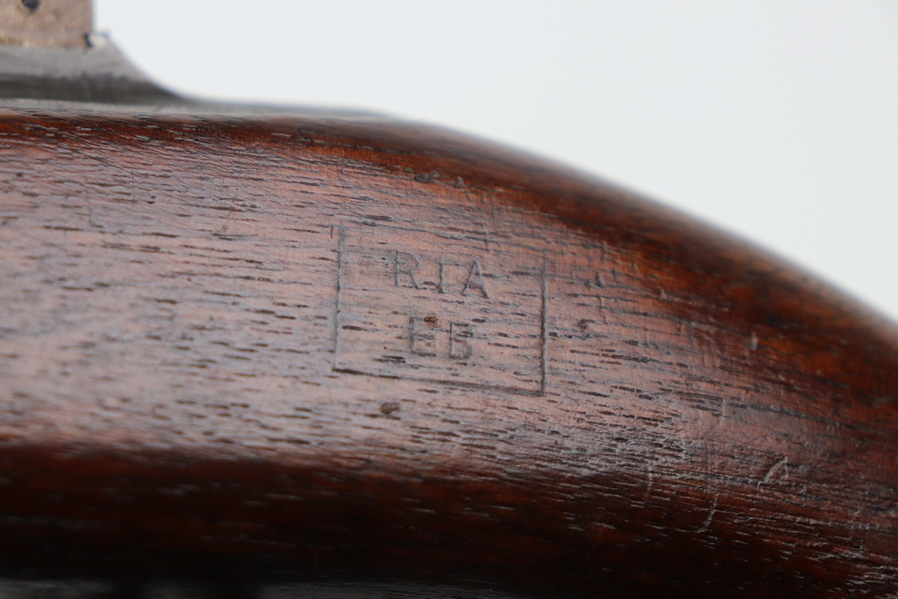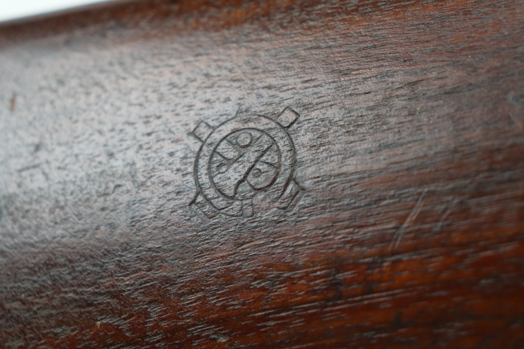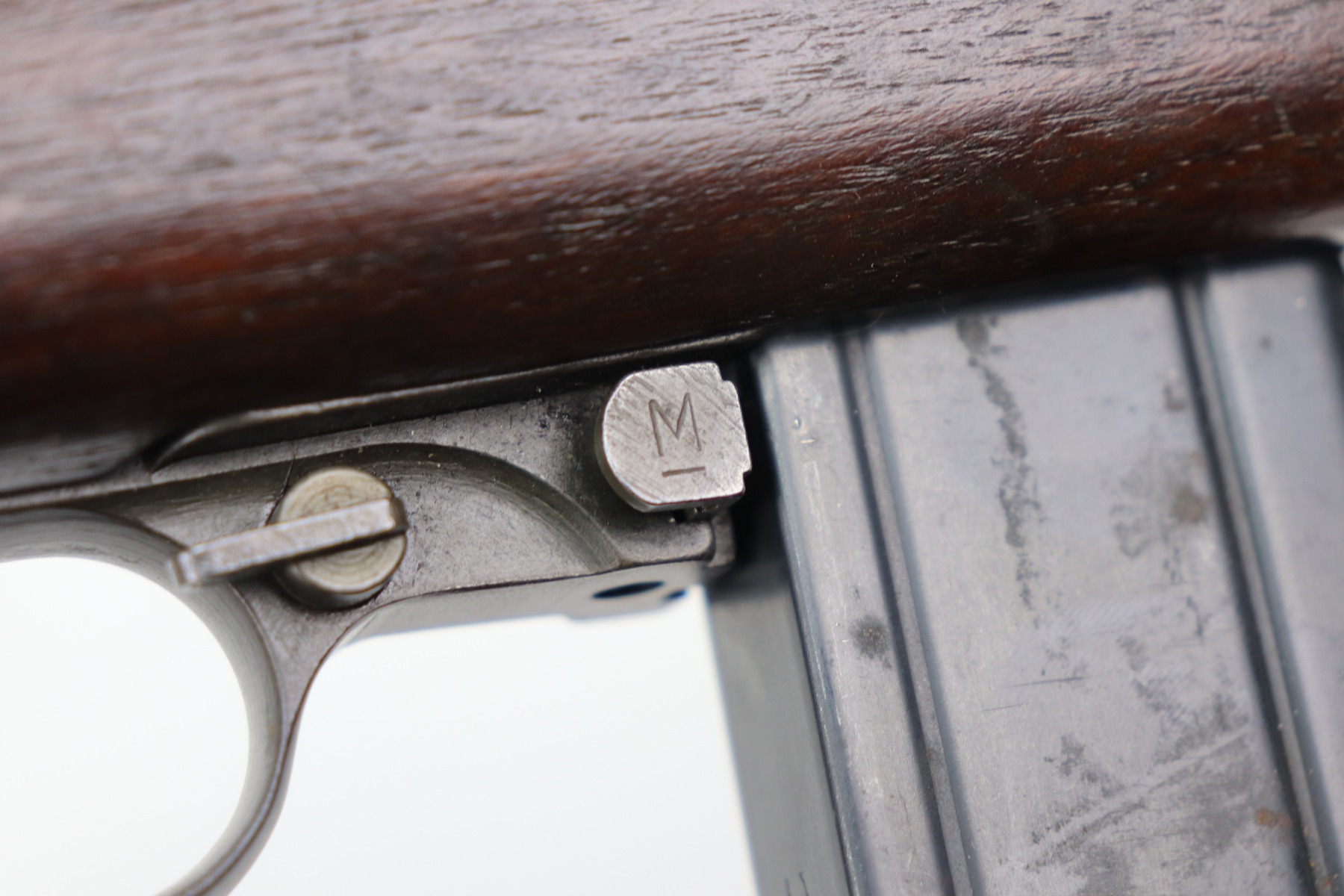 2/24/21 – This is an excellent example of an Inland M1 Carbine issued to the US military in 1943. The barrel is dated August of 1943. The barrel, stock, and receiver are all properly Inland. The stock has a proper cross-canon military cartouche and an RIA rework stamp on it. Overall, the gun is in excellent condition, retaining most of its finish. There is some wear on the bolt and minor thinning just behind the rear sight. The stock is excellent – just a few very minor handling marks here and there. Comes with a period-correct magazine. The bore is excellent – shiny with strong rifling.