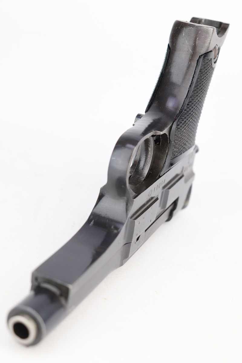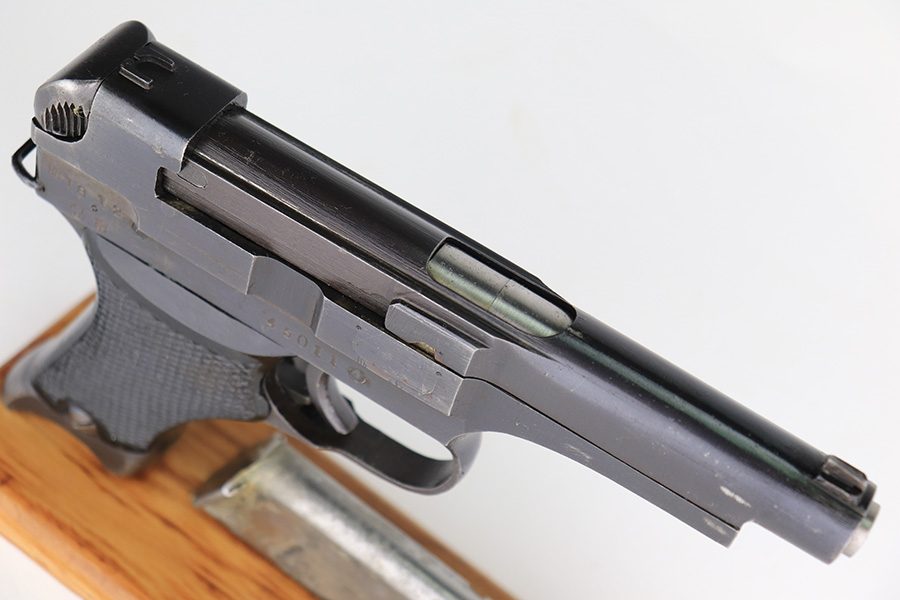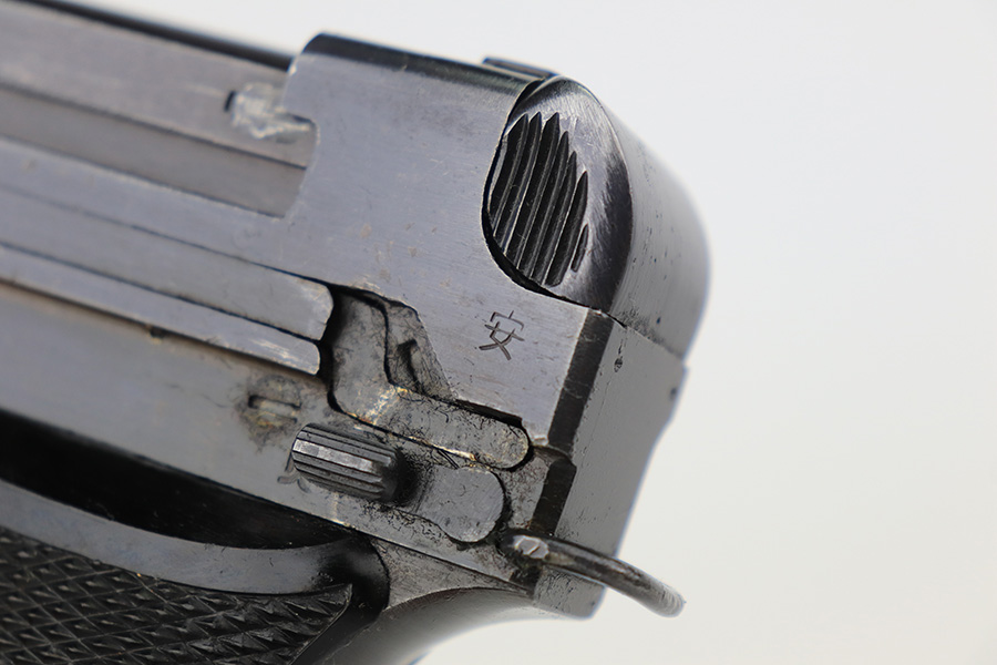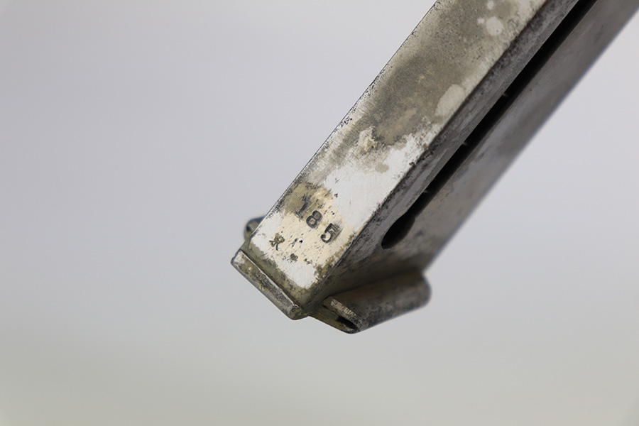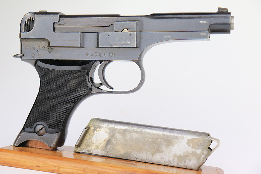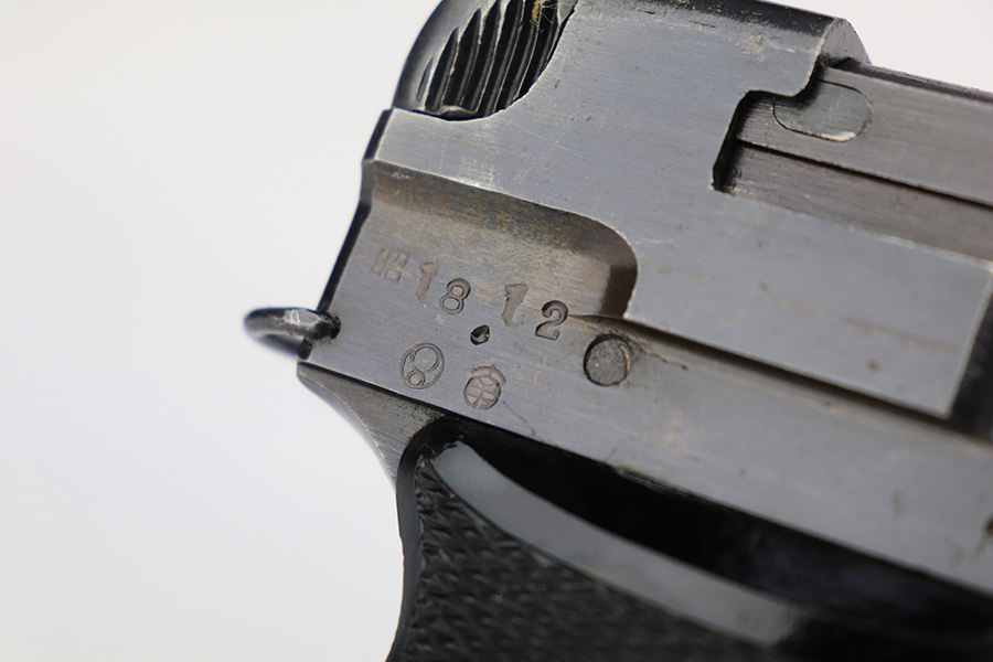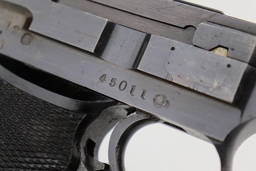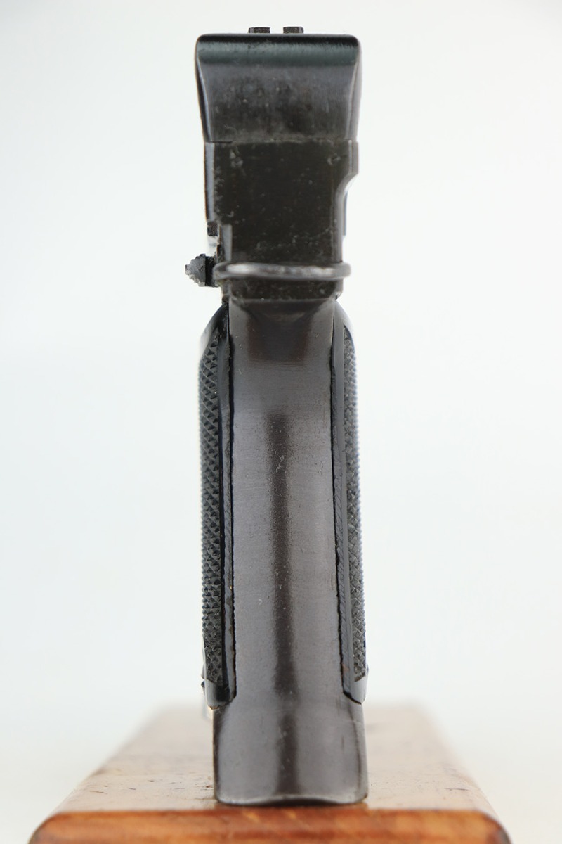 3/15/23 – This is an excellent example of a Nambu Type 94 issued to the Japanese military in December of 1943. It is all matching and has retained about 97% of its original finish. Very minor wear around the muzzle and on the high edges in general. Excellent period-correct black bakelite grips – the left panel is a little loose. Comes with a proper magazine that is mismatched to the gun. Minty bore.