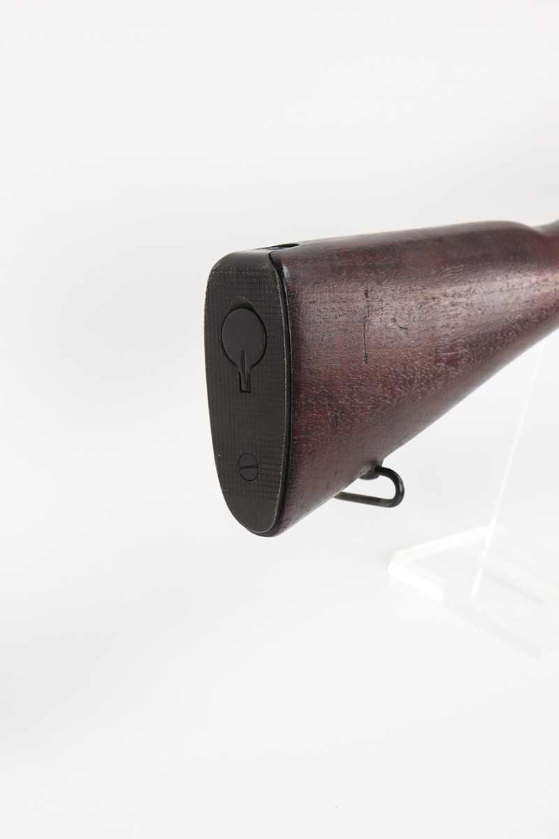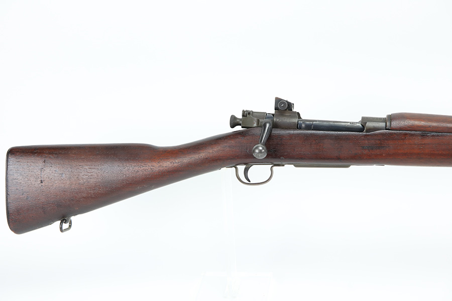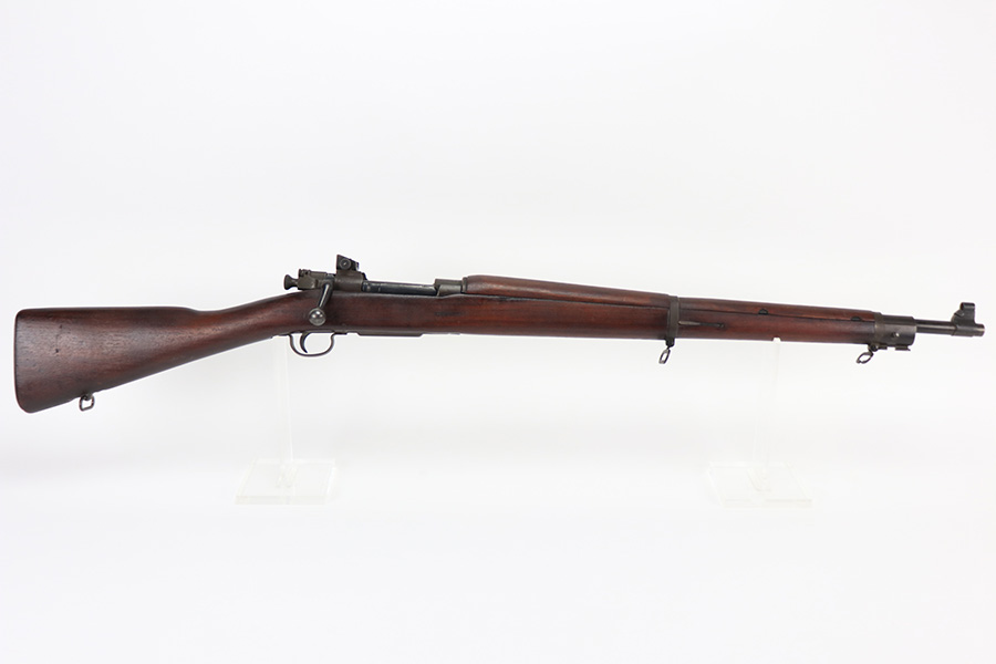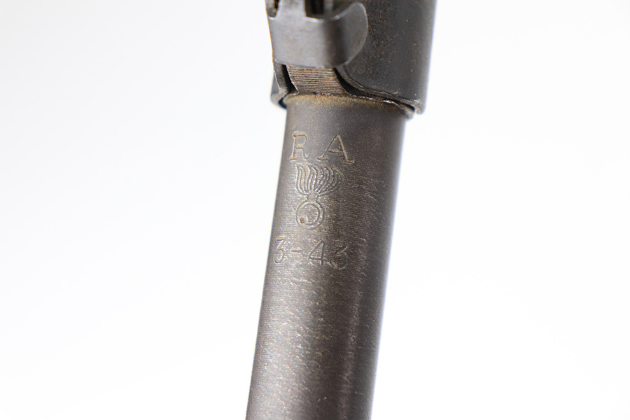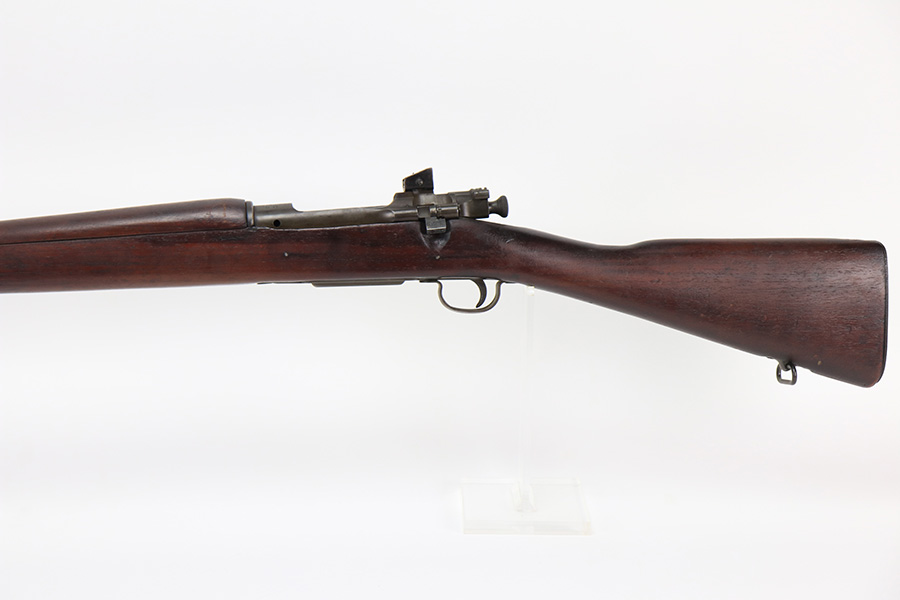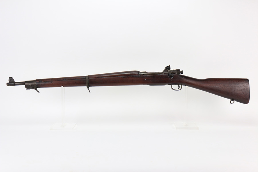 3/1/22 – This is an excellent example of a Remington Model 03-A3 issued to the US military in April of 1943. It has a Remington barrel dated March of 1943. The bolt is also marked Remington. The stock has no visible markings, so it was either replaced or sanded. Overall, the gun is in excellent condition. There is very minor thinning on the barrel, some splotchy discoloration on the front barrel band, and a few dots of dark discoloration on the receiver. The stock is minty with a few very minor dings and bruises. The bore has strong rifling, but there are tiny pits throughout. Comes with a period-correct front sight hood.