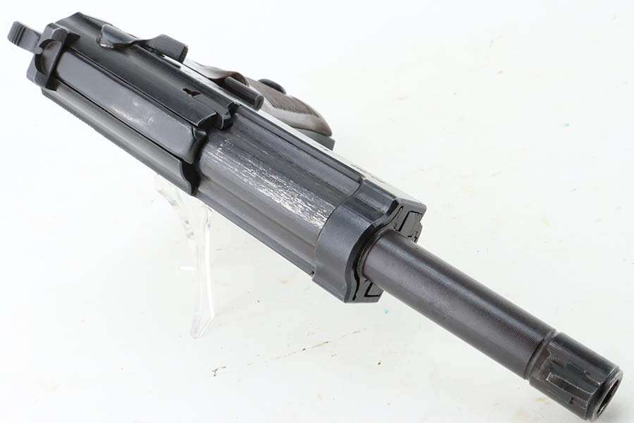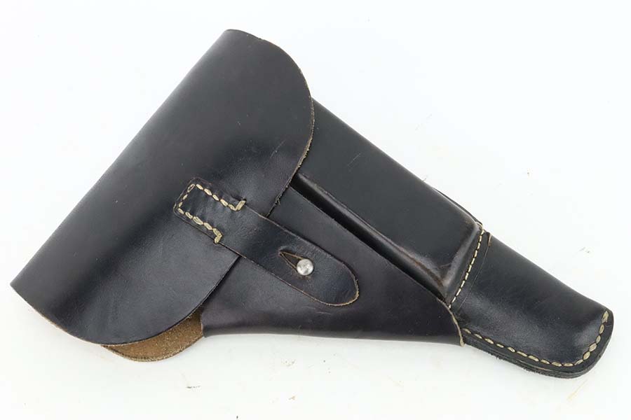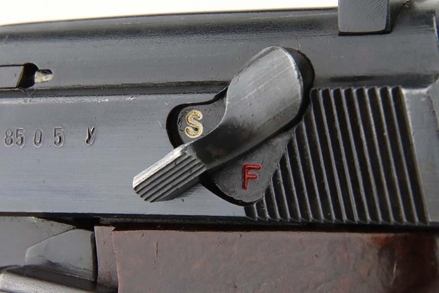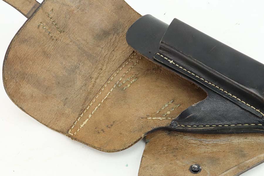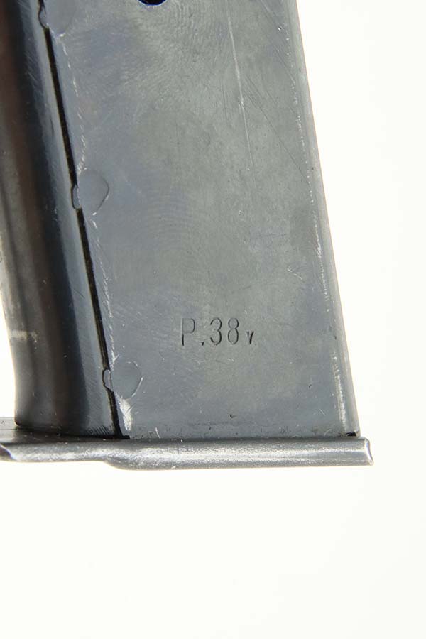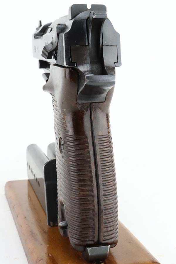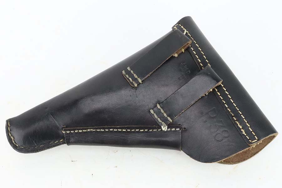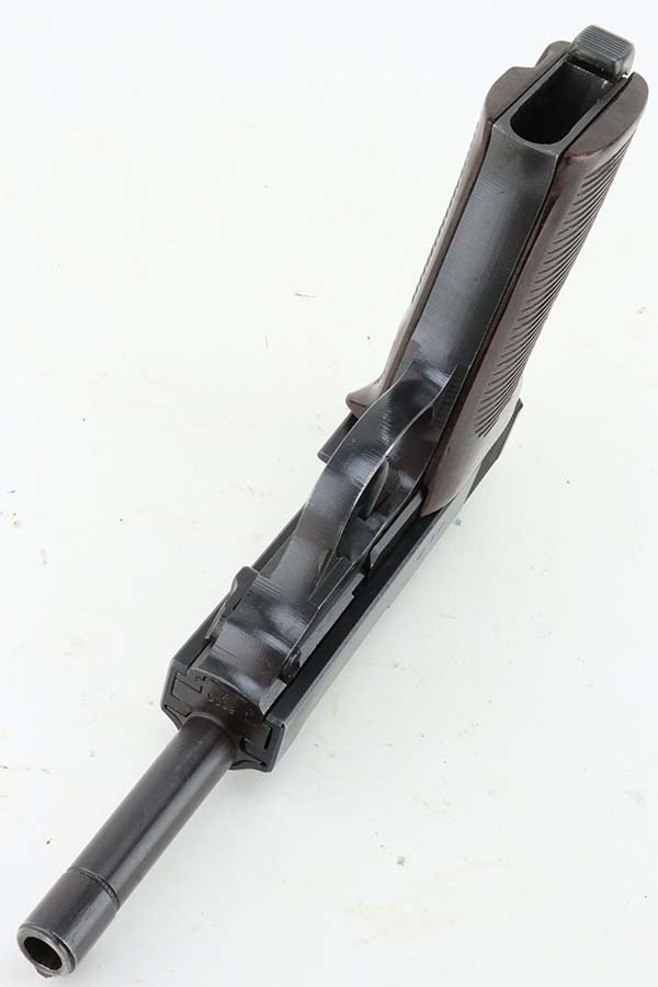 3/12/24 – This is an excellent example of a BYF 44 Mauser P.38 issued to the Nazi military in 1944. All matching with the proper “Waffen 135” military acceptance proofs. It comes as a rig with an un-issued 1944-dated holster, one “Waffen 135” magazine, and one “Waffen 706” jvd magazine. The gun itself has retained about 97% of its original wartime finish with just a hint of muzzle wear and some minor wear on the top of the barrel, visible through the ejection port. Fitted with reddish bakelite grips. The bore has strong rifling, but there is light freckling in the grooves. De-cocker is functional.