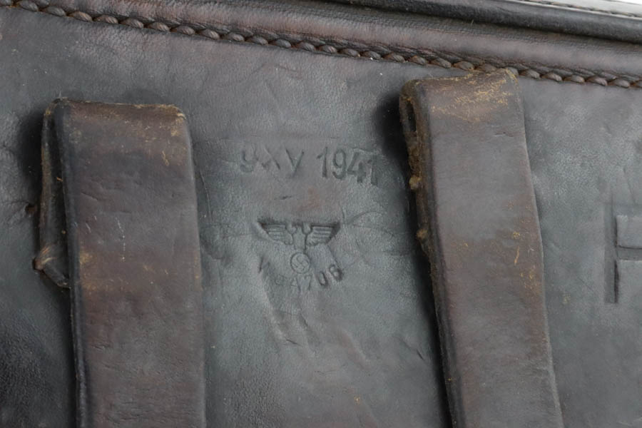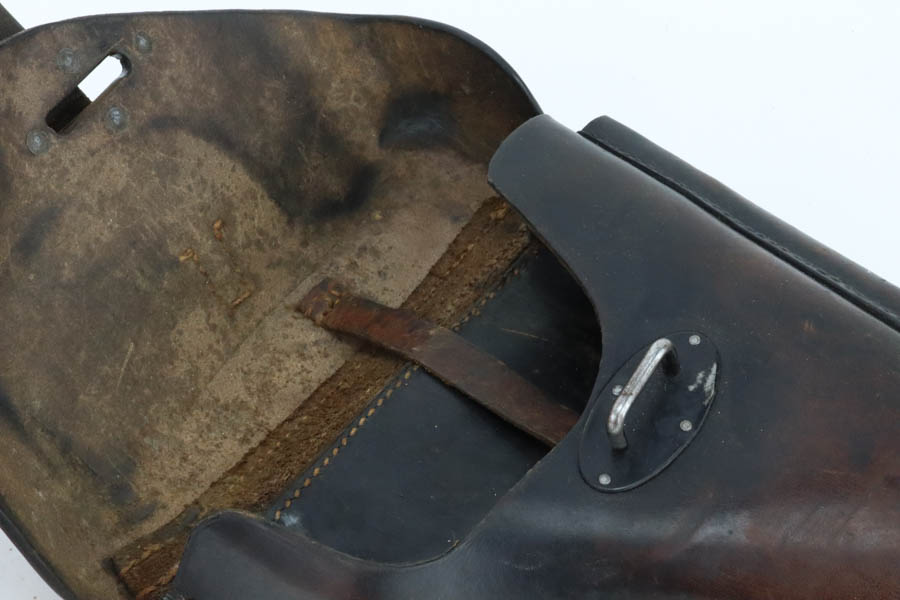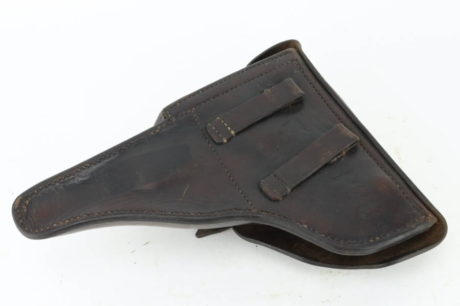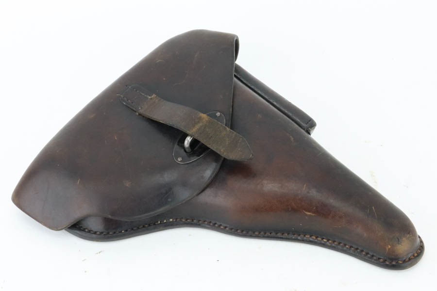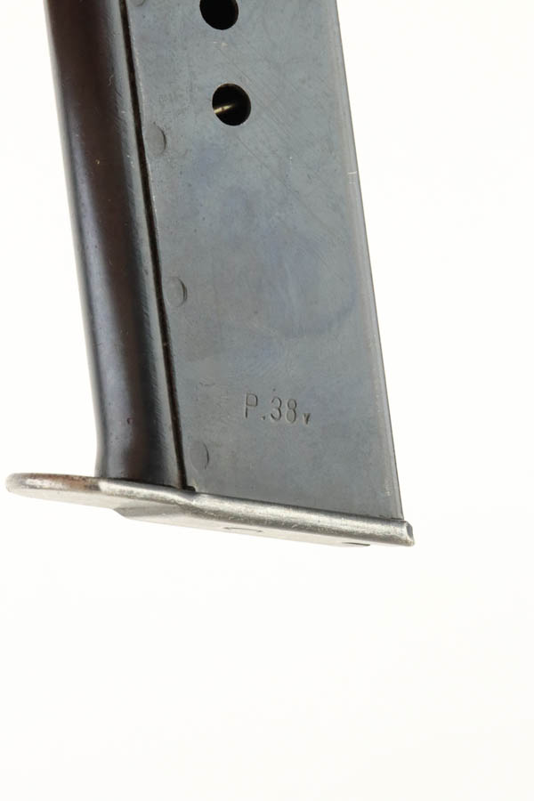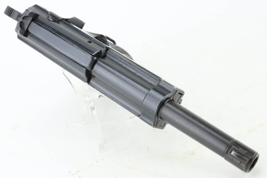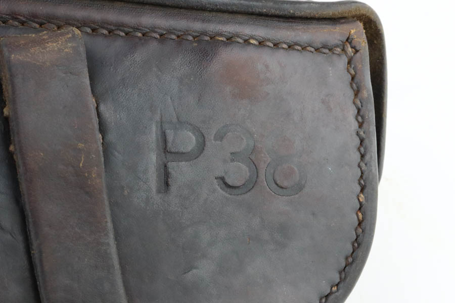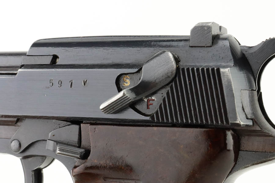 6/26/24 – This is an excellent example of a BYF 44 Mauser P.38 issued to the Nazi military in 1944. All matching with the proper “Waffen 135” military acceptance proofs. It comes as a rig with a very nice 1941-dated hard shell holster and one “Waffen 135” Mauser magazine. The gun itself has retained about 96% of its original finish. There is just very minor thinning on the front strap and hints of wear around the muzzle and on the front edges of the slide. Fitted with reddish bakelite grips. Mint bore. De-cocker is functional.