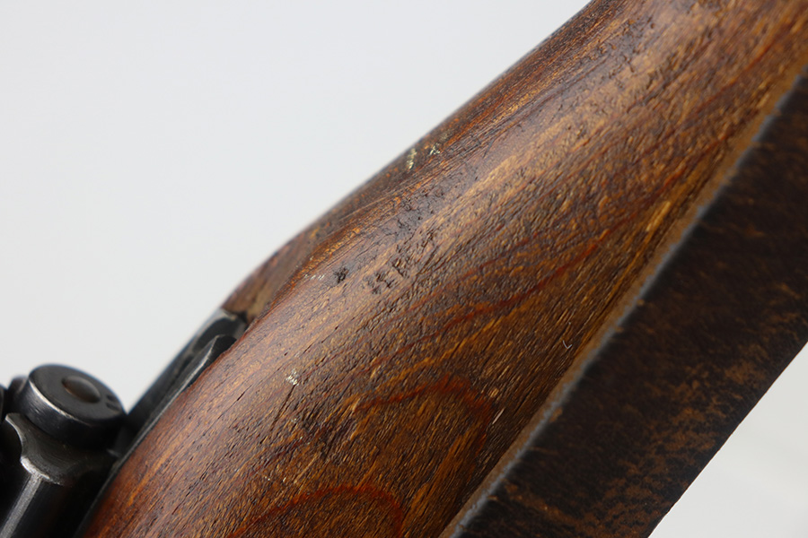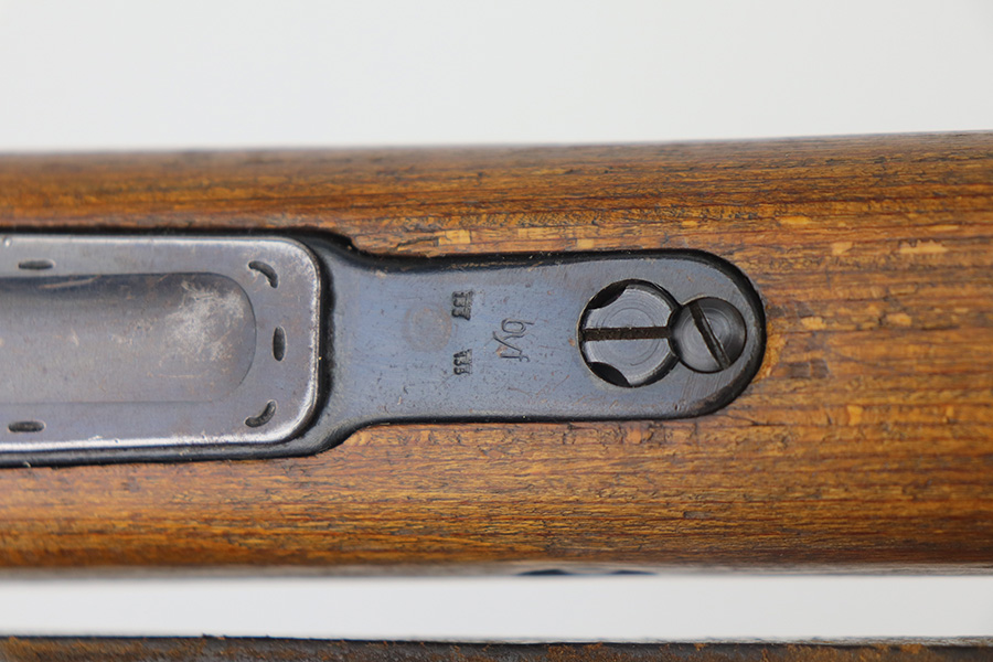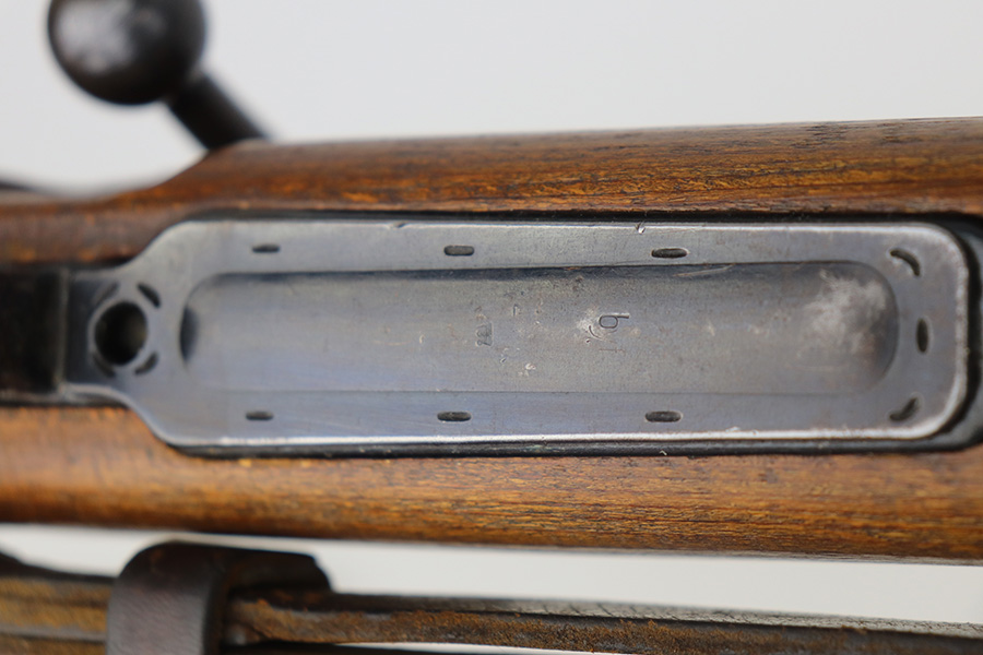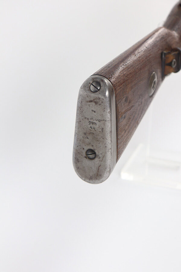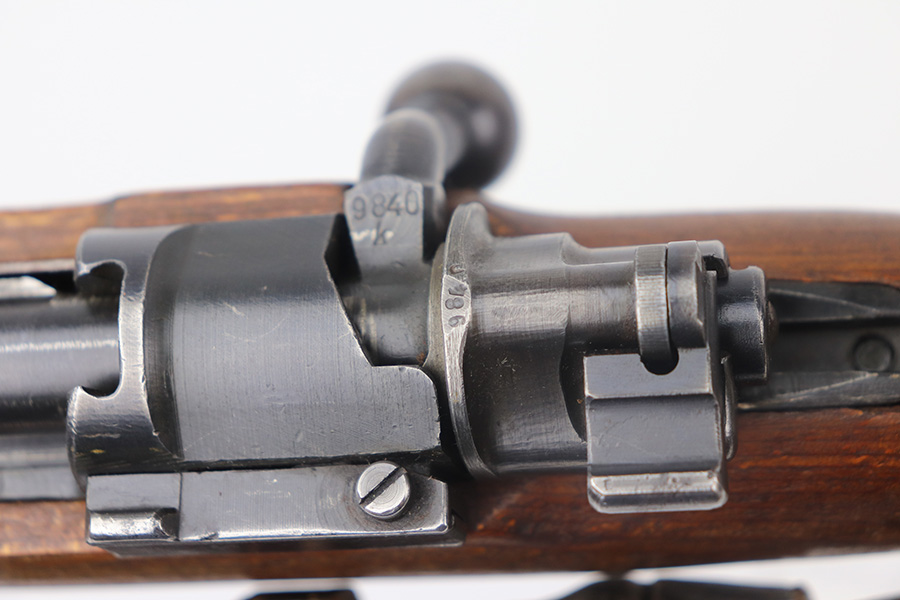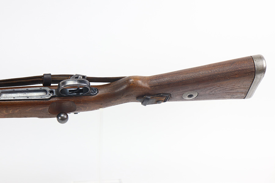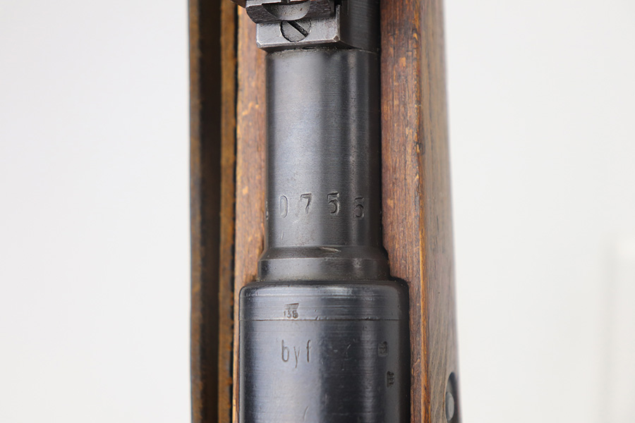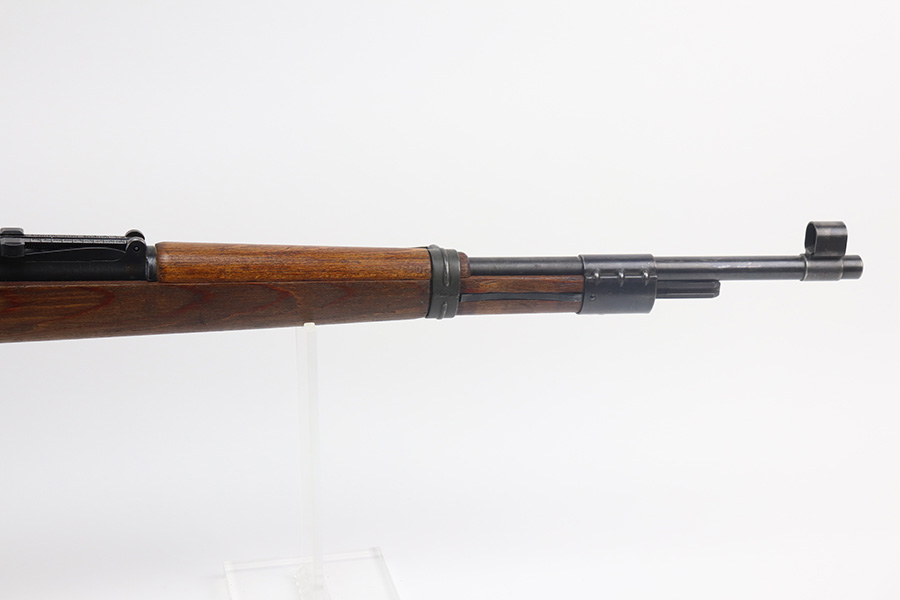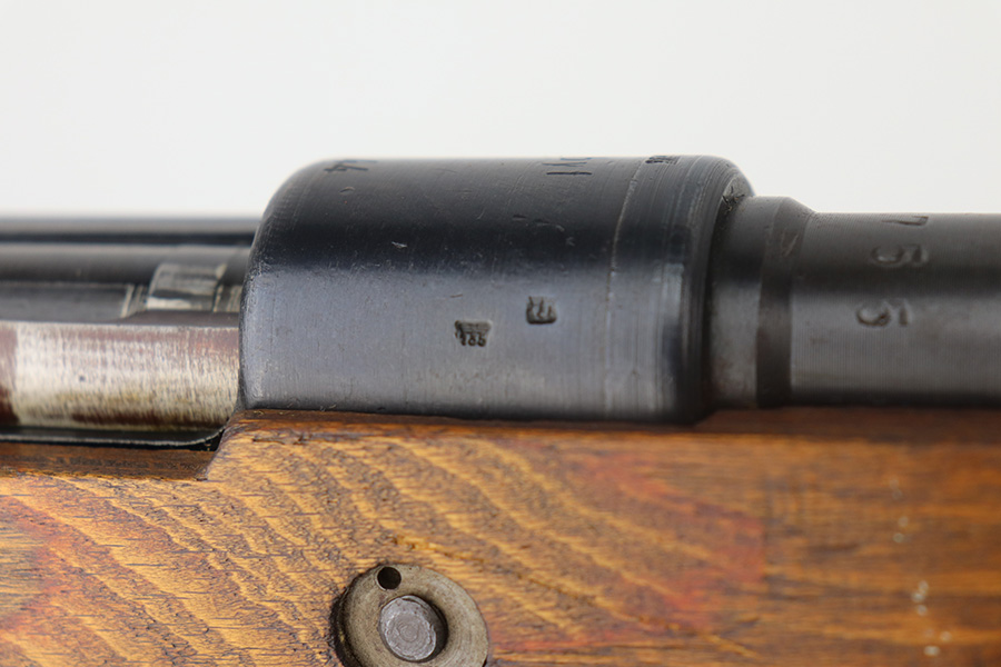 5/21/21 – This is an excellent example of a Mauser K98 issued to the Nazi military in 1944. The gun is all matching and has the proper waffen military proofs throughout. Unfortunately, the stock has been duffle-cut. Overall the gun is in excellent condition. It has retained most of its original bluing with minor scratchy wear on the barrel and floor plate. The stock is excellent and has a faint waffen proof on the right side. The stock has been lightly sanded. The gun comes with an original leather sling. Excellent bore – shiny with strong rifling.