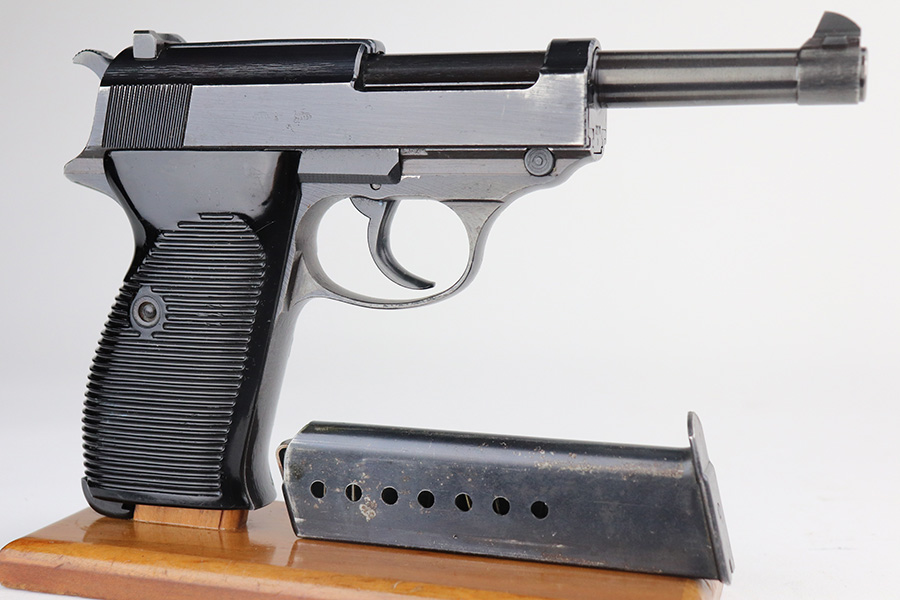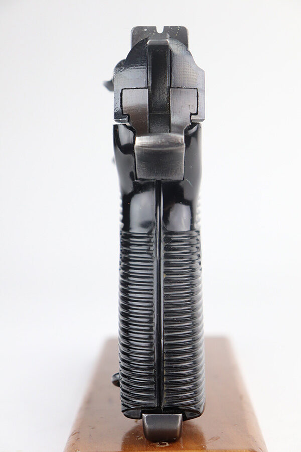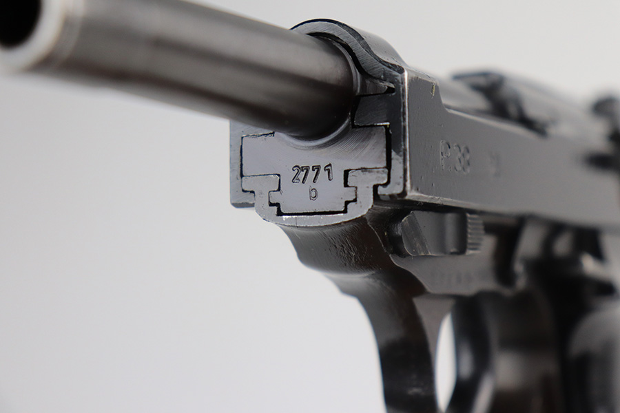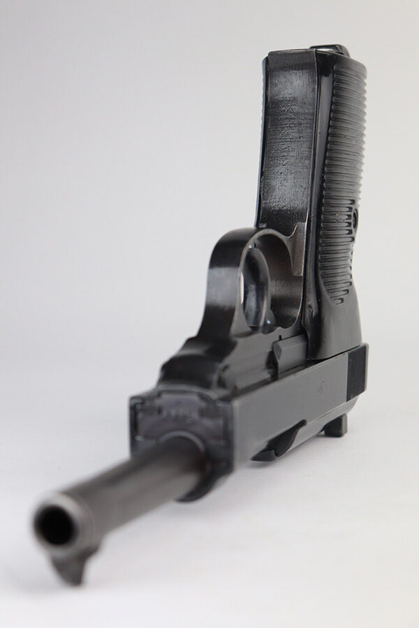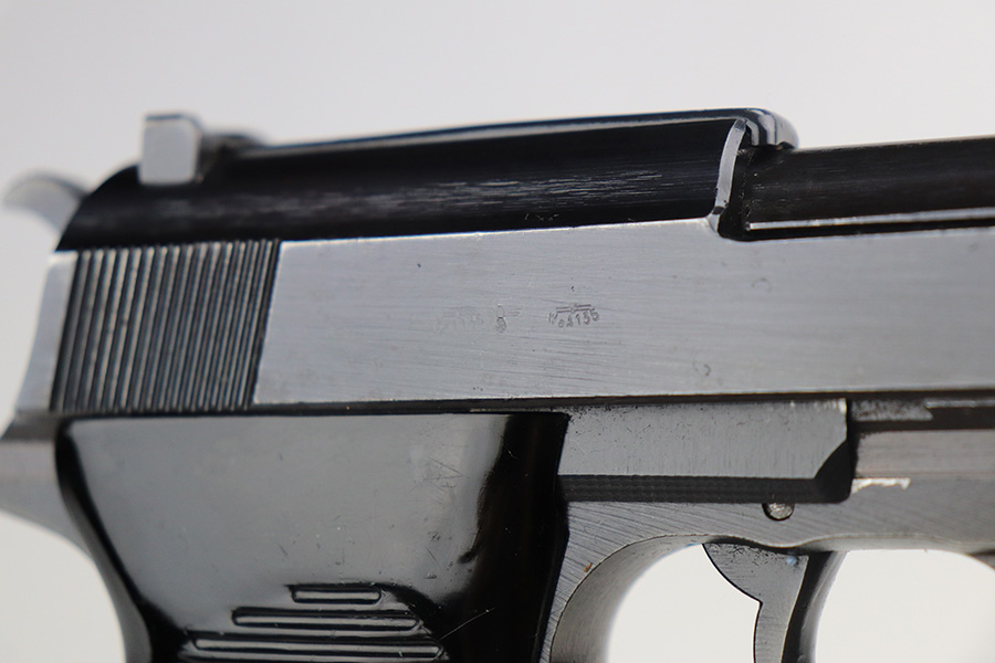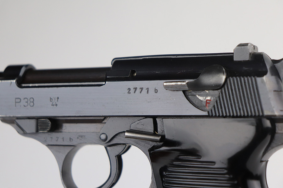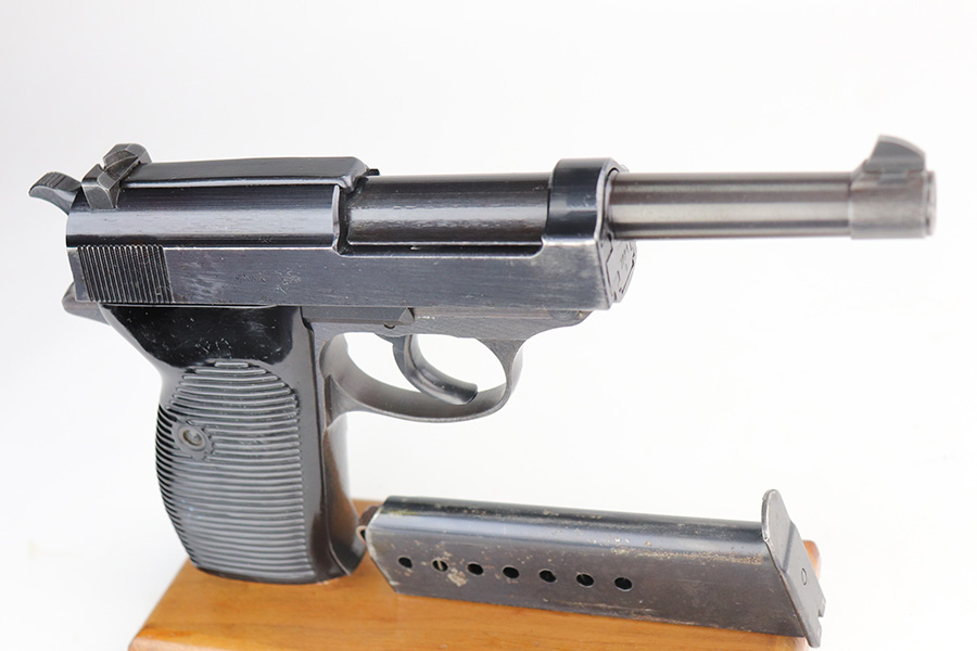 12/22/22 – This is an excellent example of a Mauser P.38 issued to the Nazi military in 1944. The gun is all matching and has the proper “Waffen 135” military proofs. It has retained about 97% of its original finish. There is minor wear on the front strap, front edges of the slide, and around the muzzle. Comes with excellent grips and a period-correct Mauser magazine. The bore is near-mint. De-cocker is functional.