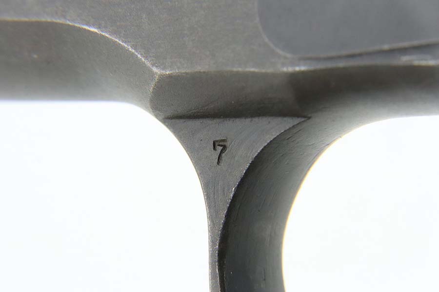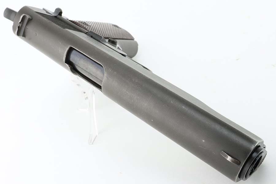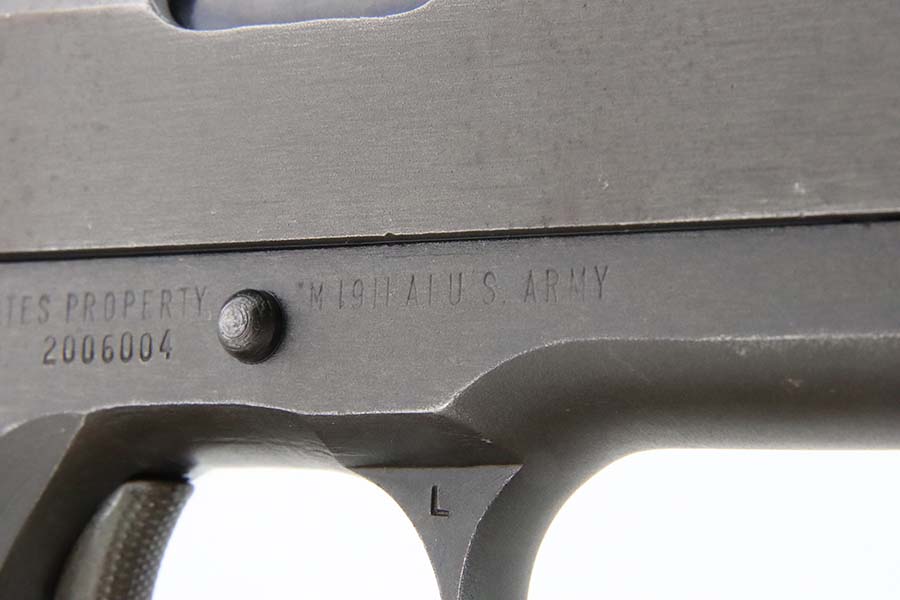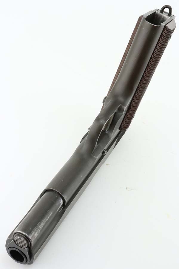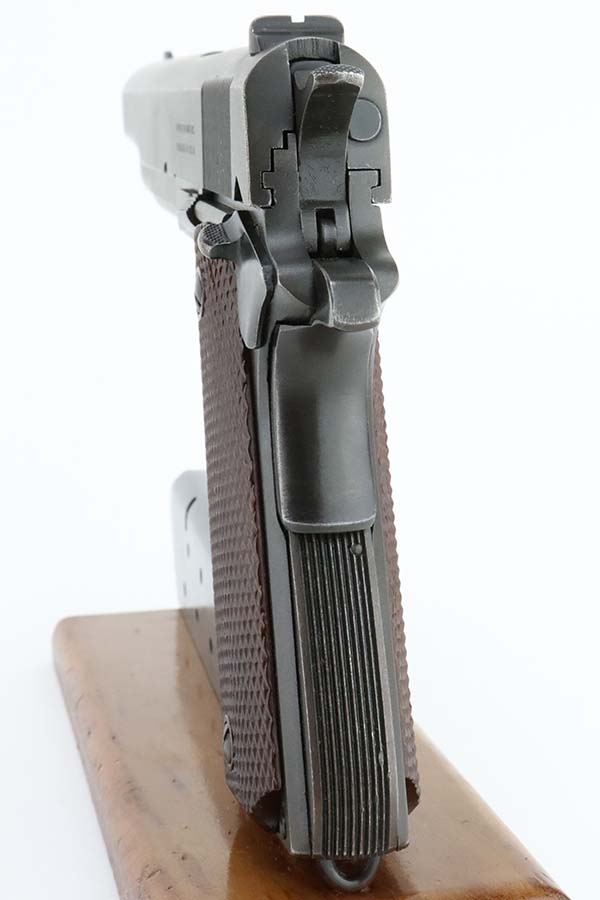 4/1/24 – This is an excellent example of a Remington Rand 1911A1 issued to the US military in 1944. It is all correct and has a proper “HS” marked High Standard barrel. It has retained about 97% of its original parkerized finish with just very minor muzzle and high edge wear. Tiny dots of brown patina here and there. Beautiful bright blue barrel. Fitted with period-correct reddish plastic grips and comes with a proper “L” marked magazine. Mint bore.