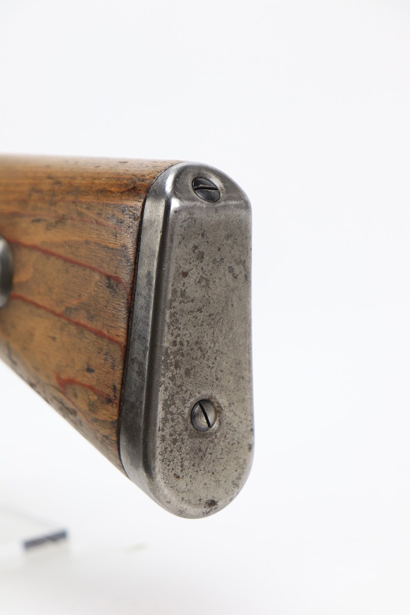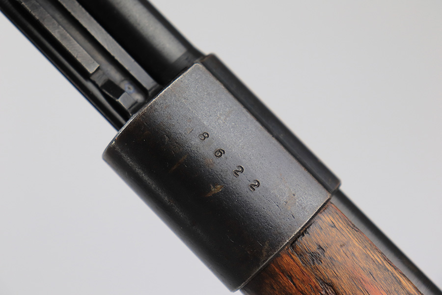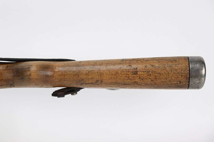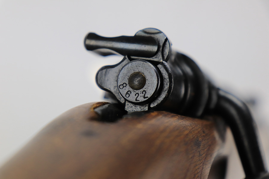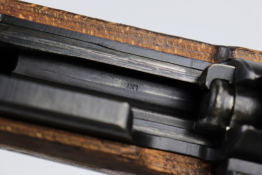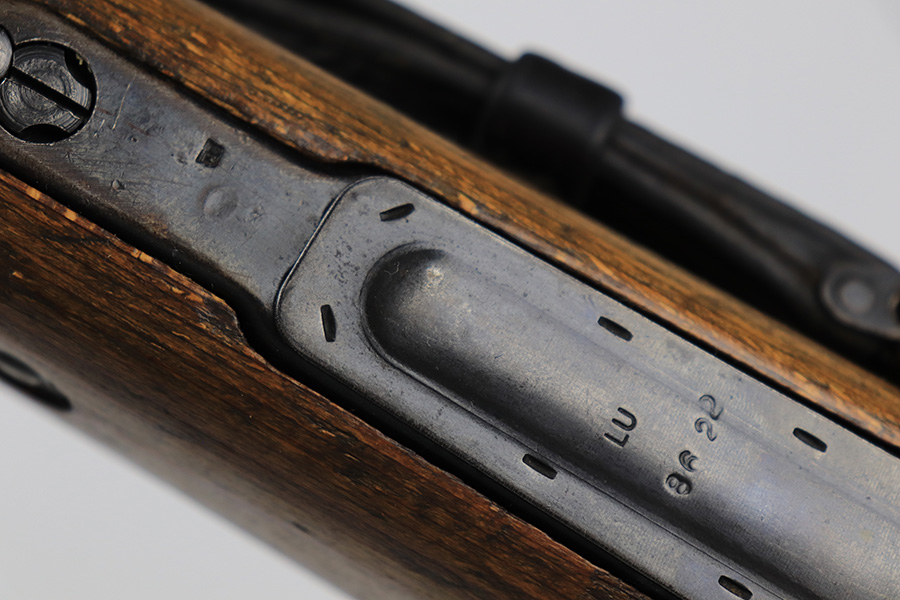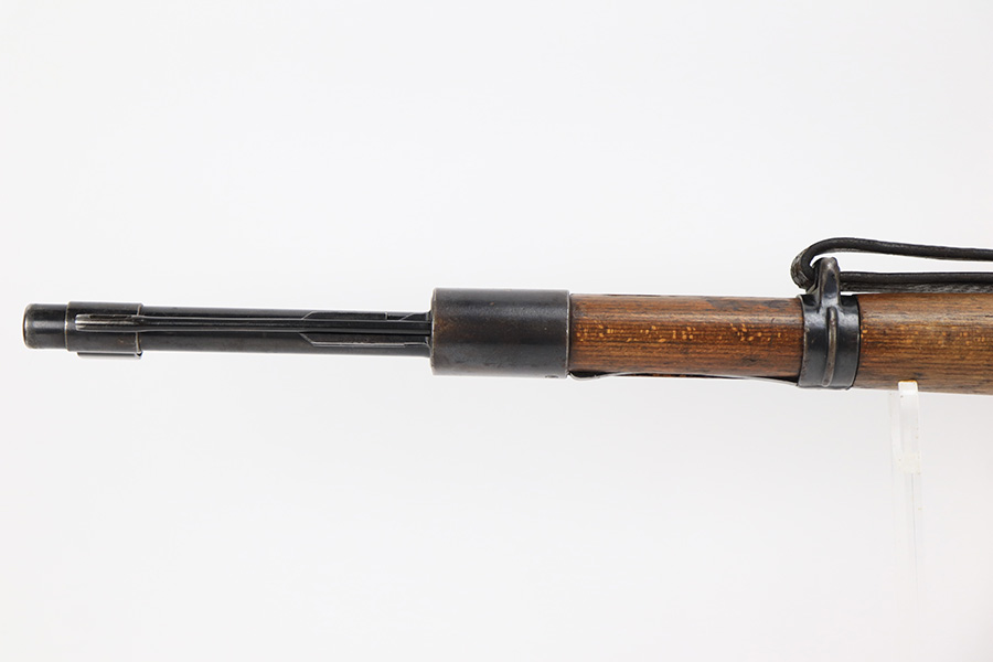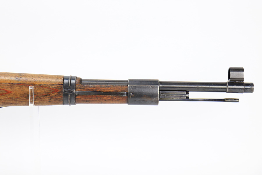 6/1/23 – This is an excellent example of a “dot 44” Waffenwerke Brunn K98 rifle issued to the Nazi military in 1944. It is all matching and has the proper waffen proofs throughout, but the bolt was renumbered to match the rest of the rifle. Comes with an original cleaning rod and leather sling. There are no visible waffen proofs on the stock, but there is a faint “dot” marking on the underside of the butt stock. The metal parts have retained about 95% of their original finish. Generally, there is minor wear around the muzzle and on the high edges in general. Some tiny spots of light oxidation and patina here and there. Light spotty oxidation on the butt plate. No major damage to the wood furniture, but they do show the typical signs of use and wear. Minty bore.