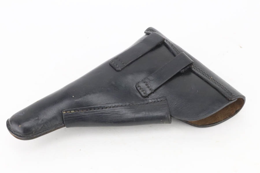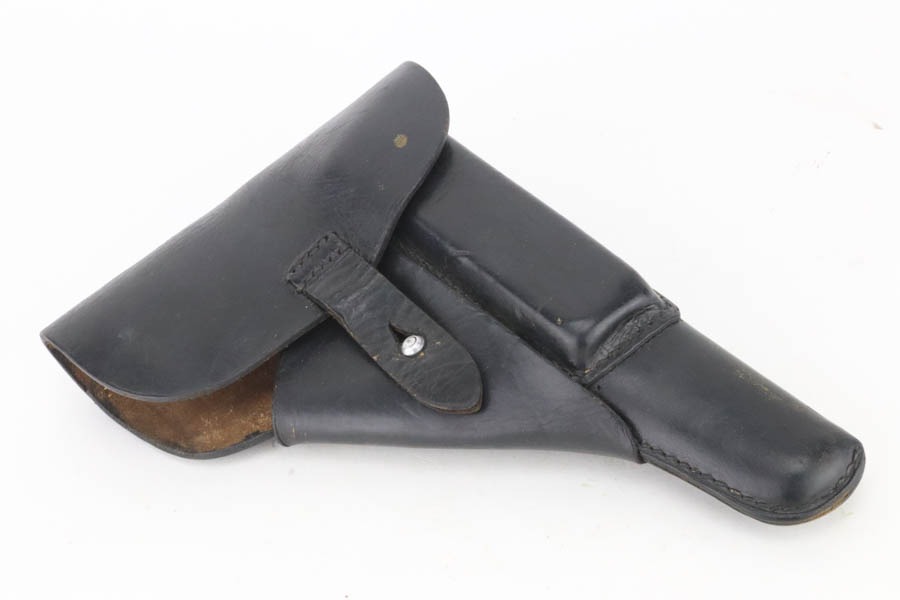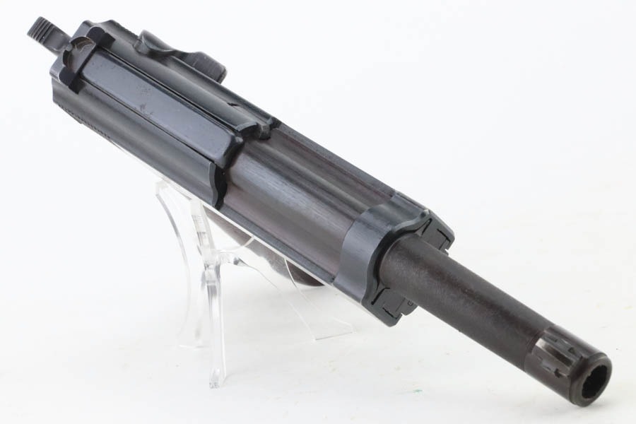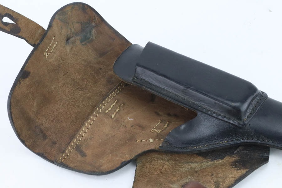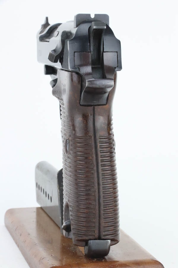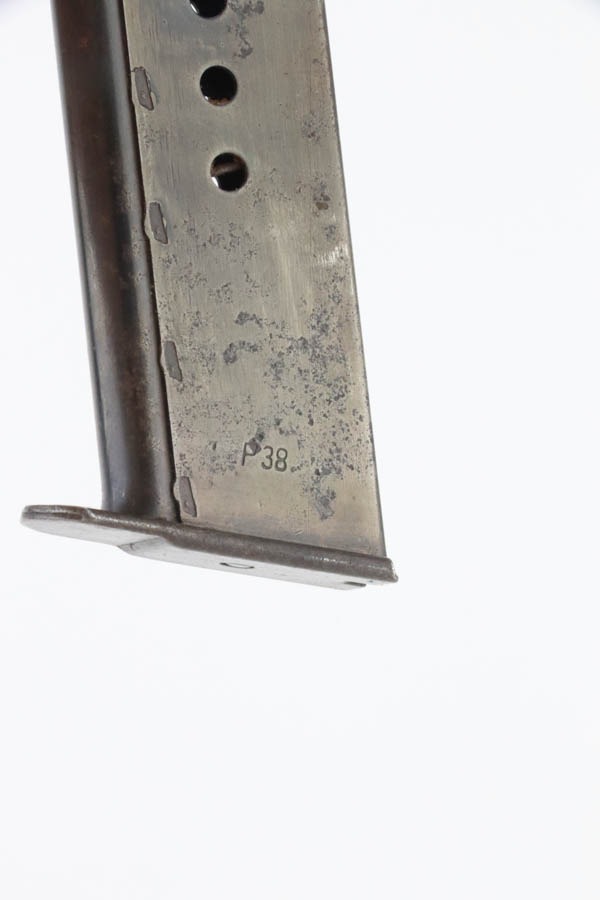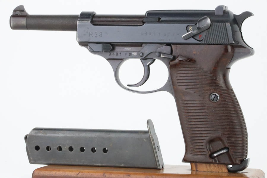11/25/24 – This is an excellent example of an AC 44 Walther P.38 issued to the Nazi military in 1944. All matching with the proper “Eagle 359” military acceptance proofs. It has retained about 96-97% of its original finish with just very minor wear around the muzzle and on the front edges of the slide. Fitted with period-correct reddish bakelite grips. Excellent bore with great rifling. De-cocker is functional. Comes as a rig with a very nice black leather holster and one “Waffen 706” jvd marked magazine.