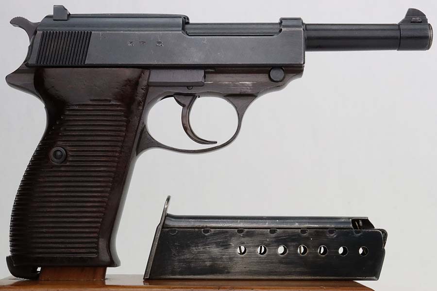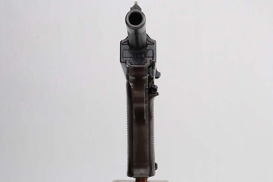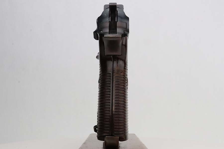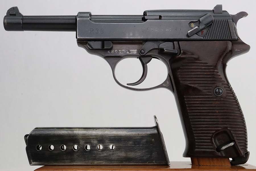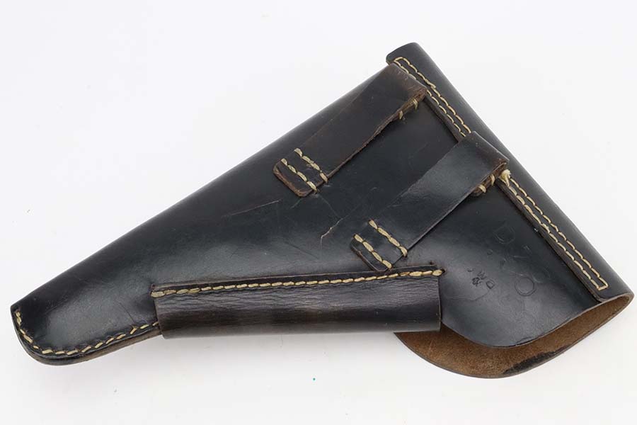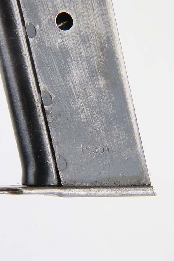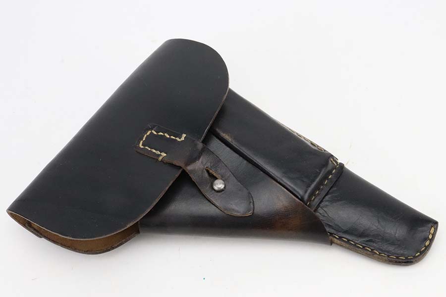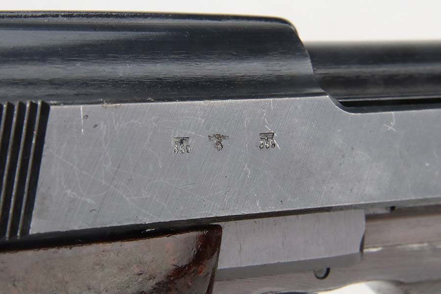 3/4/24 – This is an excellent example of an AC 44 Walther P.38 issued to the Nazi military in 1944. All matching with the proper “Eagle 359” military acceptance proofs. It comes as a rig with an un-issued 1944-dated holster and an “Eagle 359” marked Walther magazine. The gun itself has retained about 96% of its original finish with general minor high edge wear and very light thinning on the front strap. Fitted with period-correct reddish bakelite grips. The bore has good rifling, but there are a few small spots of pitting. De-cocker is not functional.