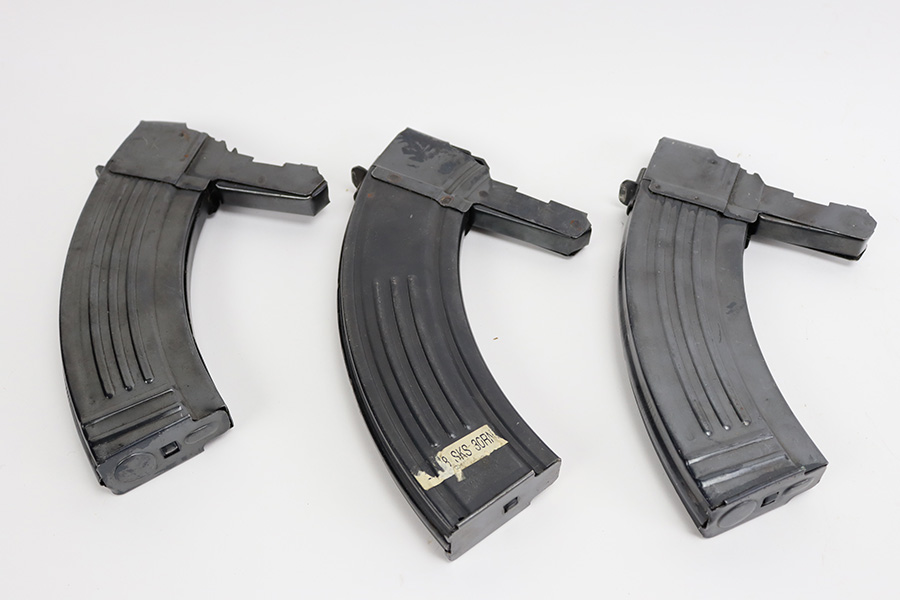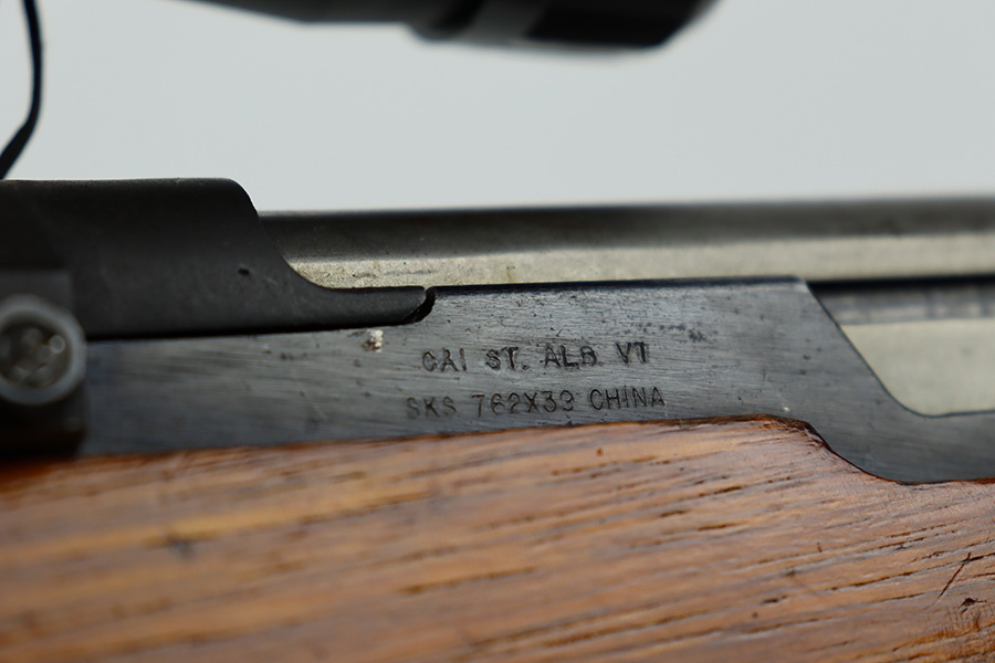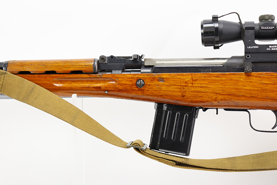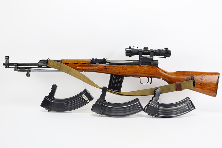 8/4/23 – This is an excellent example of a Chinese Norinco SKS Type 56 rifle, manufactured in 1978 and chambered in 7.62x39mm. Removable magazine. It is all matching with an import mark on the right side of the receiver. This one comes equipped with a Simmons 4x28mm scope (excellent optics) and a tan canvas sling. It has retained nearly all of its original finish with just some very light surface scratches and scuffs here and there – most noticeable on the bolt. Excellent wood furniture with just light scratches throughout. The bore is like-new. It comes with one 10-rd magazine and three 25-rd magazines.