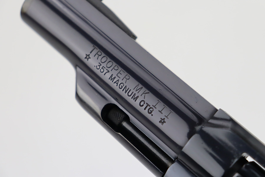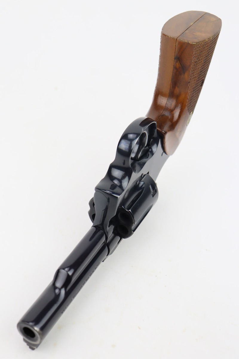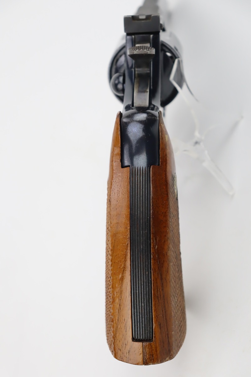 10/18/23 – This is an excellent example of a Colt Trooper Mk III manufactured in 1978 and chambered in .357 Magnum. It is matching and has retained about 97% of its original high polish finish. There is minor muzzle wear and minor wear on the high edges of the cylinder. Fitted with excellent checkered Walnut grips. Mint bore. Very smooth action.