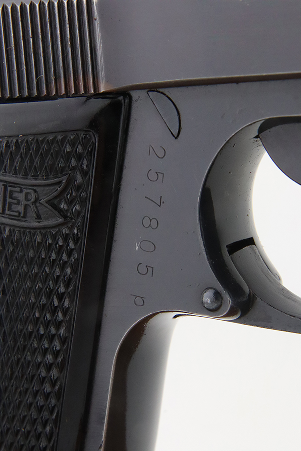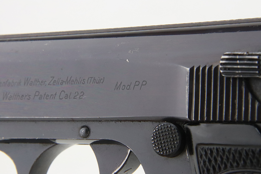 1/29/24 – This is an excellent .22 Caliber Walther PP sold in the commercial market in 1940. All matching and “Eagle N” proofed. It has retained about 97% of its original high polish bluing. Minor wear around the muzzle and on some of the high edges. Some tiny scratches here and there. Fitted with excellent period-correct black bakelite grips and comes with a proper .22 caliber magazine. Mint bore.