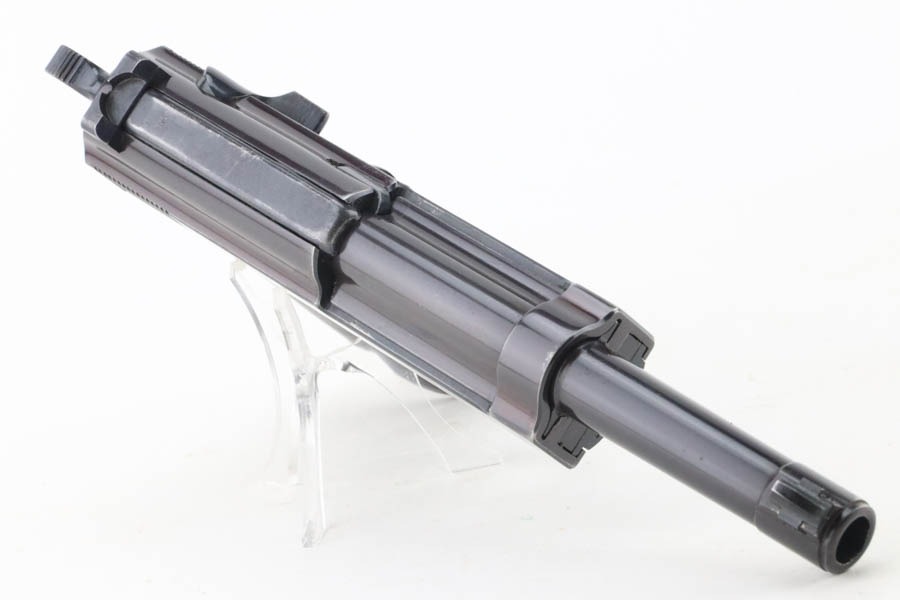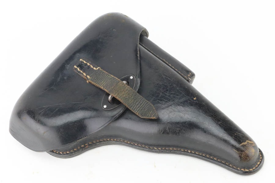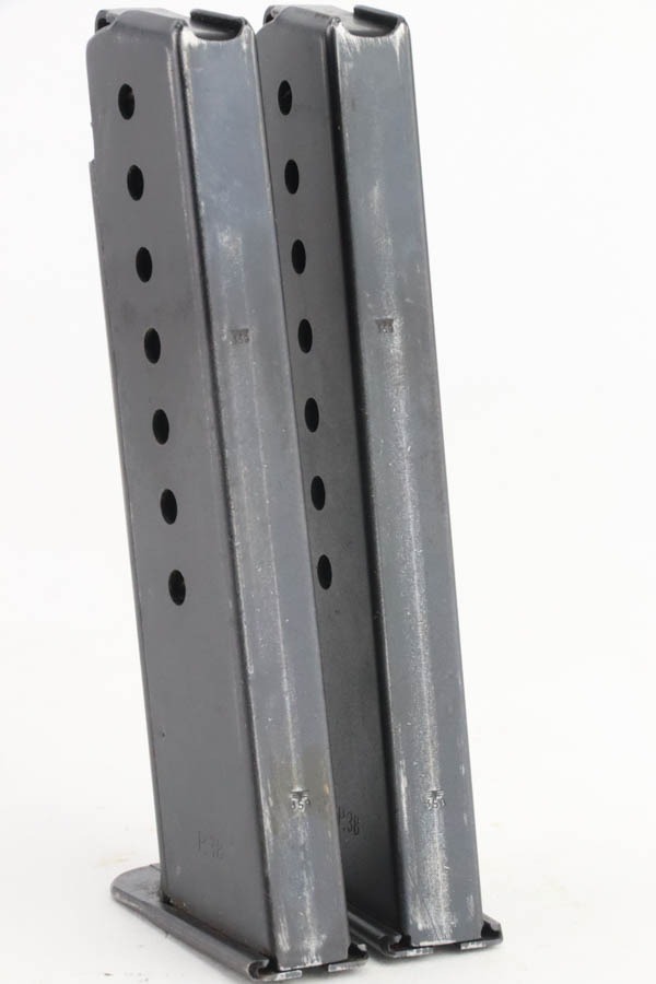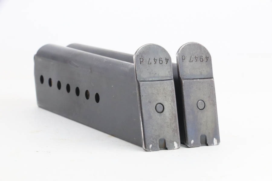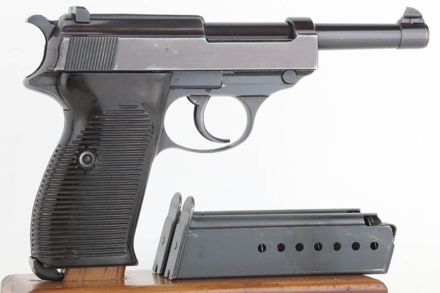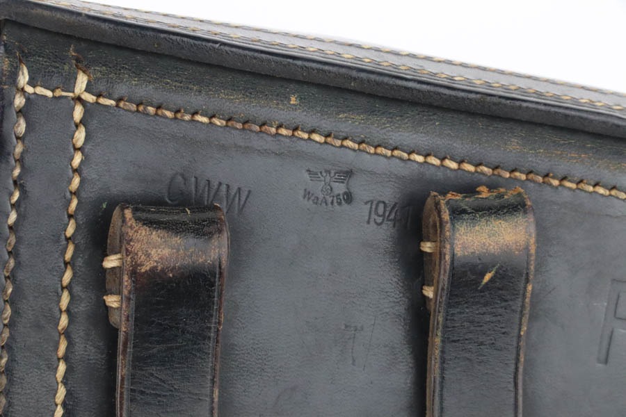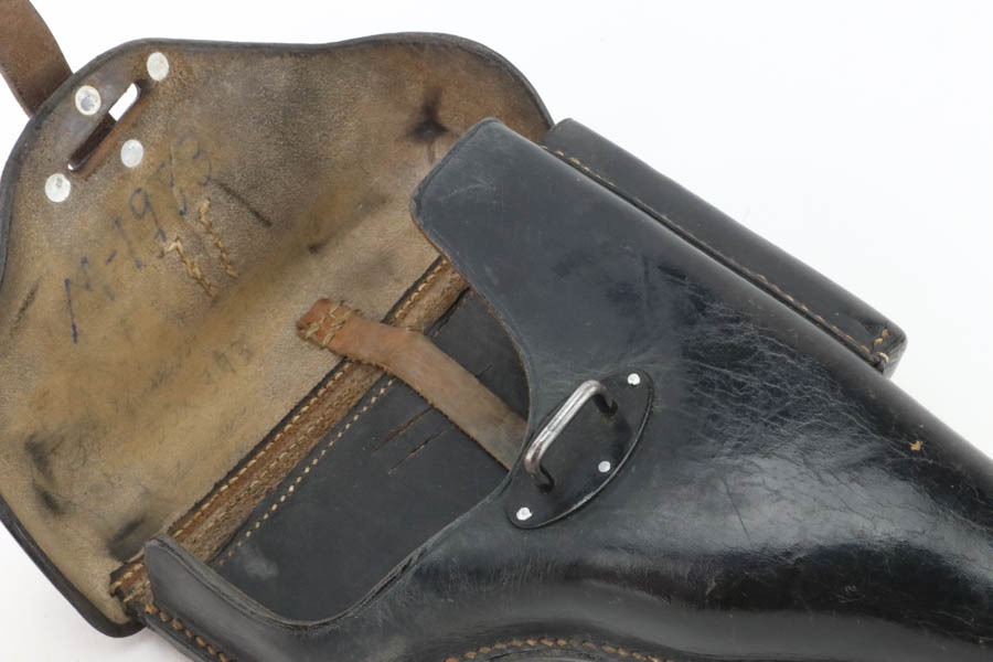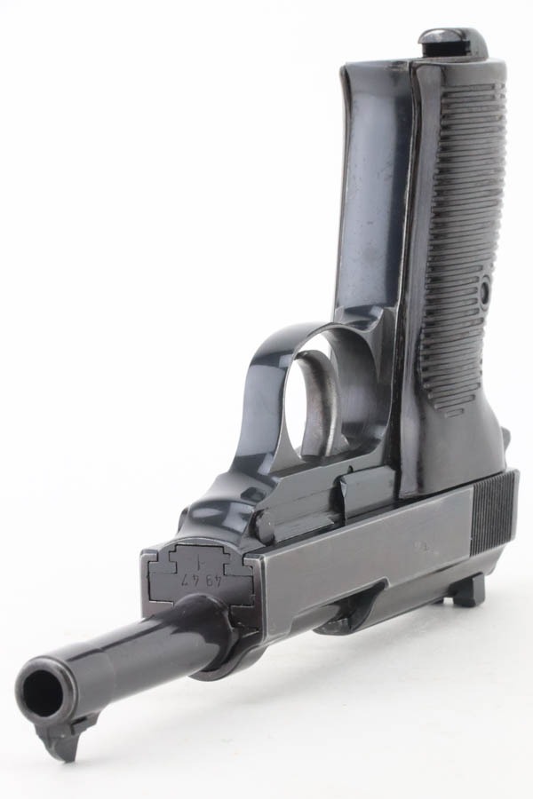 10/4/24 – This is an excellent example of an AC 41 Walther P.38 issued to the Nazi military in 1941. All matching with the proper “Eagle 359” military acceptance proofs throughout, even on the small parts. It comes as a complete rig with a beautiful, near-mint 1941-dated hard shell holster and two original matching-numbered magazines. The gun itself has retained about 95% of its original high polish finish. There is minor wear around the muzzle, on the high edges of the slide, a few very light surface scratches on the right side of the slide, and some very light freckling on the front strap. The finish on the slide has a really nice slight plum color to it. Fitted with excellent “Eagle 359” proofed Walther grips. The bore is mostly shiny with great rifling, but there is some light freckling here and there. De-cocker is functional.
