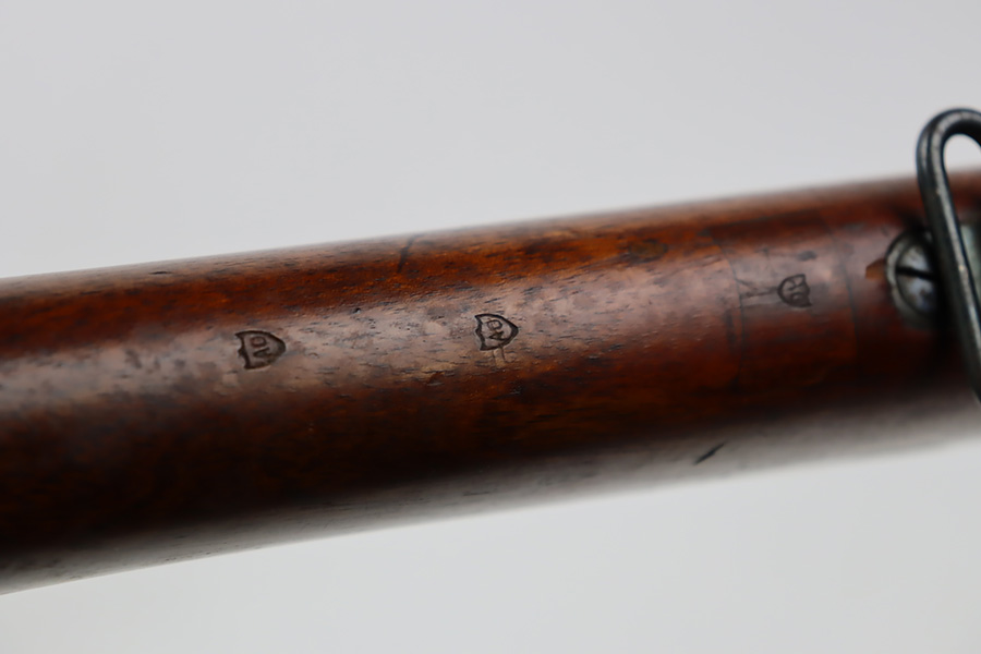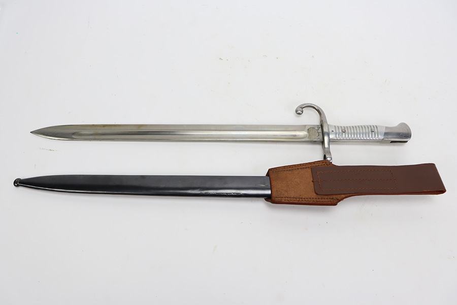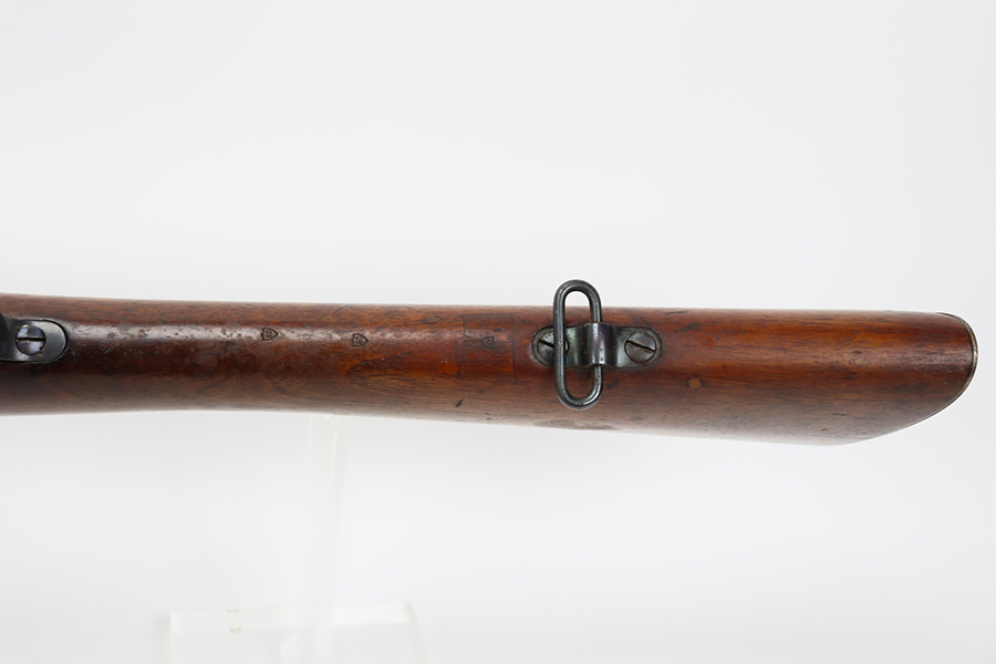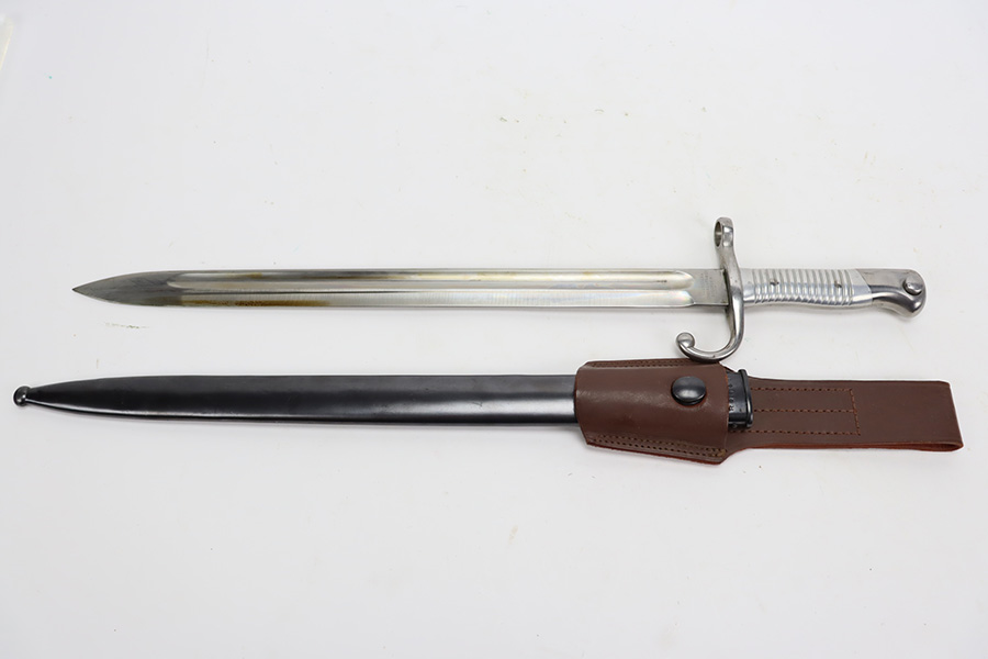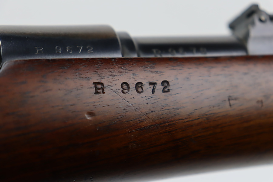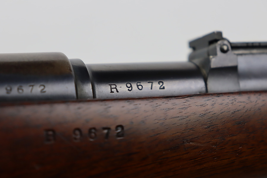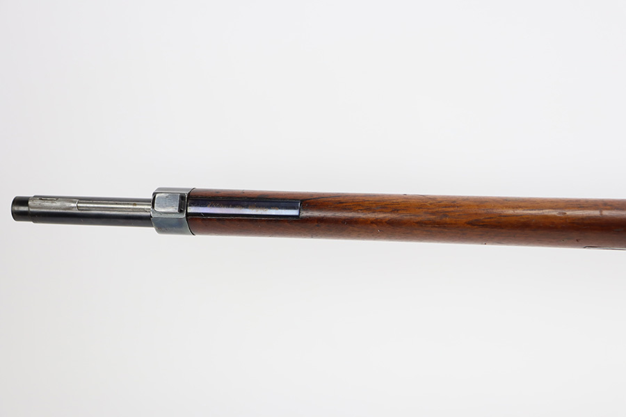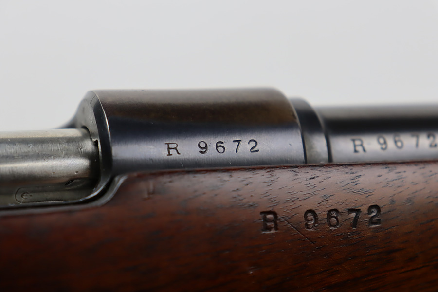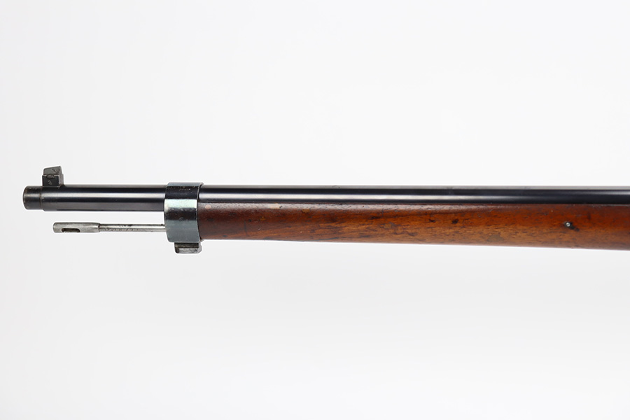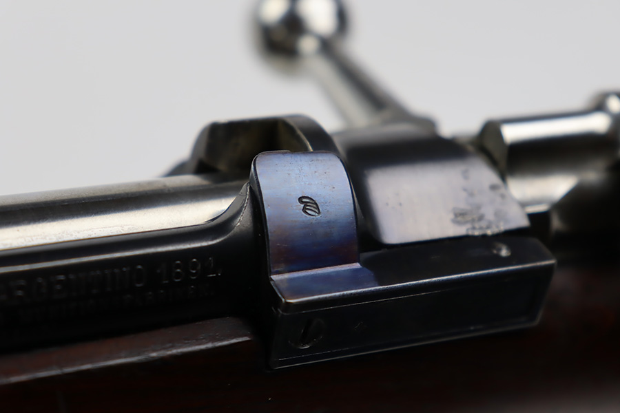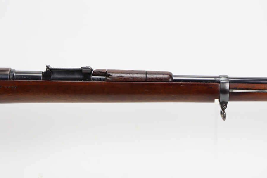 10/03/23 – Up for sale is an excellent condition Argentine Mauser model 1891 with exceptional bluing. The rifle is chambered in 5 rounds of 7.65×53 Mauser. The metal retains about 95% of its original bluing from the barrel to the receiver. There is some slight edge wear on some parts and a bare spot for where the Argentine Crest used to be but was ground away upon export. There are also some dings to the rear of the receiver by the bolt release. The bolt release has a nice fire blue. The rifle has matching serial numbers on the receiver, barrel, bolt, magazine, and cleaning rod which is rare. The stock is in great shape with the only blemish being a grind mark for when the cartouche was erased. The upper handguard still retains its copper wires but there is a portion of the handguard broken on the back right side. The bore is excellent with sharp rifling and is very bright. The rifle comes with an 1891 bayonet that has a serial number that doesn’t match the rifle but matches the scabbard and has its crest ground away. Also includes a reproduction frog for the scabbard.