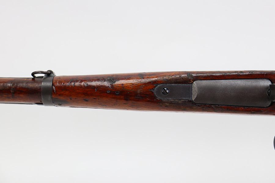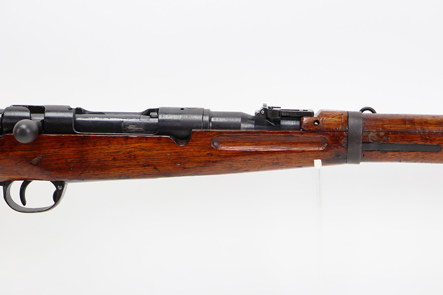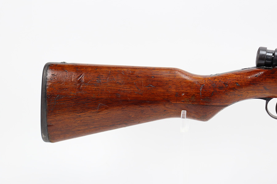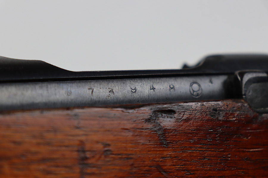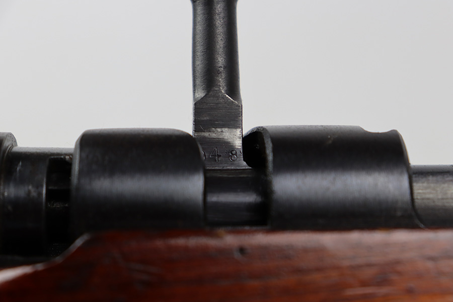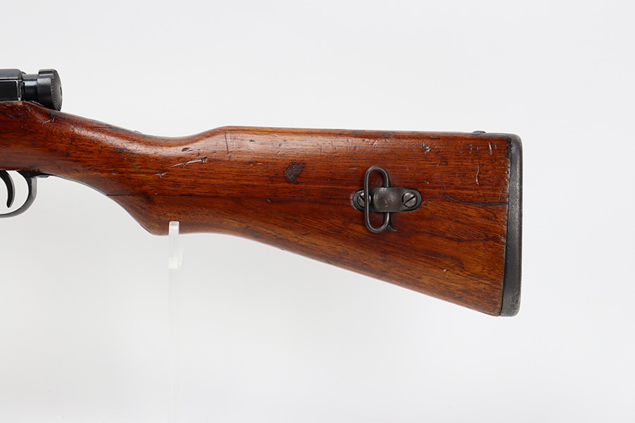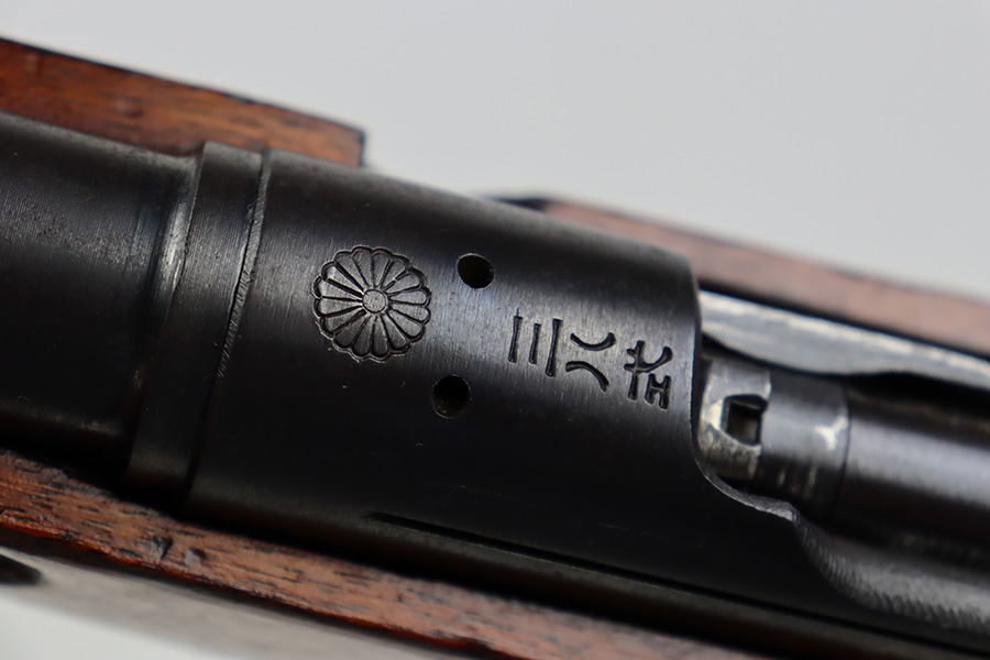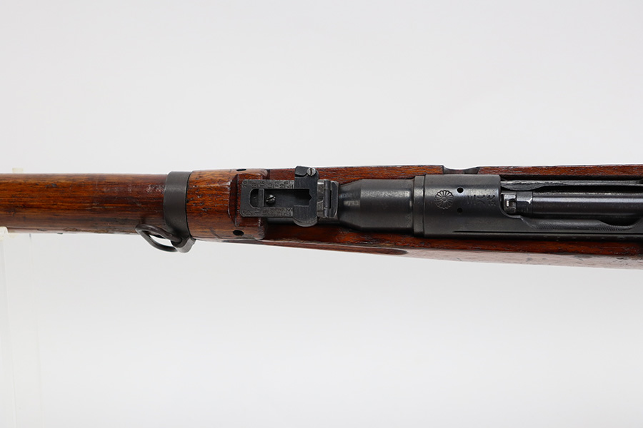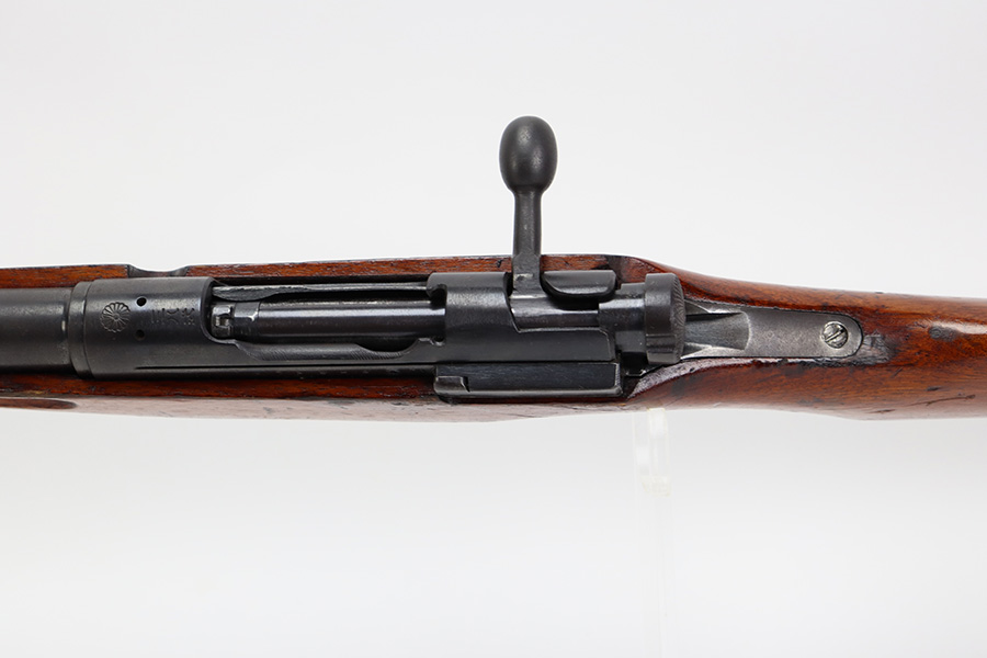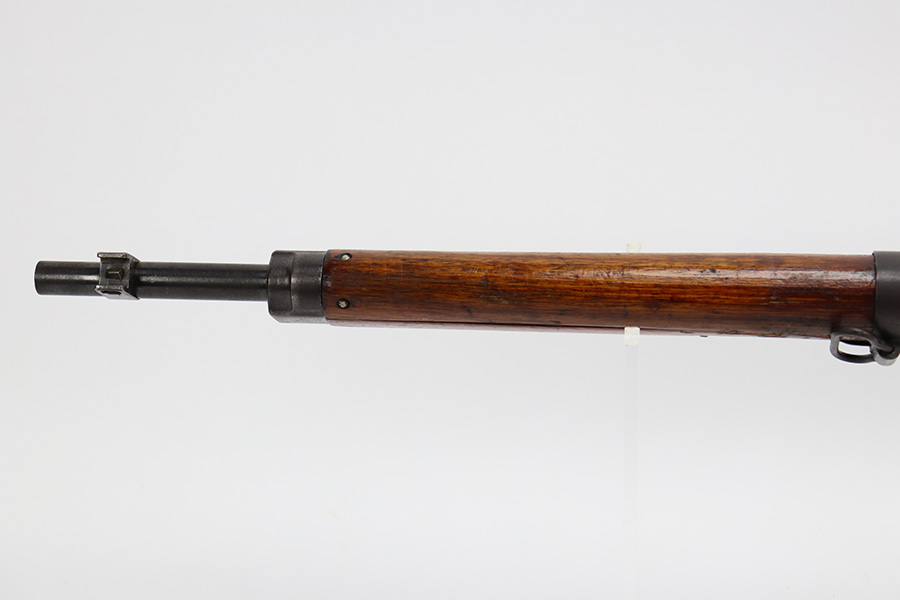 8/4/23 – This is an excellent example of an Arisaka Type 38 Carbine issued to the Japanese military during WW2. The gun is completely matching and has a fully intact Imperial mum stamp on the receiver. The metal parts are minty, retaining nearly all of their original bluing. No major damage to the wood furniture, just the typical signs of use/wear. The bore has good rifling, but there is pin-pricking throughout.