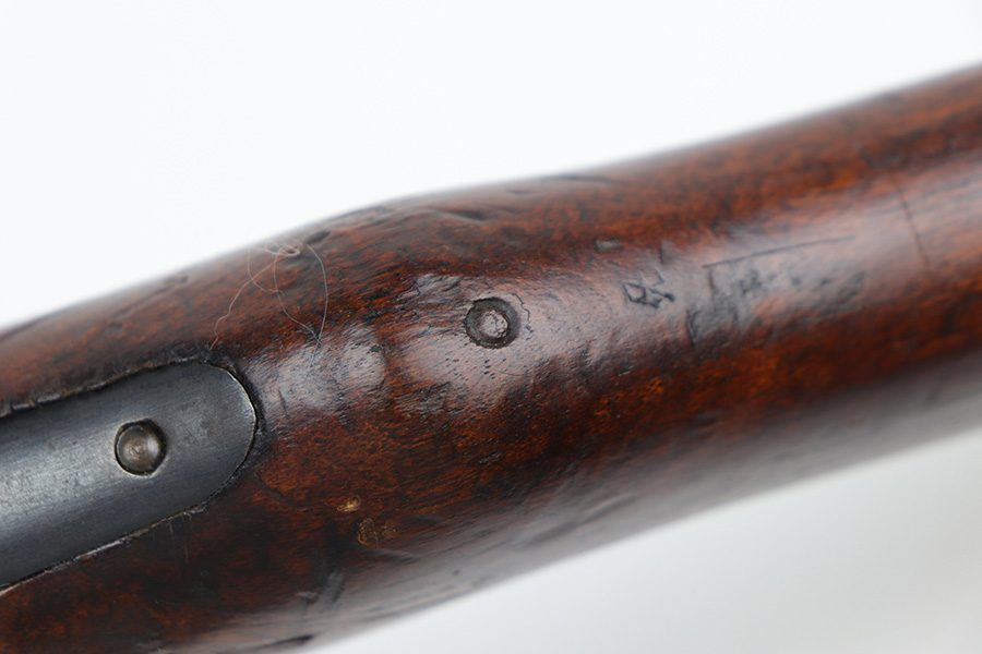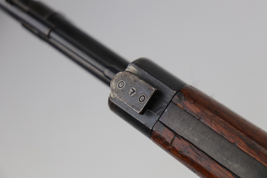 10/14/21 – This is an excellent Arisaka Type 38 rifle with full mum intact. The rifle has original bluing throughout that shows some wear on the trigger group and the barrel/bayo lug. It has matching numbers throughout except for the cocking knob. The dust cover is only one digit off, as well. It’s marked ‘170’ whereas the rifle is ‘070’ – this may be a coincidence or a factory error. Excellent, shiny bore. Stock has standard dings throughout but no major issues.
