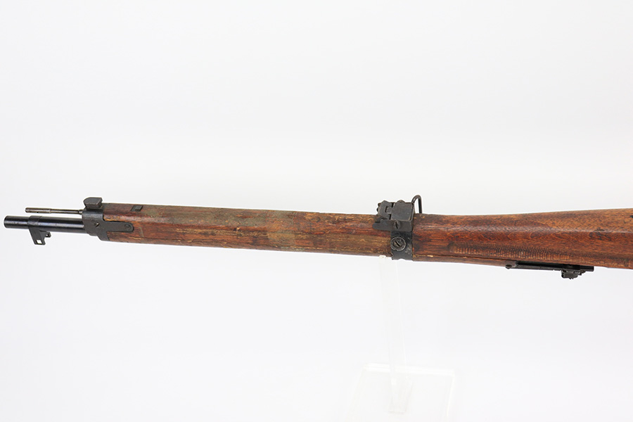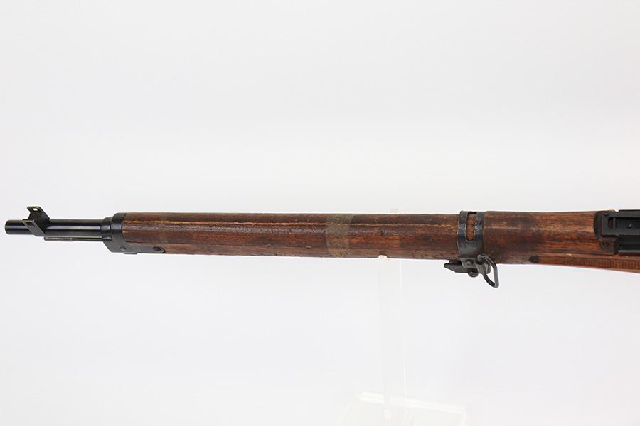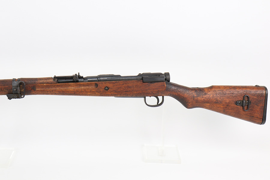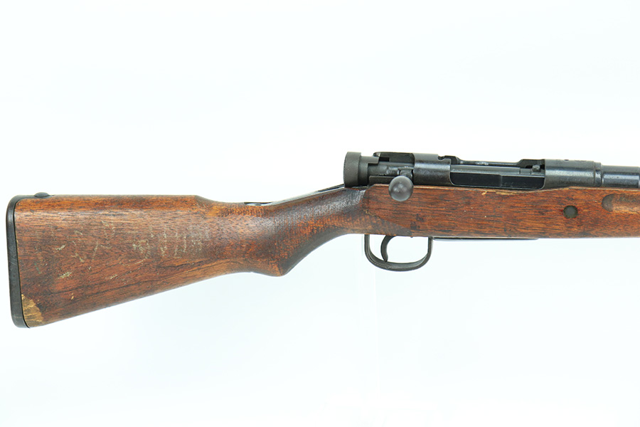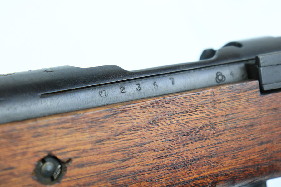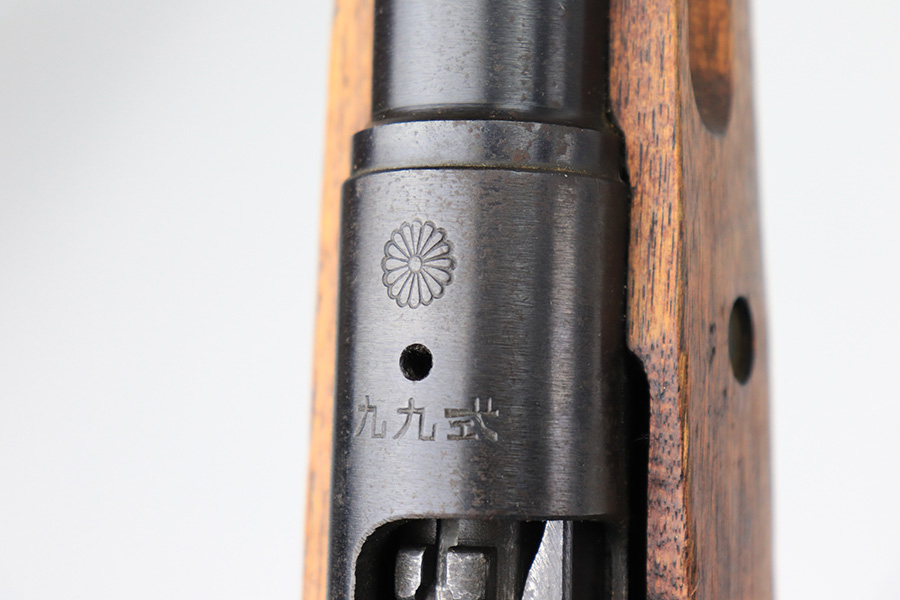 5/11/22 – This is an excellent example of an Arisaka Type 99 rifle issued to the Japanese military during WW2. It is all matching and has a fully intact Imperial mum stamp on the receiver. It has the original base to its monopod on the rear barrel band, but the monopod itself has broken off. Overall, the gun is in excellent condition with very little finish loss. There is just an area of very light freckling on the receiver and some dings in the metal on the rear barrel band. The stock has its typical rough appearance, most noticeable on the front half of the stock. It looks like there may be a hairline crack in the upper handguard. Mint bore.