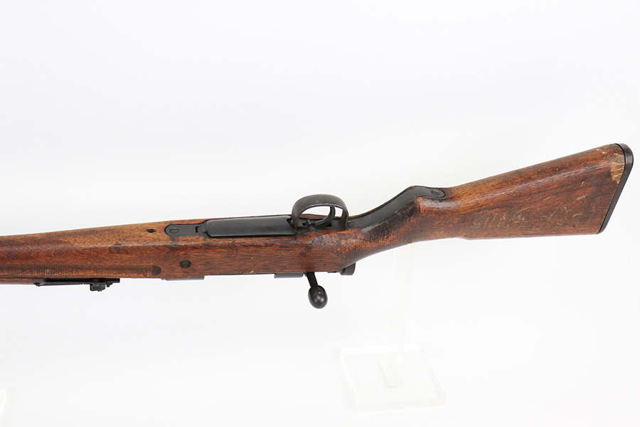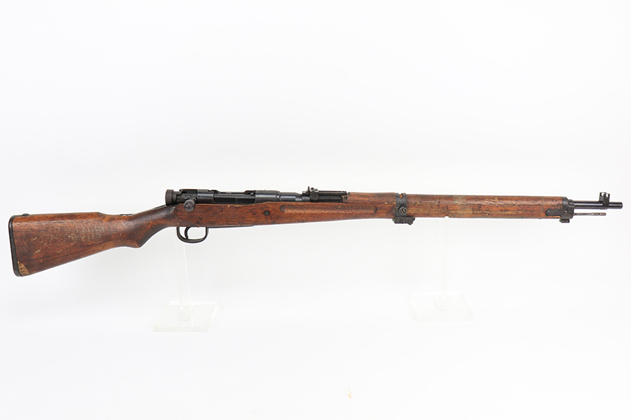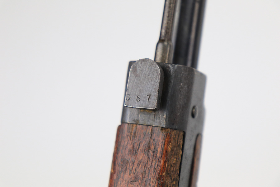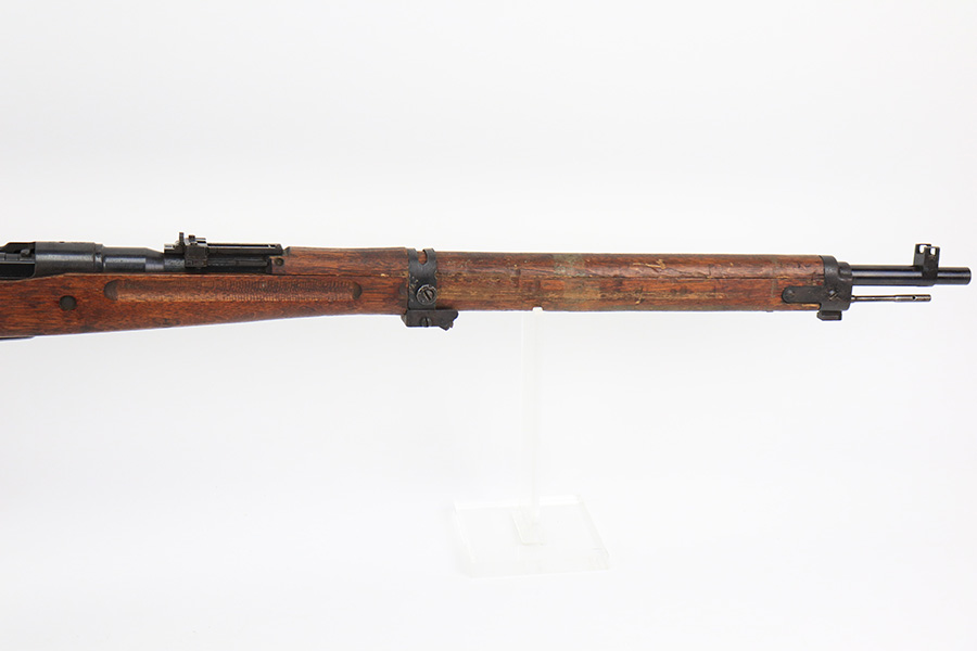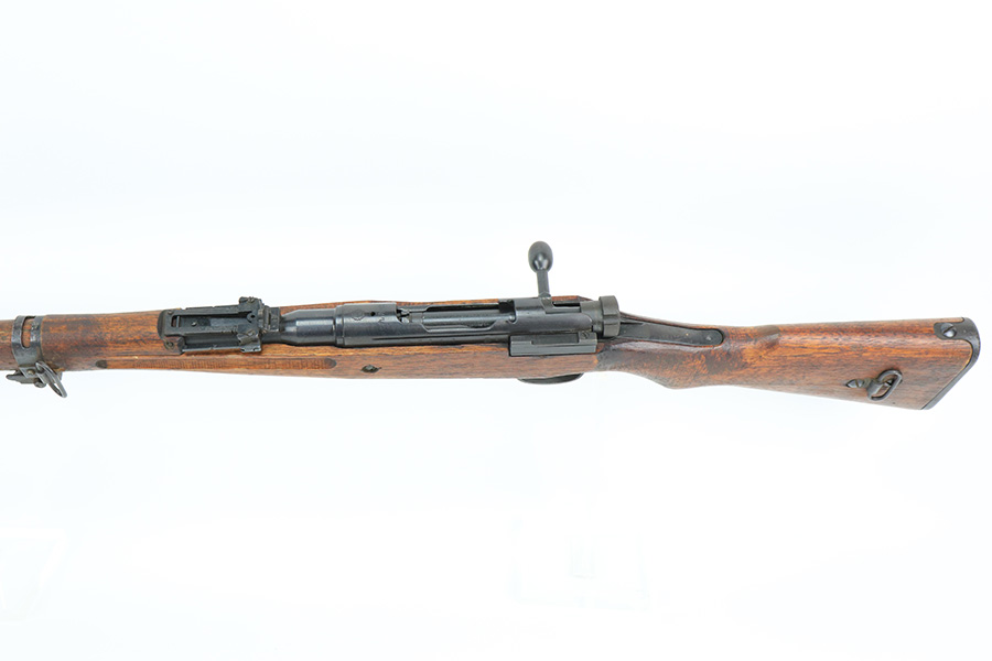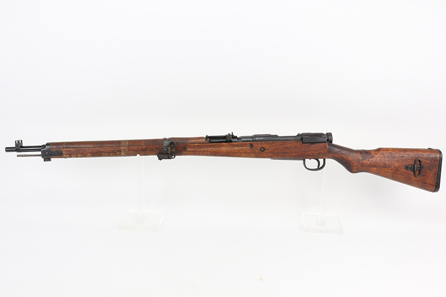 5/11/22 – This is an excellent example of an Arisaka Type 99 rifle issued to the Japanese military during WW2. It is all matching and has a fully intact Imperial mum stamp on the receiver. It has the original base to its monopod on the rear barrel band, but the monopod itself has broken off. Overall, the gun is in excellent condition with very little finish loss. There is just an area of very light freckling on the receiver and some dings in the metal on the rear barrel band. The stock has its typical rough appearance, most noticeable on the front half of the stock. It looks like there may be a hairline crack in the upper handguard. Mint bore.
