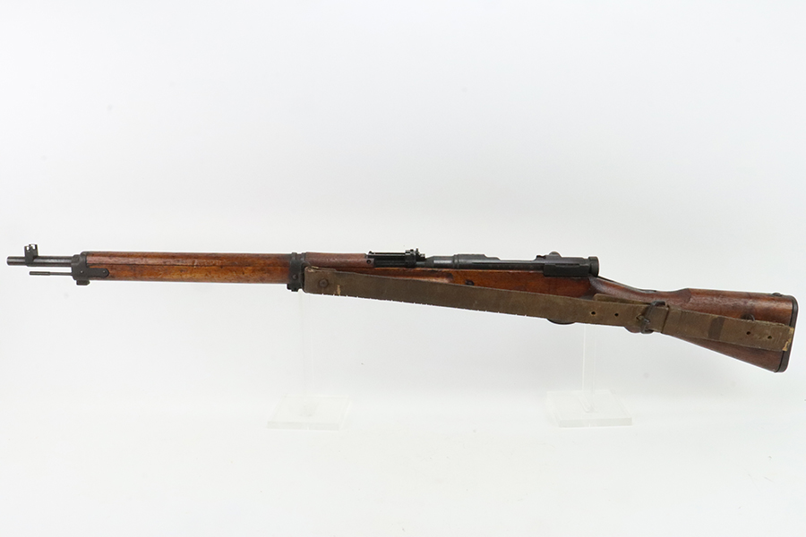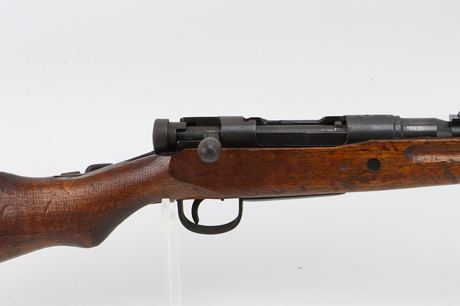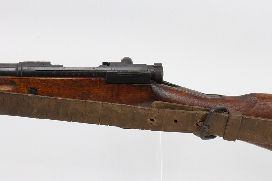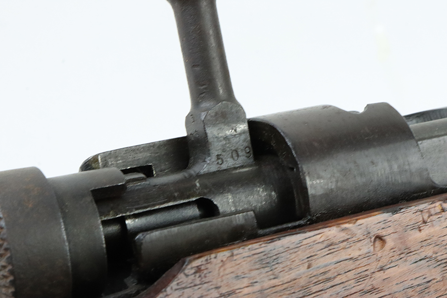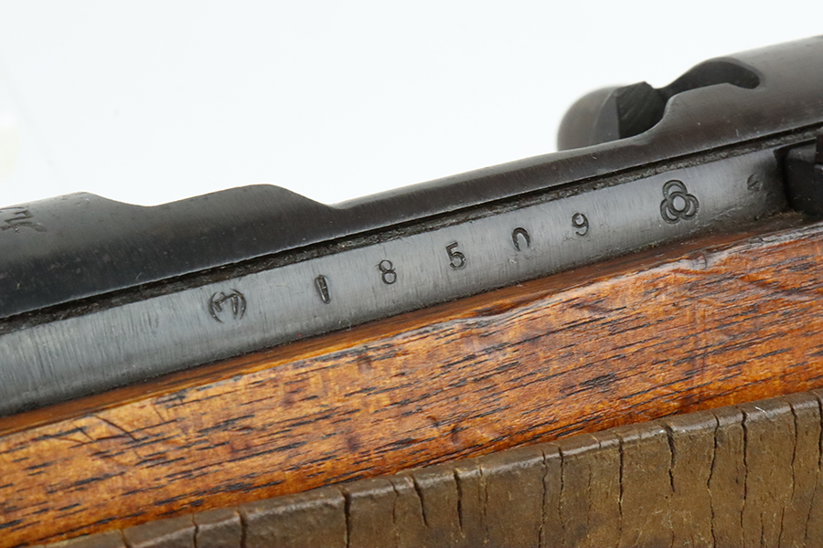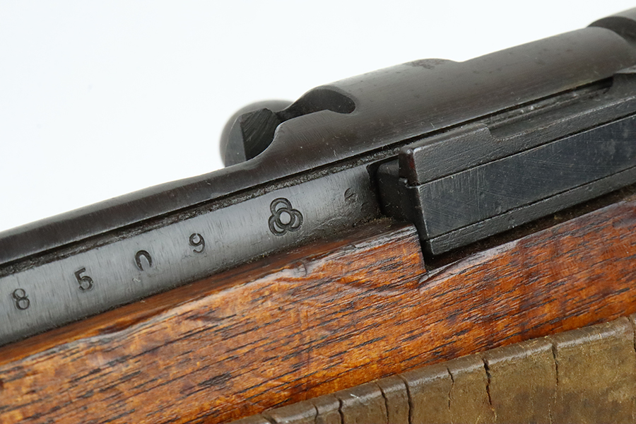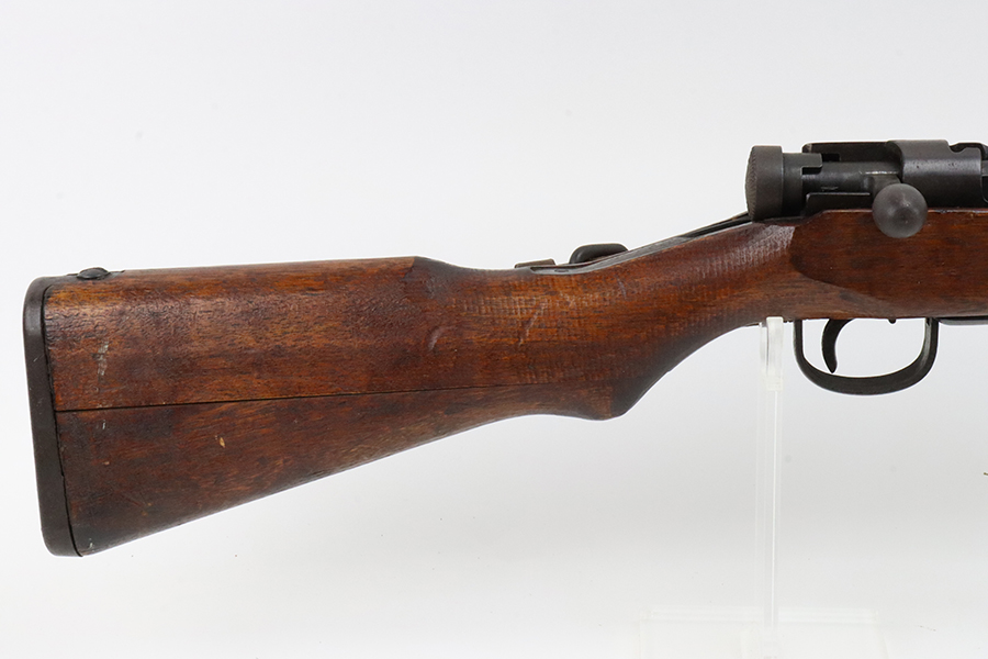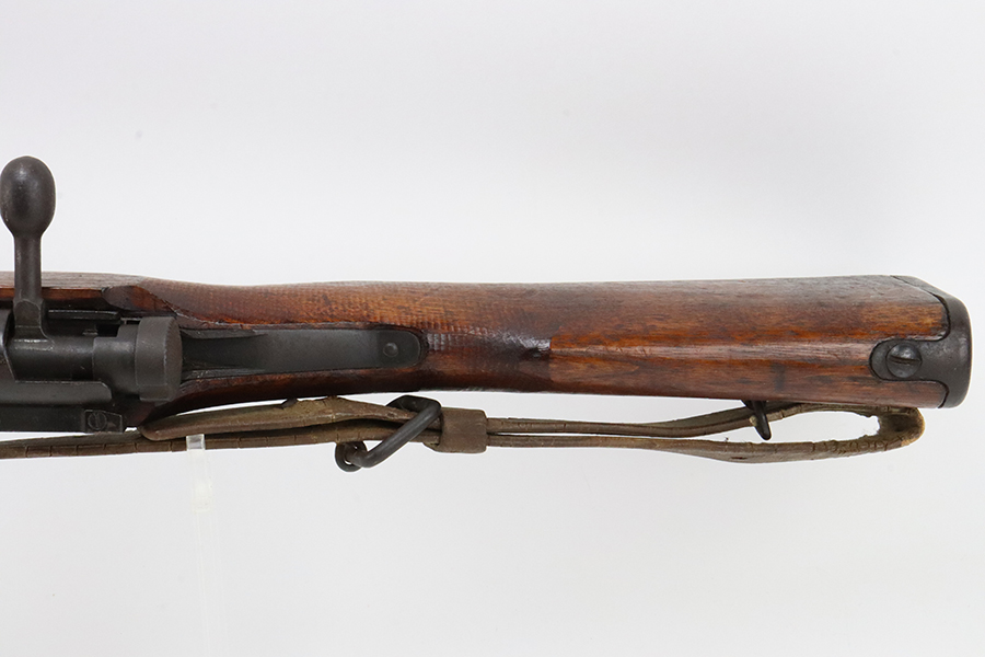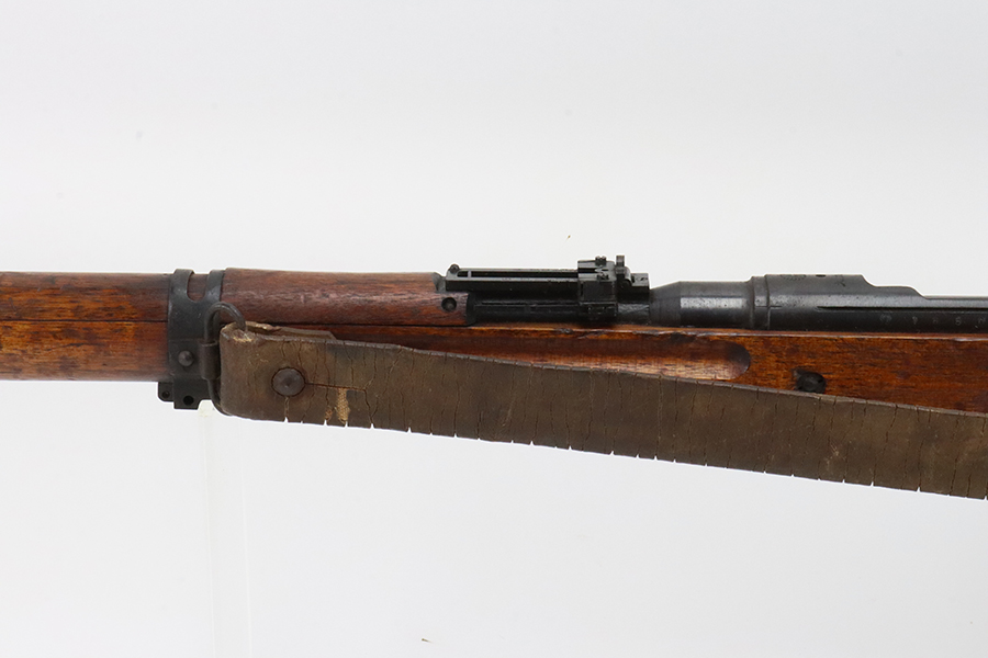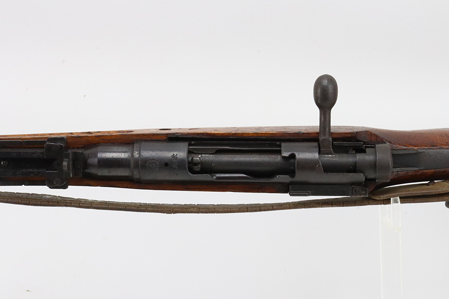 3/1/24 – This is an excellent Arisaka Type 99 rifle from World War II. All matching and original with full mum intact. 24th series rifle, made at the Kokura factory. Excellent bluing with no major finish loss but minor oxidation in several areas. Excellent, shiny bore. Includes an original leather sling, cleaning rod and aircraft sights. The wood shows standard age and wear but no notable defects.