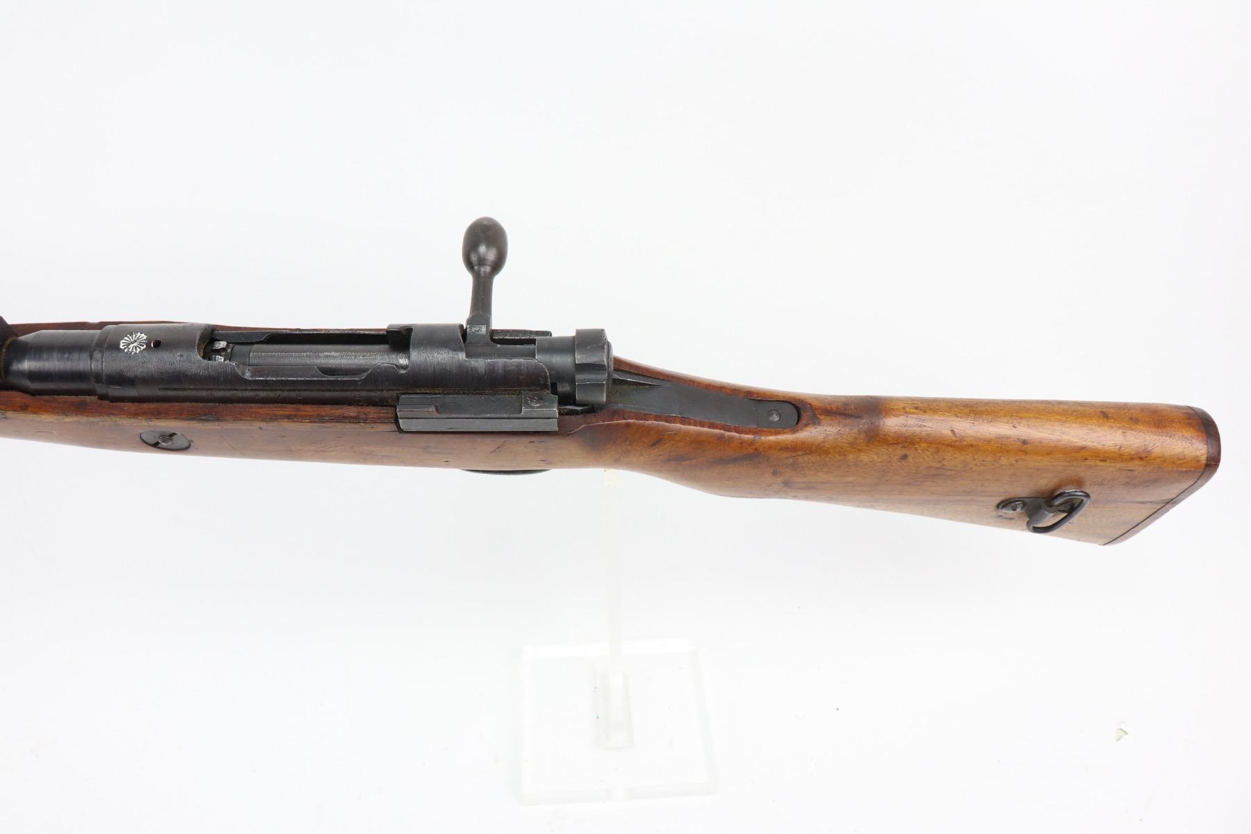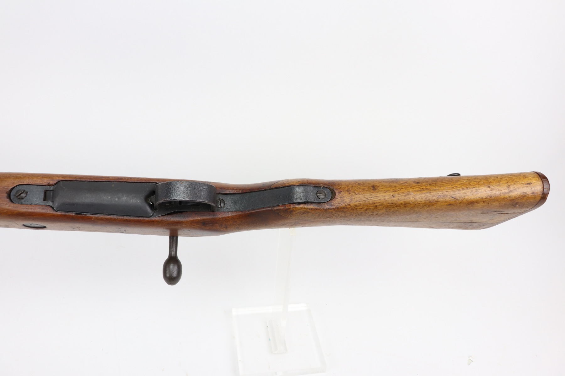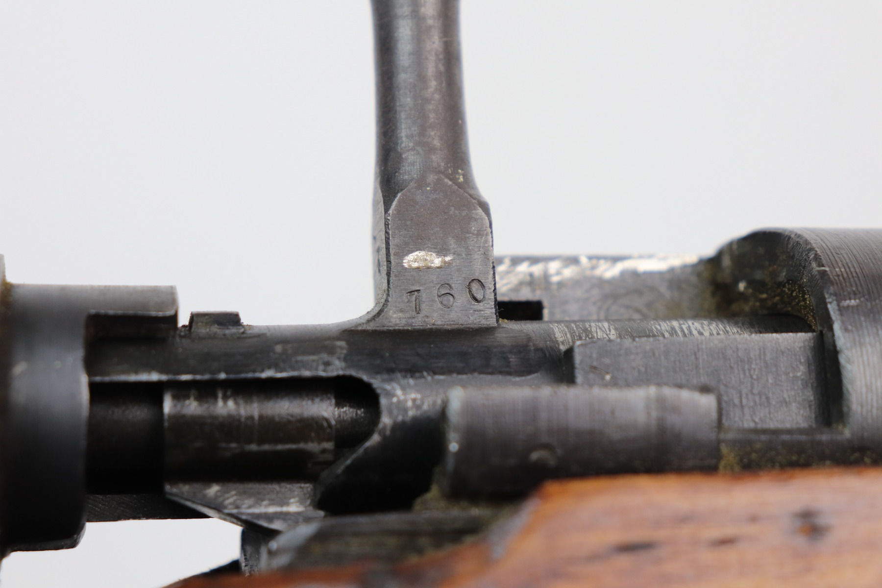 4/12/21 – This is an excellent example of an Arisaka Type 99 rifle, issued to the Japanese military during WW2. The gun is all matching and has a fully intact mum on the receiver. Made in the Tokyo arsenal. Peep-style rear sight. The gun is in excellent condition with small dots of oxidation here and there. Excellent stock with minor dings and scratches. The front-most portion of the stock is loose. The bore is minty.