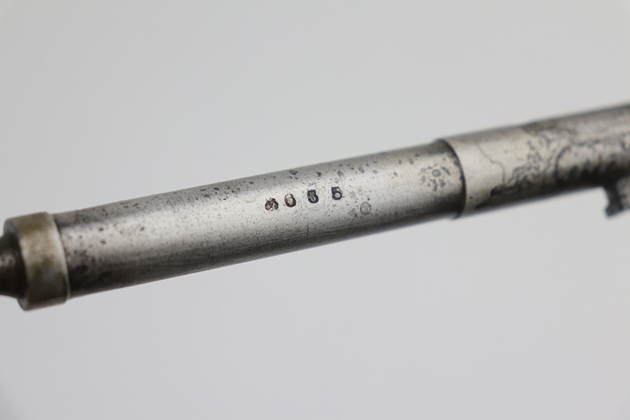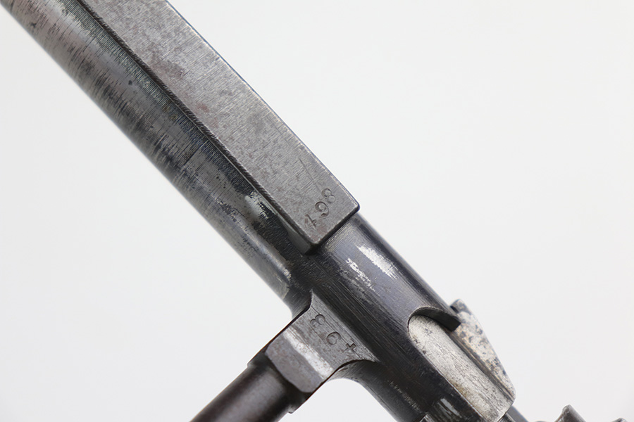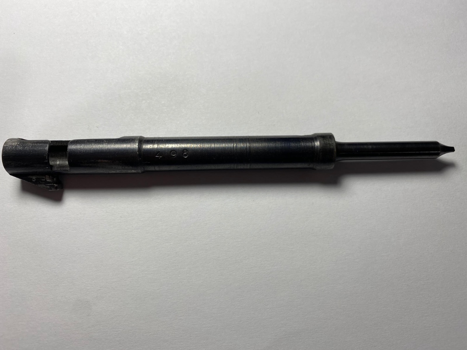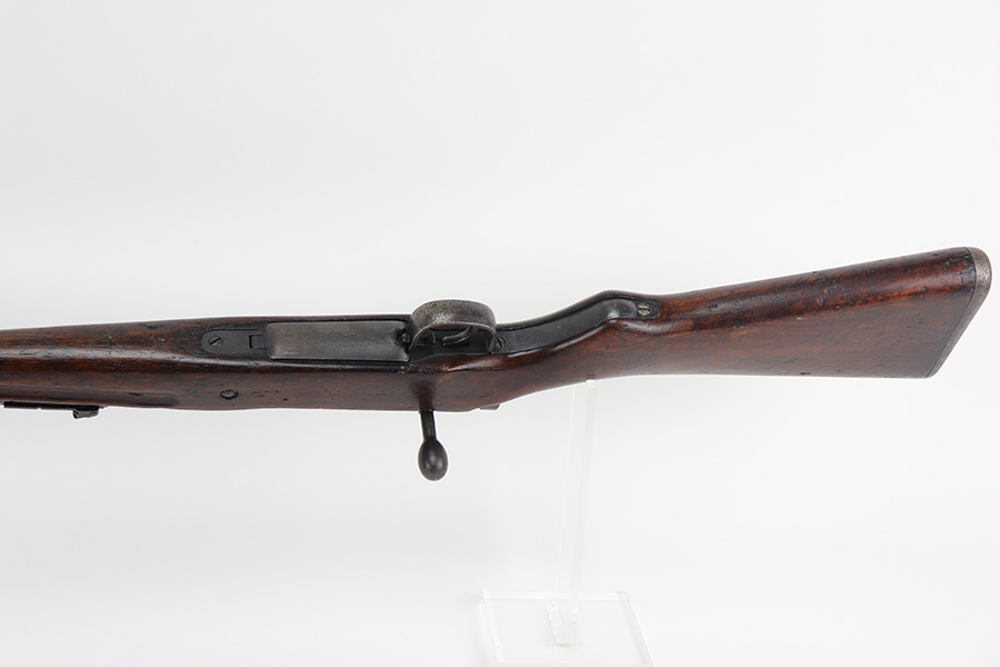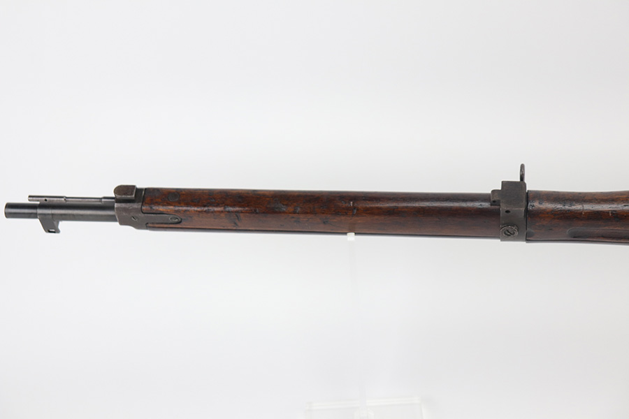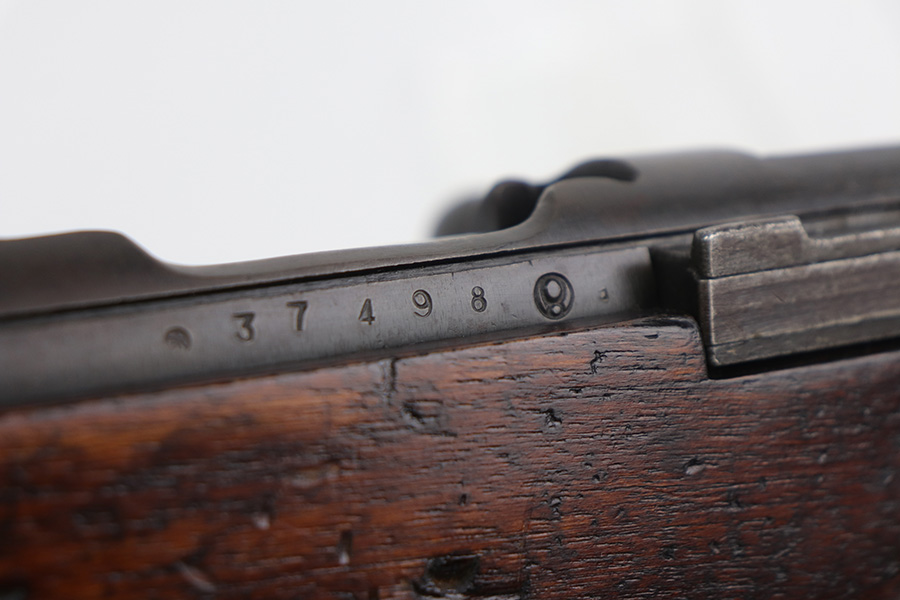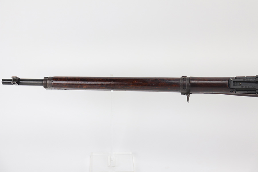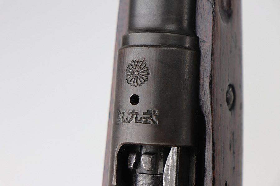 11/4/21 – This is an excellent example of an Arisaka Type 99 rifle issued to the Japanese military during WW2. There is a completely visible mum stamp on the receiver, but there are a couple of barely-visible strike marks through it. The gun is all matching except for the firing pin, which was replaced. The original firing pin is broken and does come with the gun. So we do have all matching parts. The gun is in excellent condition, retaining the majority of its original finish. Most of the finish loss is on the floor plate and around the high edges in general. There are areas of light brown patina on the chamber, floor plate, and trigger group. There is also some finish loss on the tang where it looks like a bolt may have been ground down. The wood stock is excellent with minor dings and scratches throughout, most noticeable on the sides of the action. The bore is near-mint – very shiny with strong rifling.