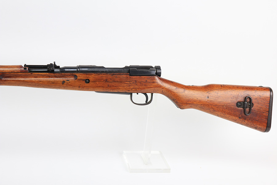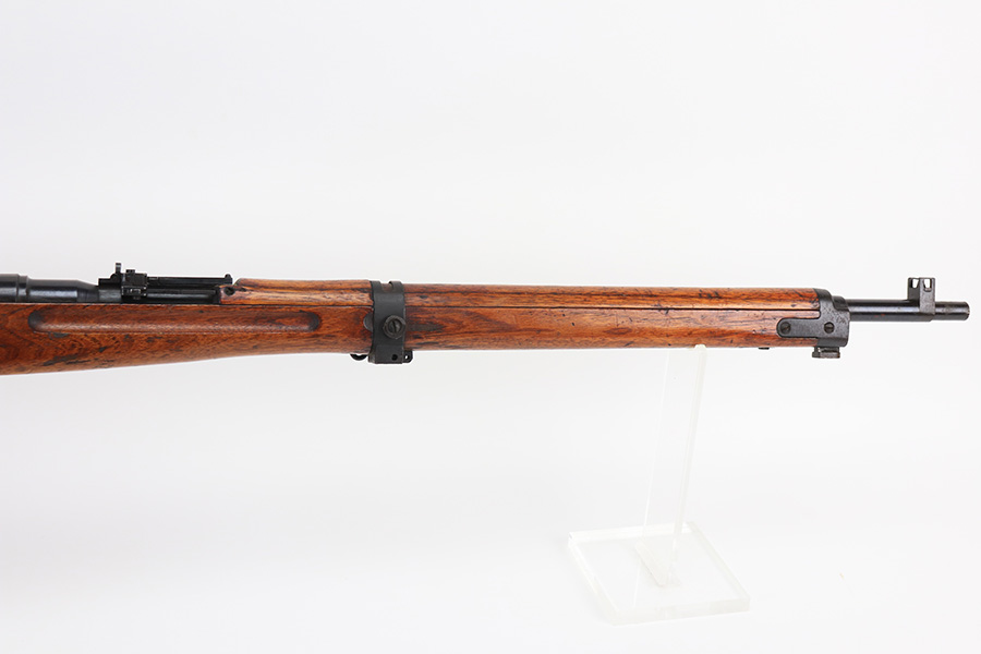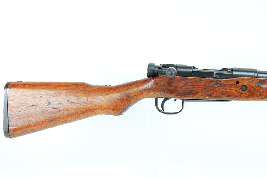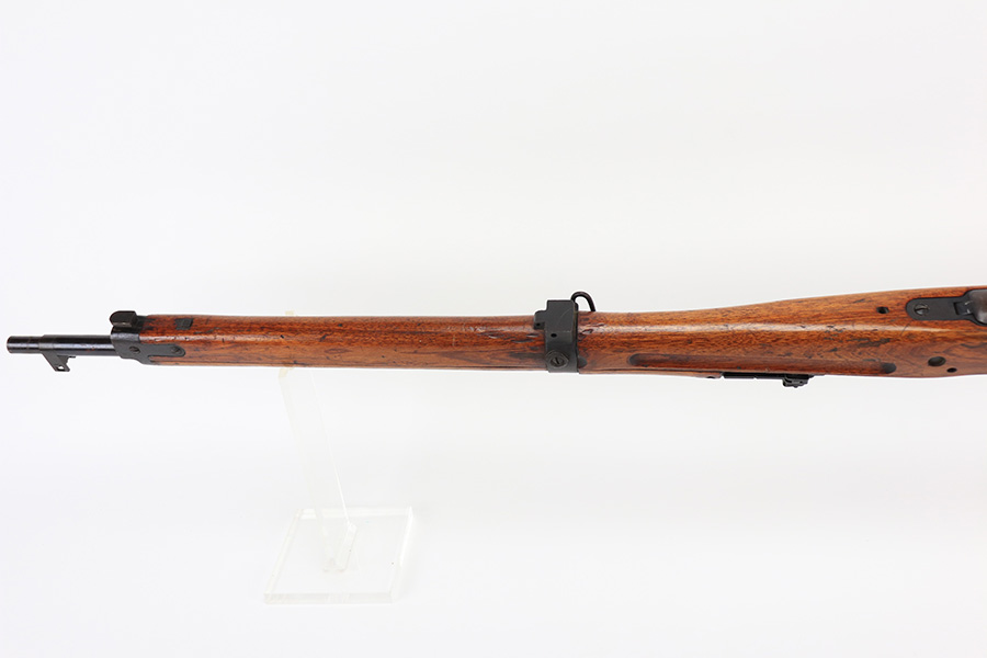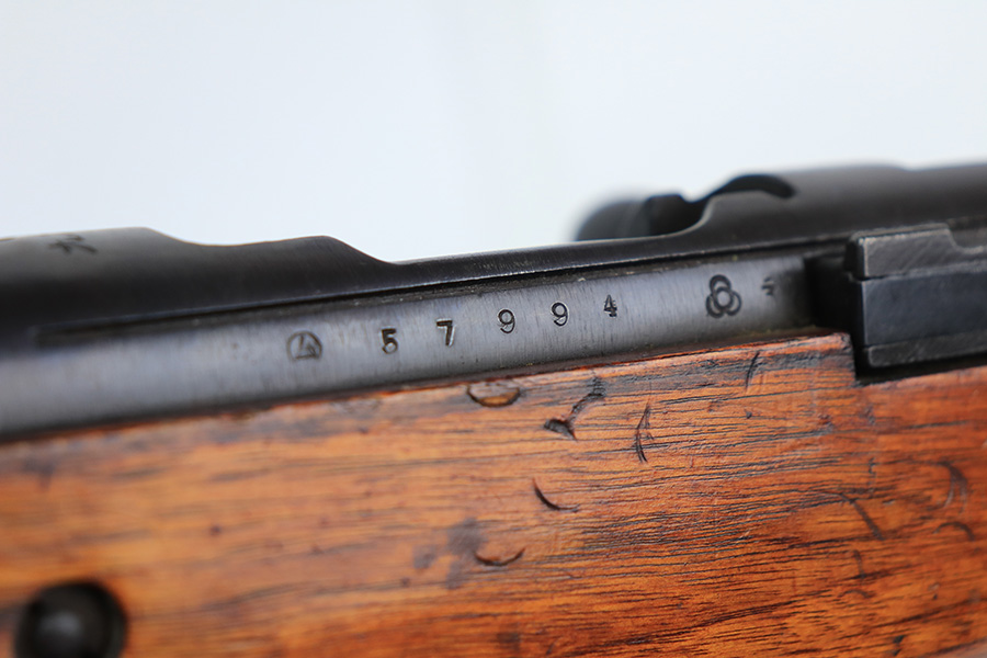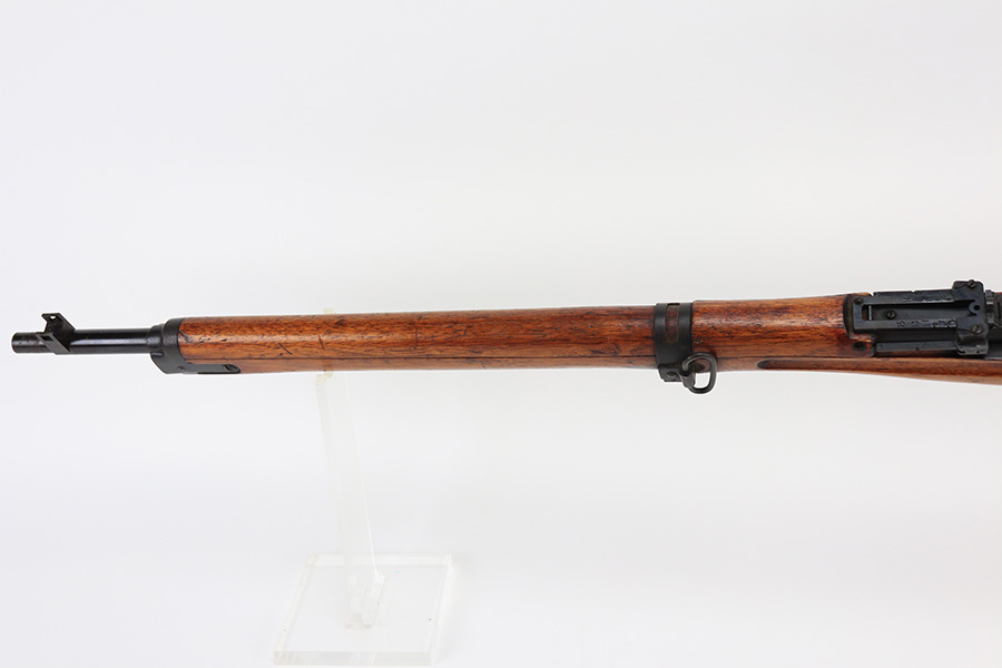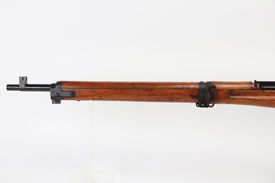 1/19/22 – This is an excellent example of an Arisaka Type 99 rifle issued to the Japanese military during WW2. The gun is all matching but the original Imperial mum stamp on the receiver has been ground off. The gun comes with a period-correct bayonet and scabbard. The bayonet is numbered but does not match the gun. Overall, the gun in excellent condition, retaining almost all of its bluing. There is very light thinning on the floor plate and trigger guard and very minor freckling around the muzzle, on the front barrel band, on the floor plate, and on the trigger guard. The stock is nice with minor bruises and scratches throughout (typical for these guns). The bore is mint.