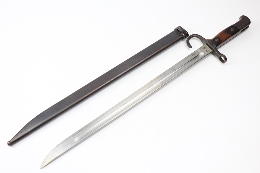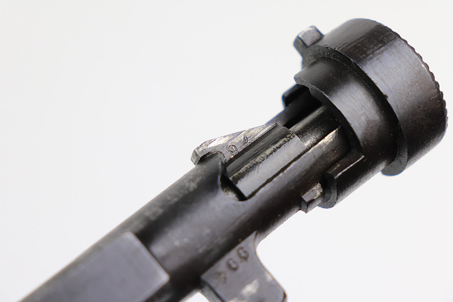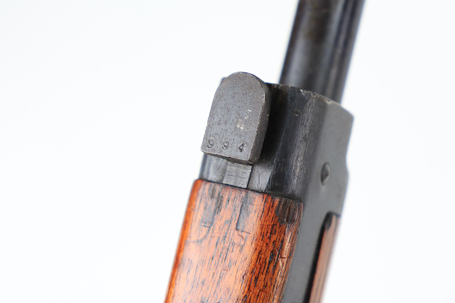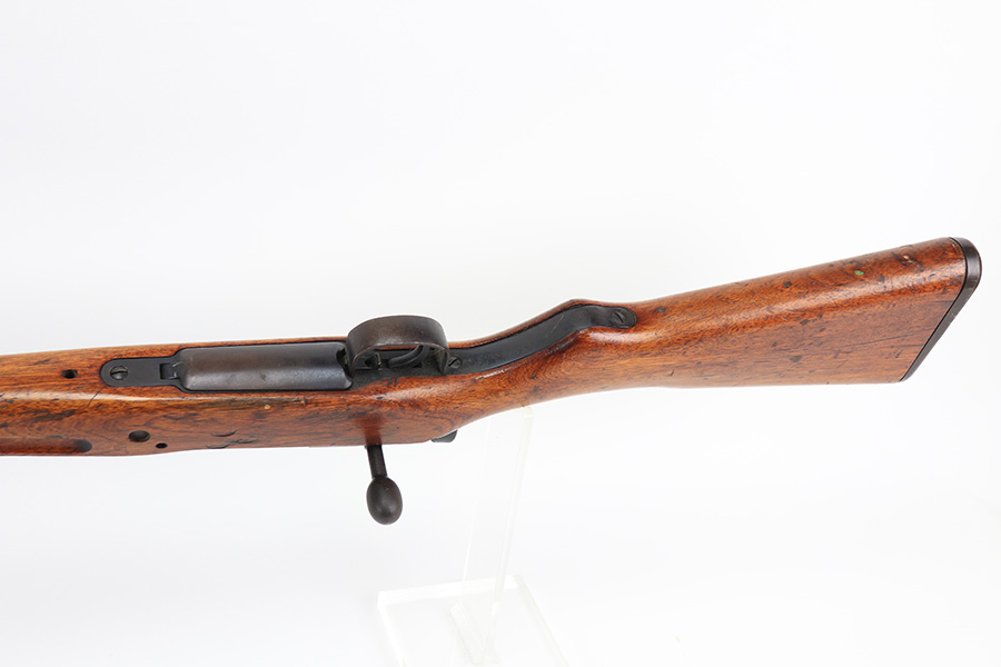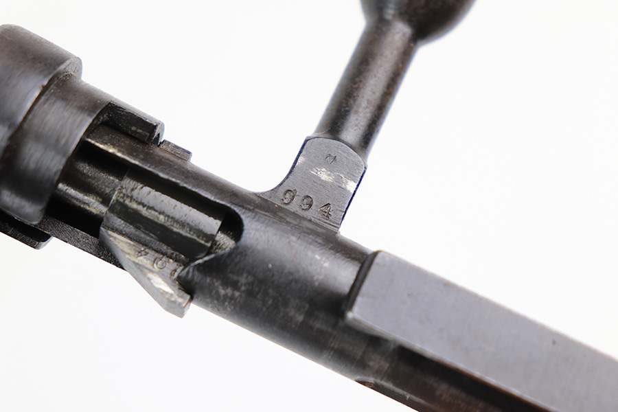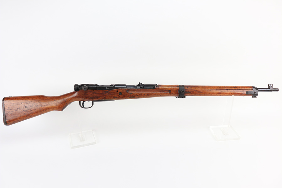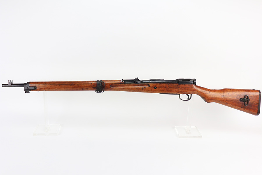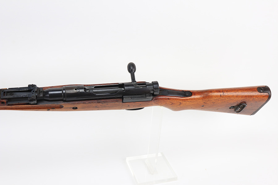 1/19/22 – This is an excellent example of an Arisaka Type 99 rifle issued to the Japanese military during WW2. The gun is all matching but the original Imperial mum stamp on the receiver has been ground off. The gun comes with a period-correct bayonet and scabbard. The bayonet is numbered but does not match the gun. Overall, the gun in excellent condition, retaining almost all of its bluing. There is very light thinning on the floor plate and trigger guard and very minor freckling around the muzzle, on the front barrel band, on the floor plate, and on the trigger guard. The stock is nice with minor bruises and scratches throughout (typical for these guns). The bore is mint.
