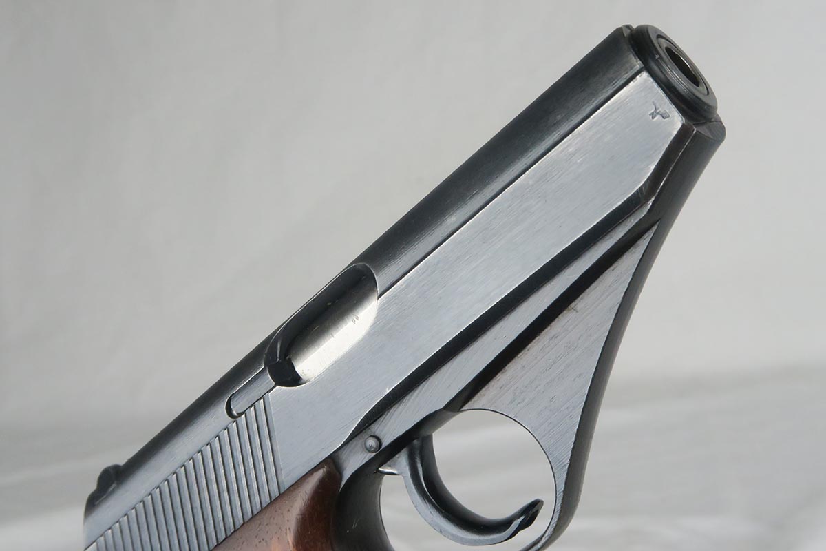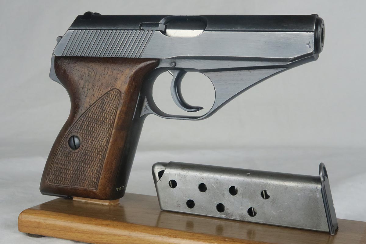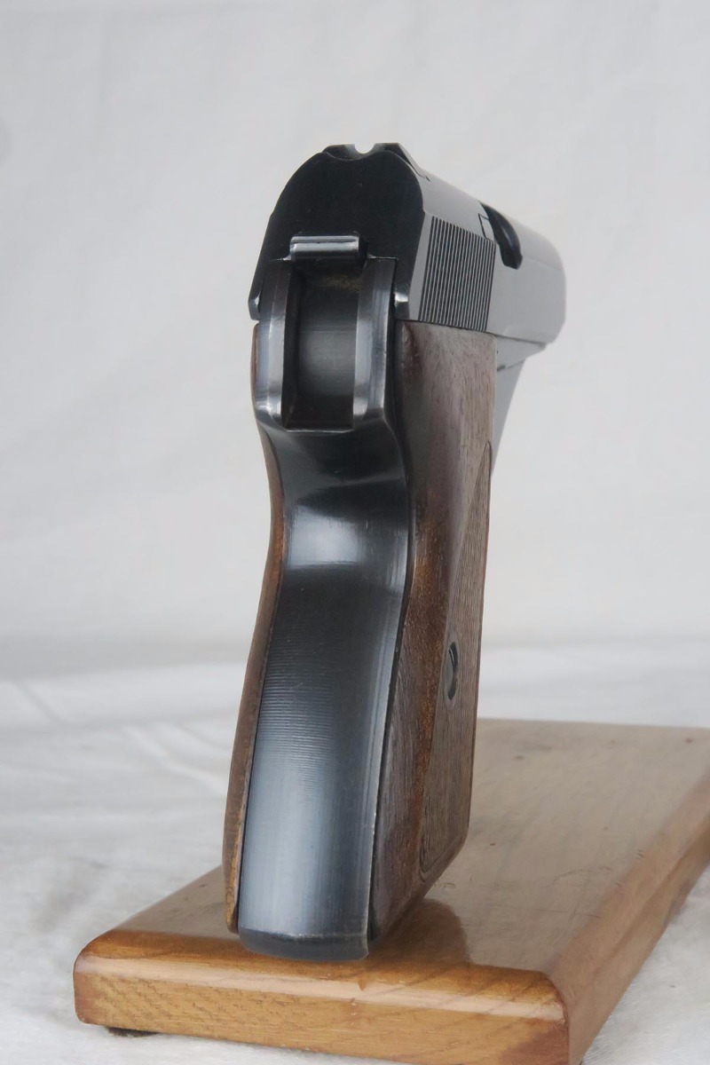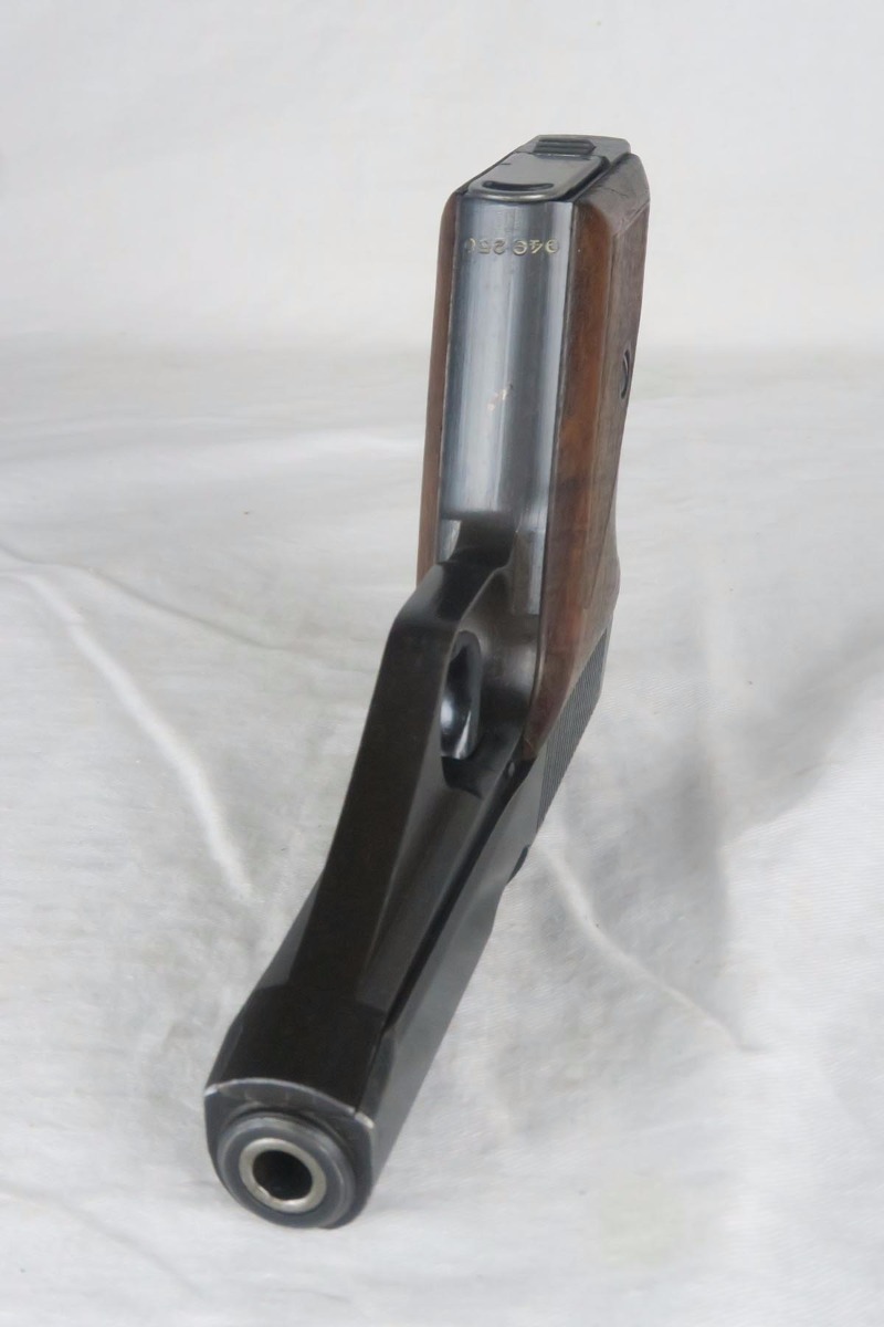 11/20/17 – This is an excellent late-war Army Mauser HSc in all original condition. The military blue rates at about 98% with a little edge wear and a spot of finish loss on the front strap. This pistol is one of the last HSc’s ever made for use in World War II, with the serial range for 1945 ending at 951xxx. This one has very nice grips and a half-moon magazine. Excellent bore.