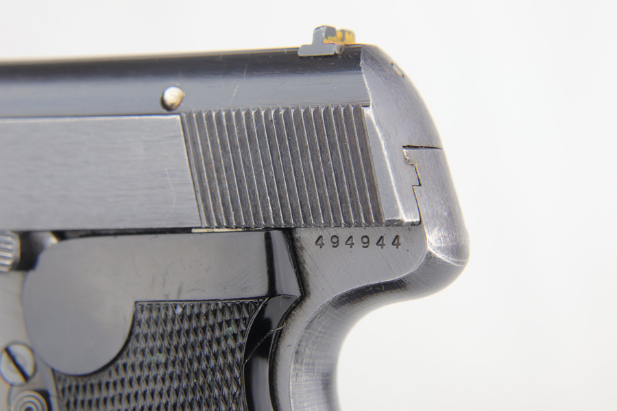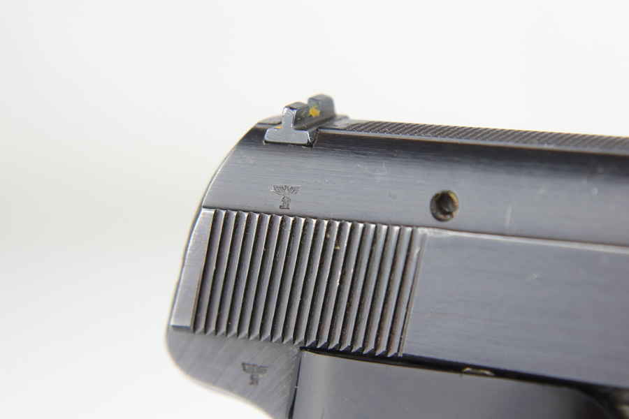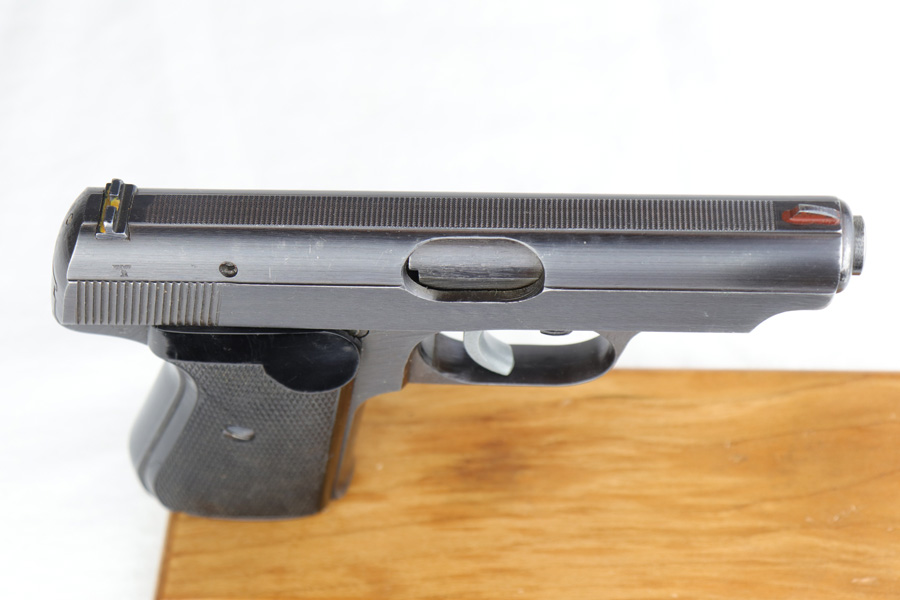 1/23/19 – This is an excellent example of an original Sauer 38h that was issued to the German Army. Original blue rates at about 97% with minor muzzle wear and light thinning of the straps, as well as a couple very thin scratches on the left side slide. Excellent grips, though the right panel does have a couple small spots of smoothing. Nice, shiny bore with only minor signs of use. Half-moon mag.