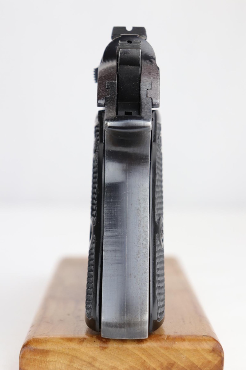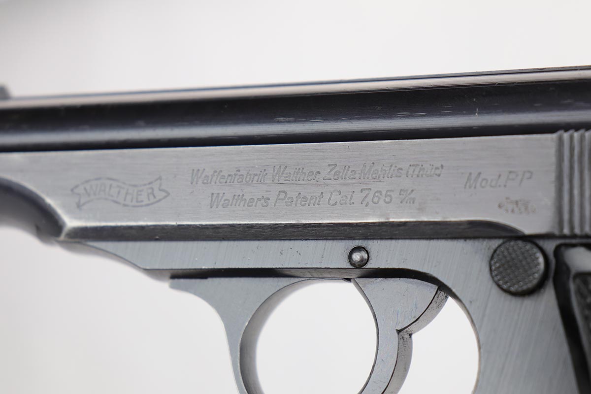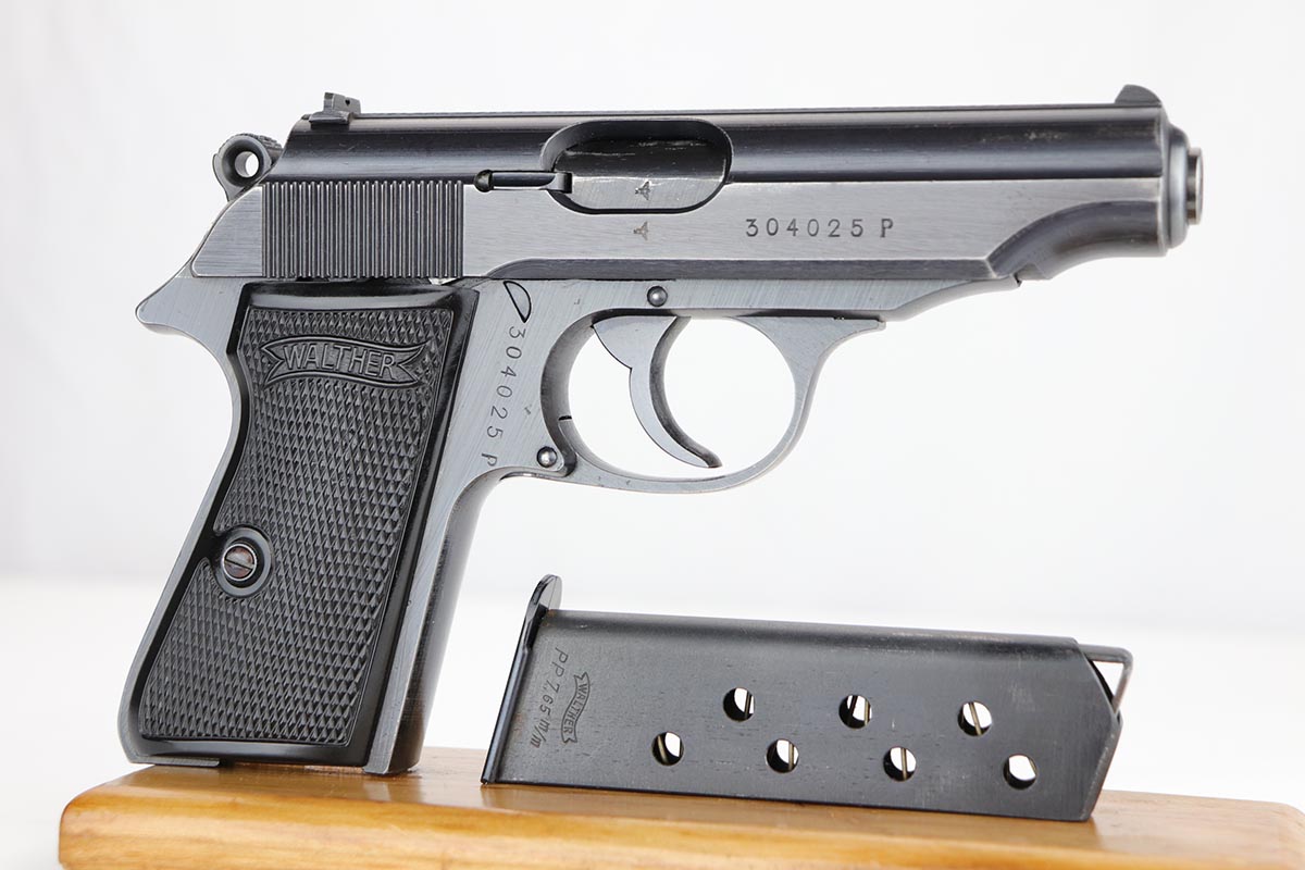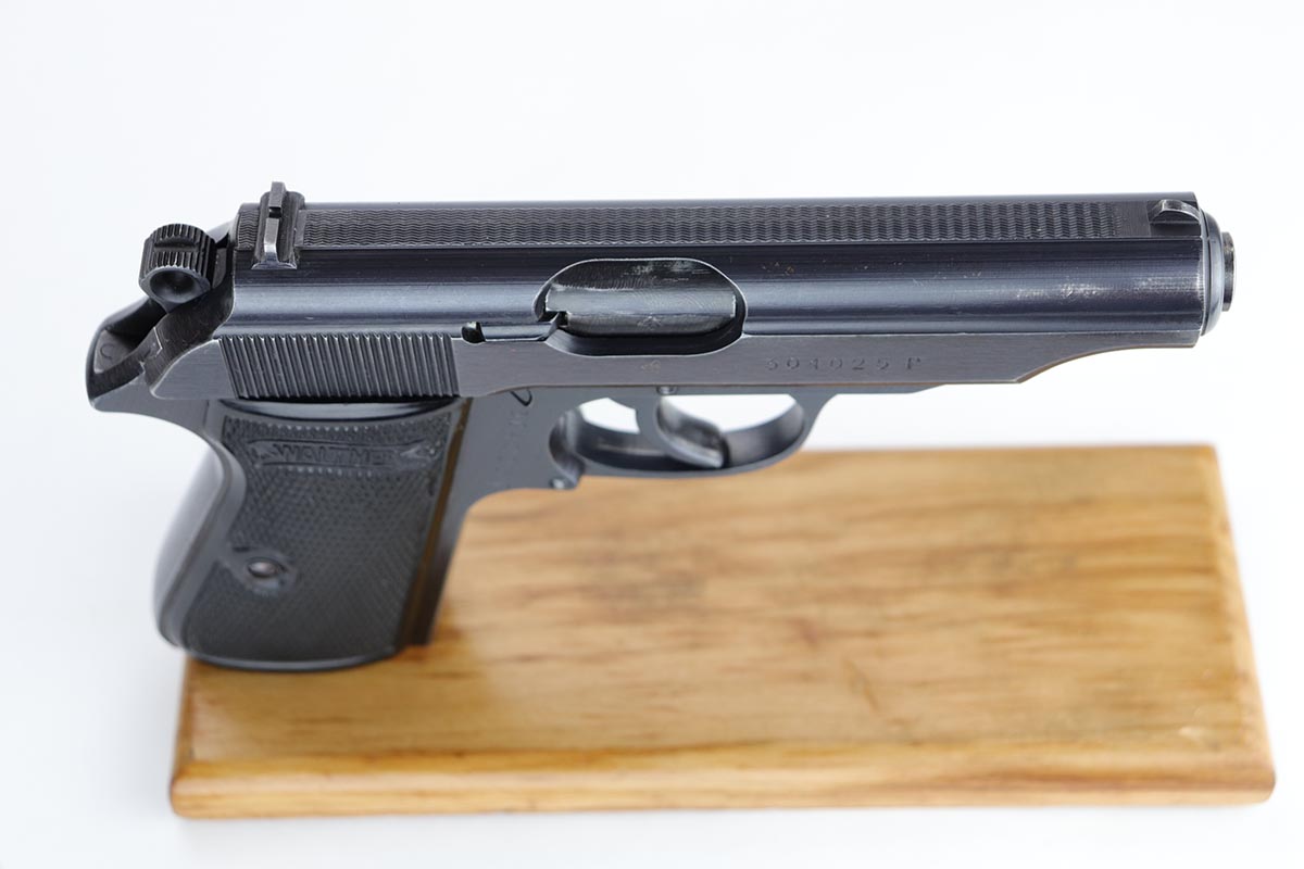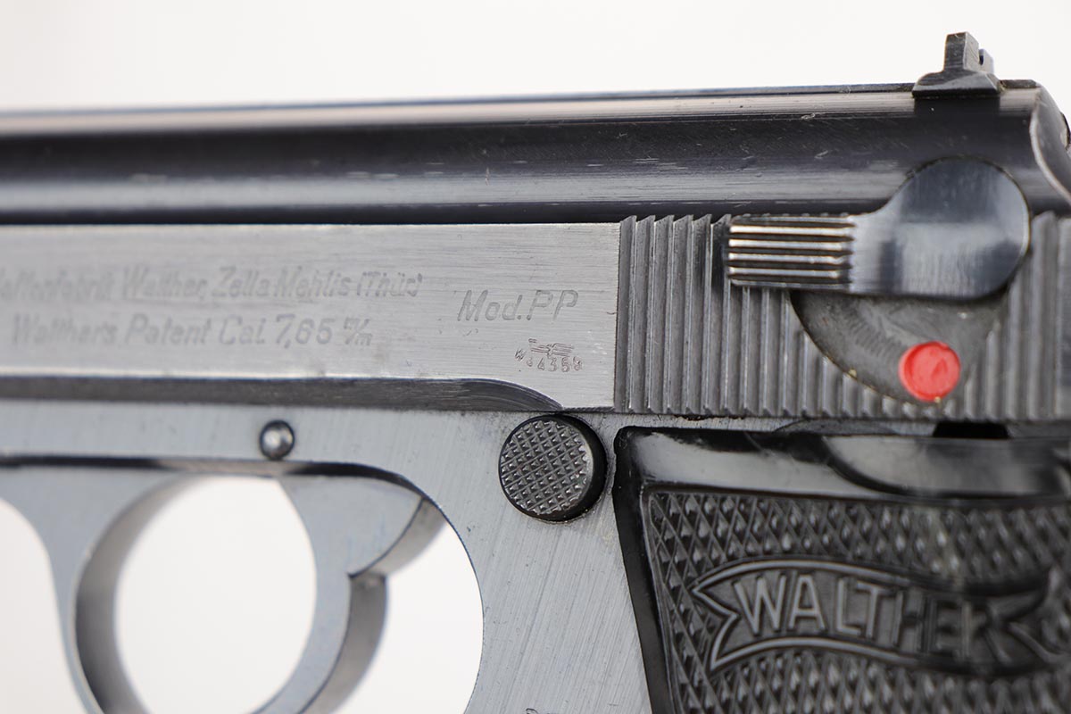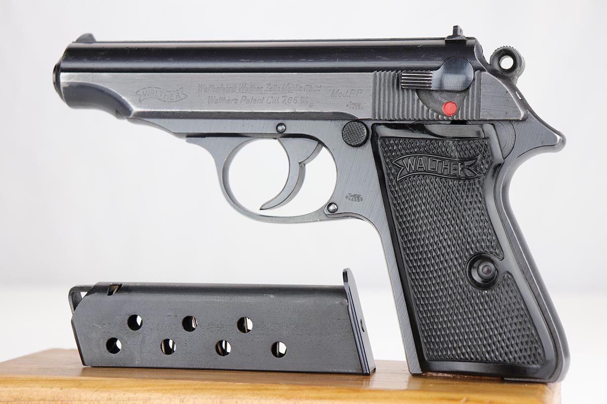 1/6/20 – This is an excellent example of a Walther PP that was produced in 1944 and issued to the German Army. About 95% of the military blue remains, with minor high point wear on the slide, and some thinning on the straps. Excellent grips and magazine. Minty bore.