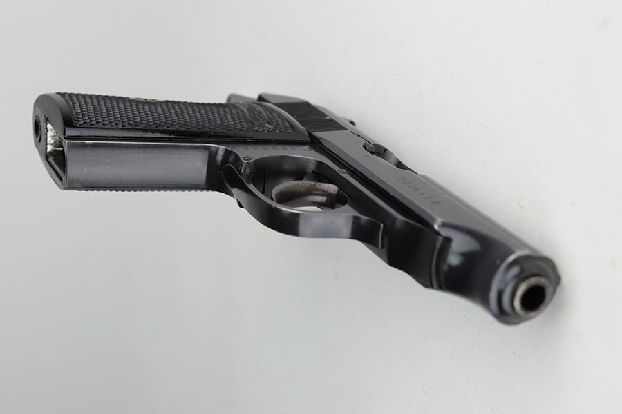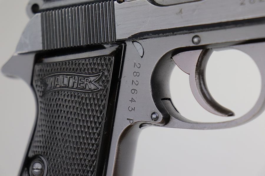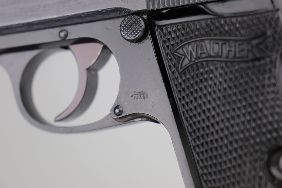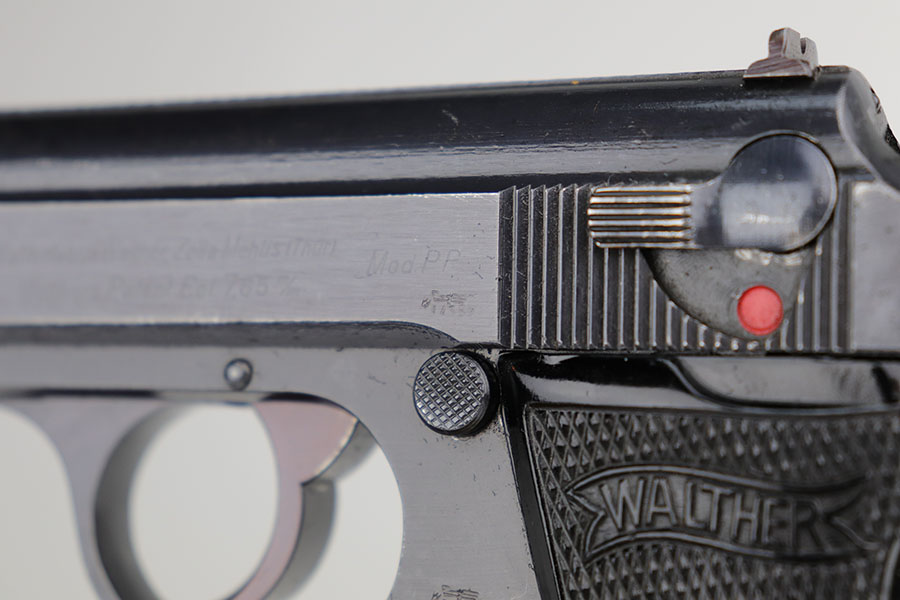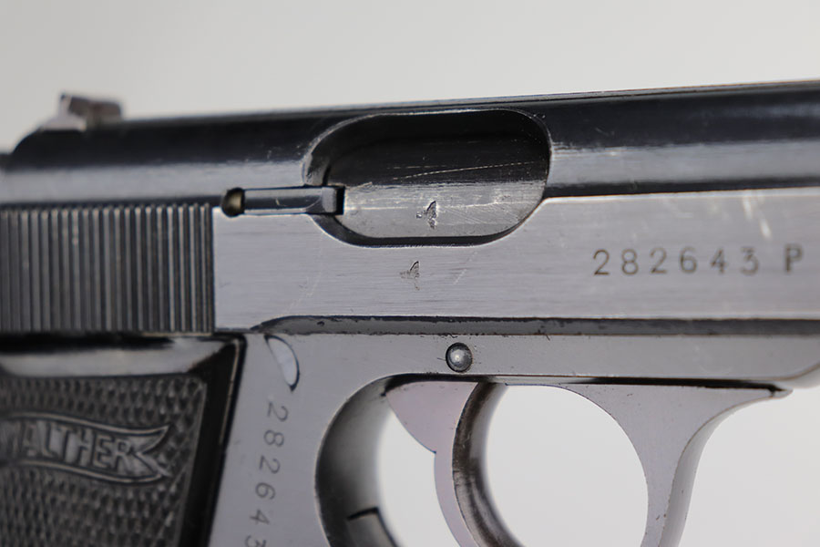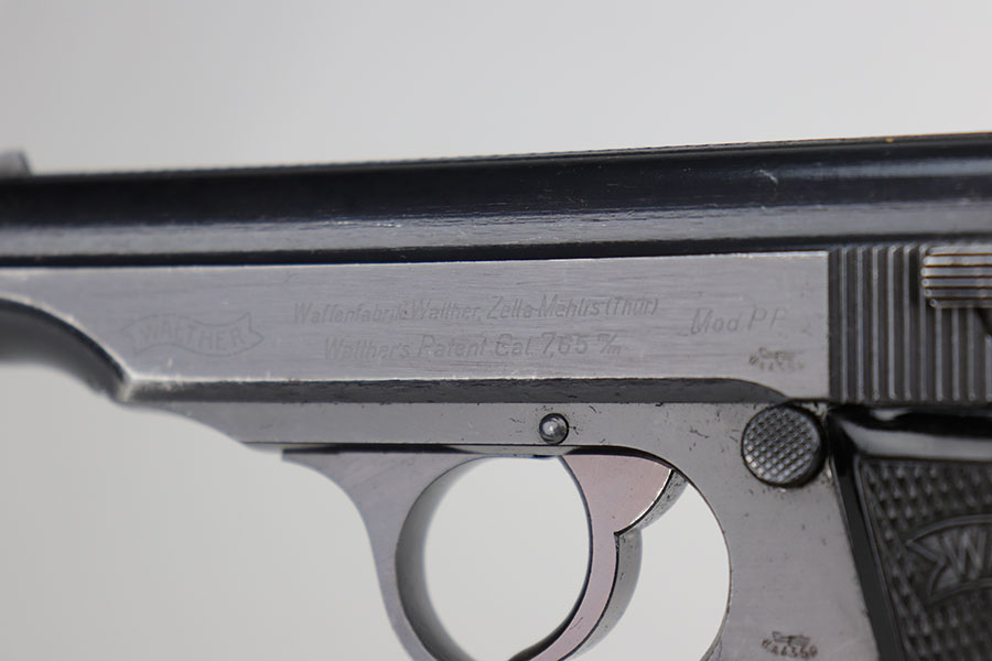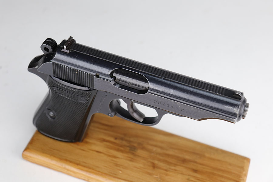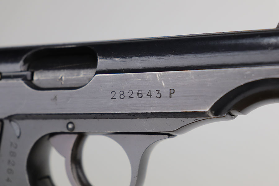 12/9/20 – This is an excellent and original Walther PP that was issued to the German Army in late 1942 or early 1943. WaA359 proofs on slide and frame. About 96% of the military blue remaining, with minor muzzle wear on each side, and a little finish loss on the bottom of the back strap. Excellent grips. Mint bore. Wartime magazine.