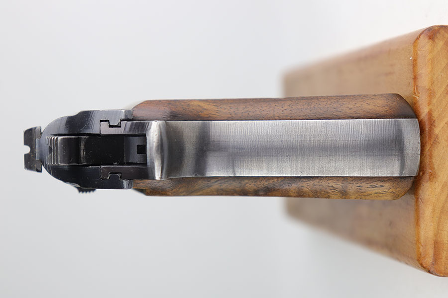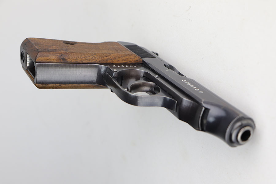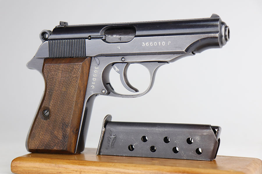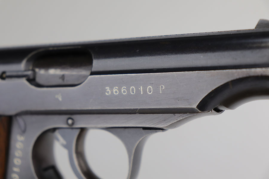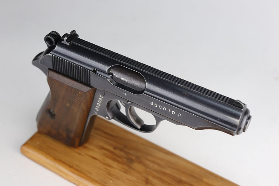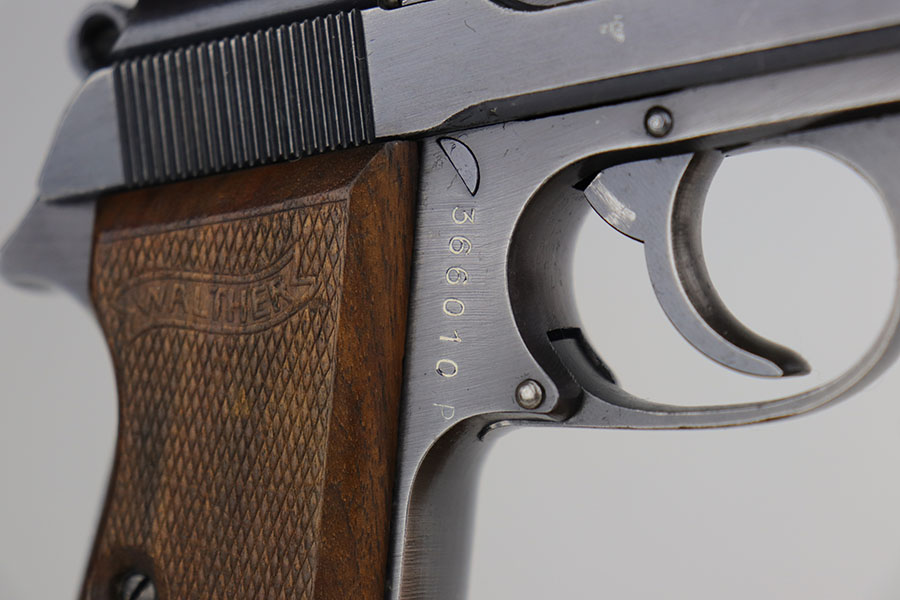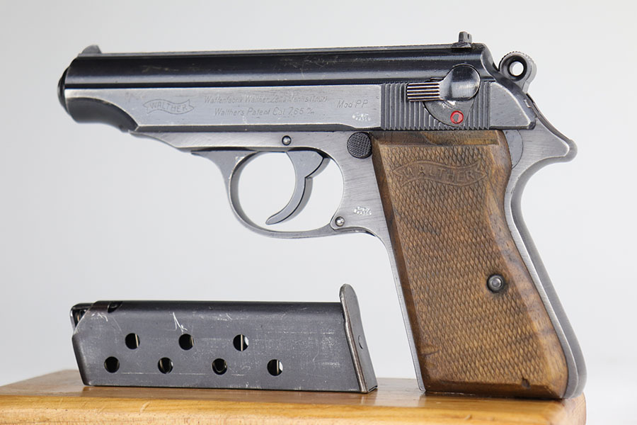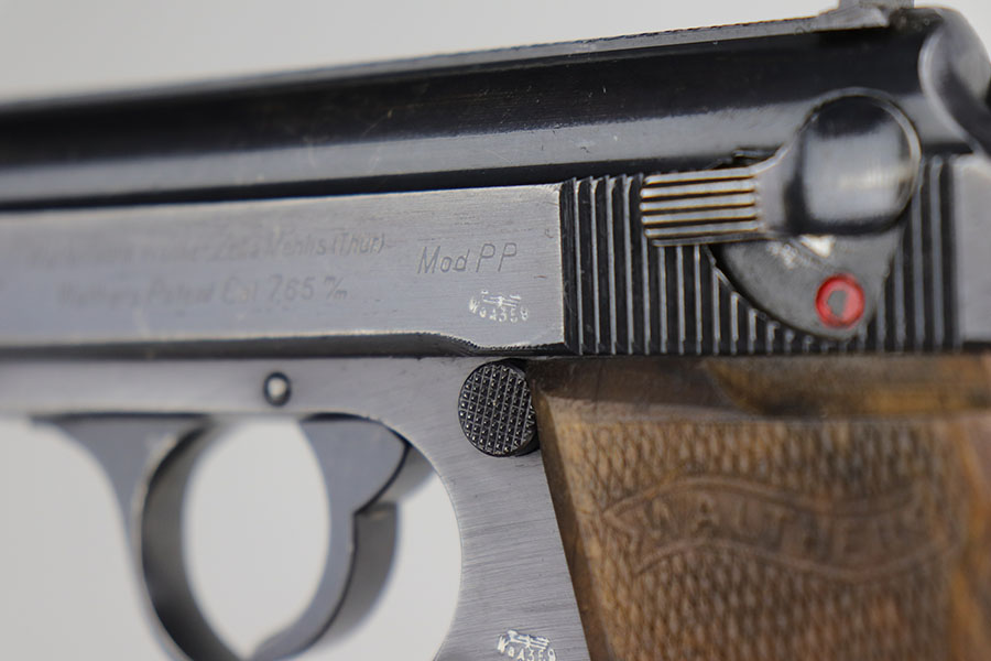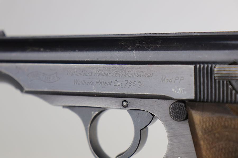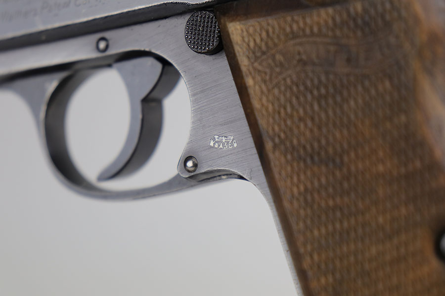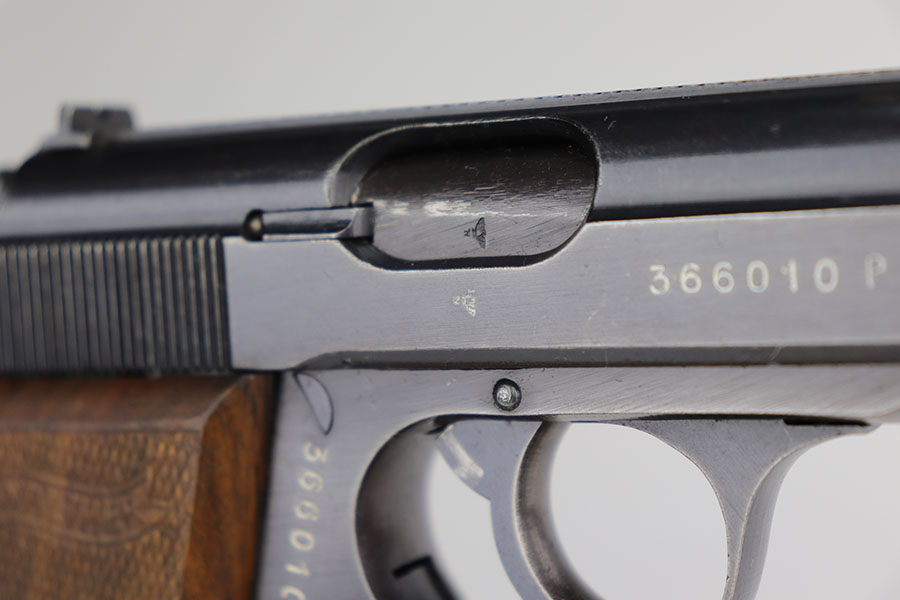 12/24/20 – This is an excellent Walther PP that was issued to the German Army in 1944. Little bit of muzzle and slide wear on the left side but otherwise in great shape. Sharp waffenamt on slide and frame. Late-war wood grips are in good shape with just a small set of indents on the lower area of the left panel. Minty bore. Original wartime magazine.
