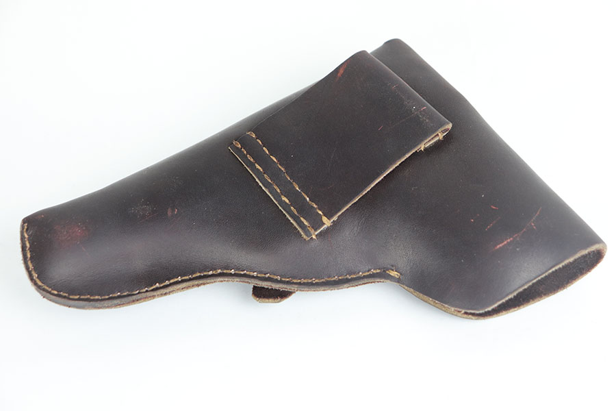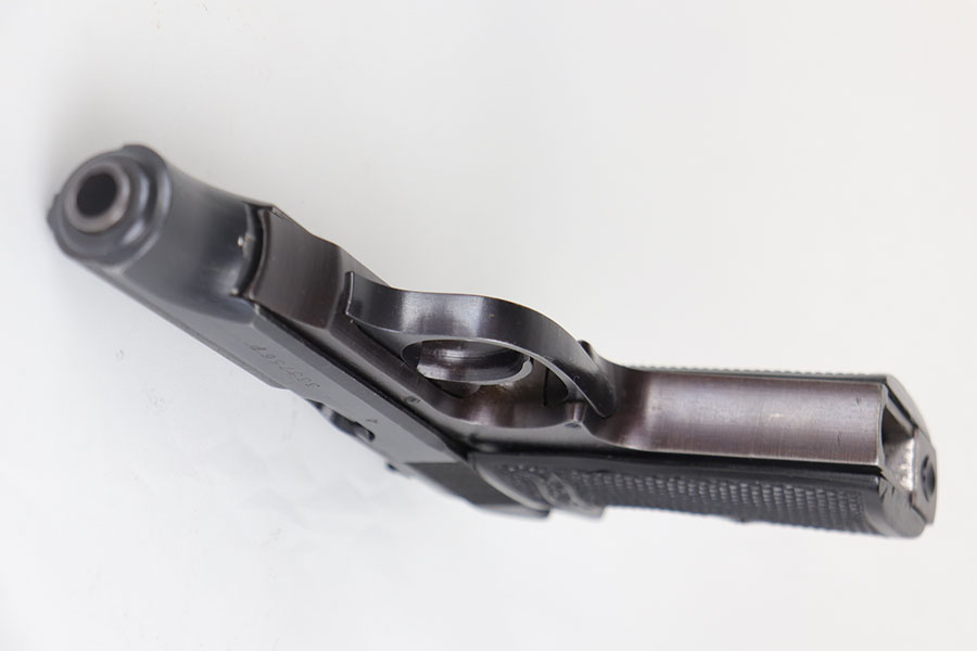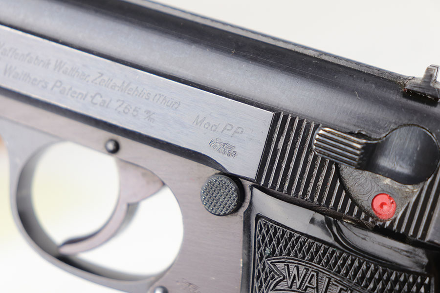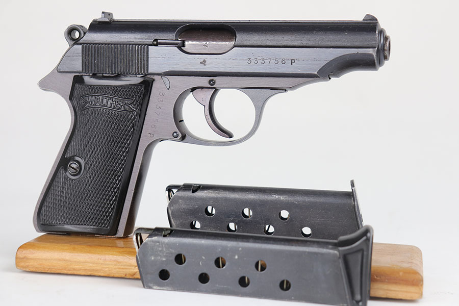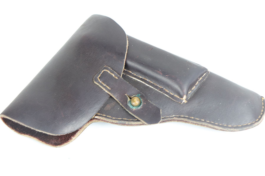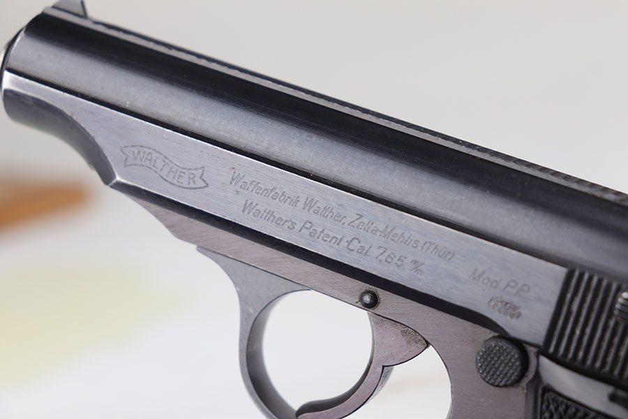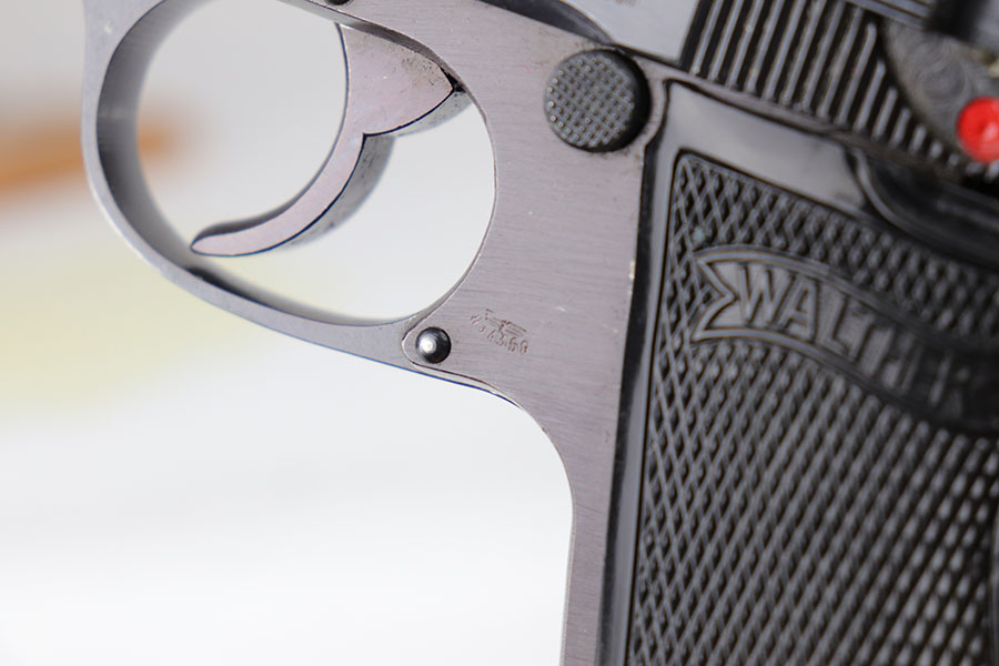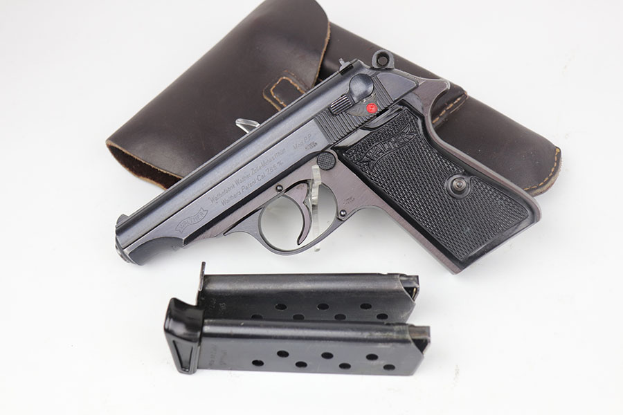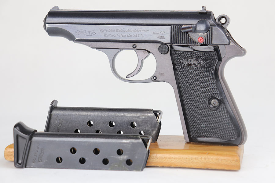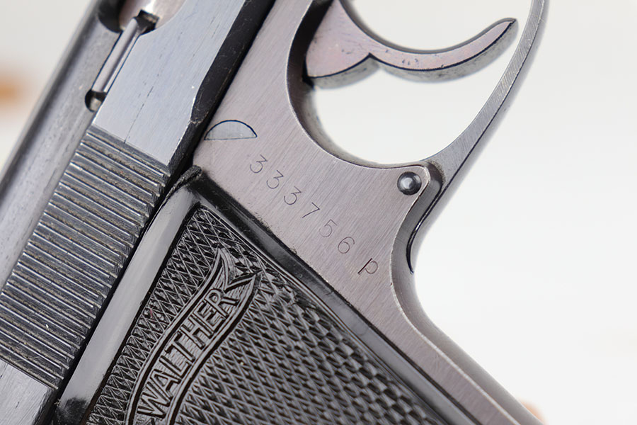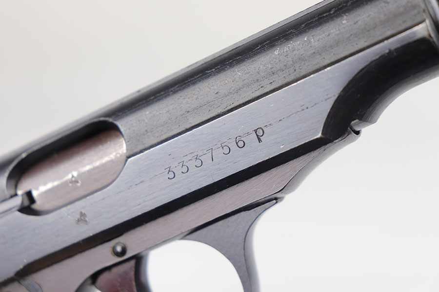7/17/20 – This is an excellent Walther PP rig that was made late in the war and issued to the German Army. The pistol is matching with 95-97% of the original blue. Profile view is near-mint with just a bit of muzzle wear, but there is some thinning on the back strap. WaA359 proofs on frame and slide. Minty bore and excellent grips. Comes with an excellent finger extension magazine and spare with flat bottom. Rig is completed by an unmarked holster.