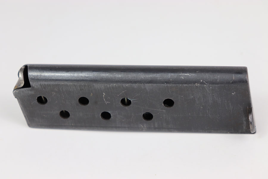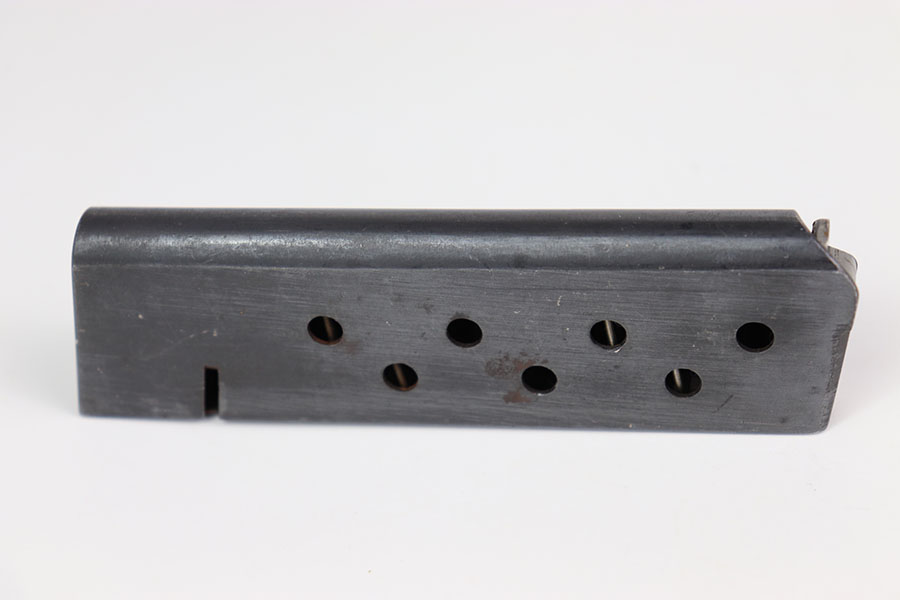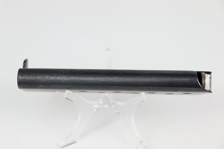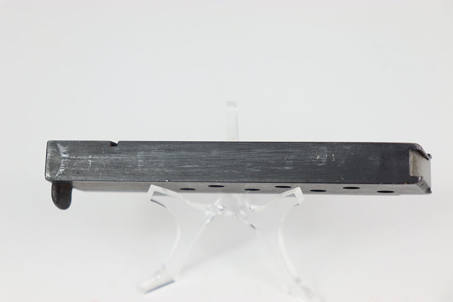 4/18/24 – This is an original Astra 600 Magazine from WW2. This magazine is in excellent condition with a very nice original bluing. The magazine has no rusting or pitting throughout. The base of the magazine is numbered “822” with the Astra marking. Spring is strong and functional.