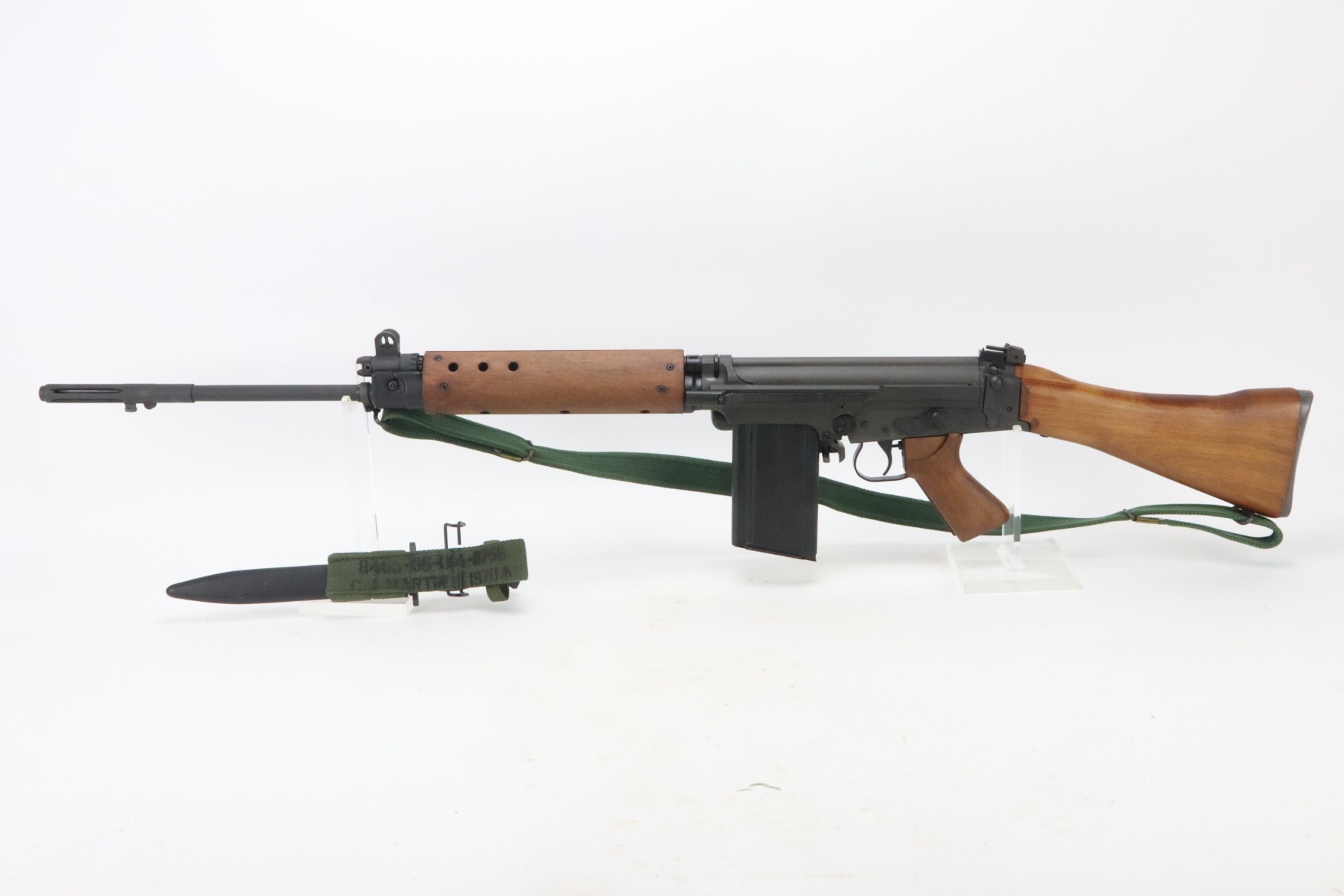 08/23/2024 – For sale is a FAL rifle built by Mark Graham of Arizona Response Systems using New Old Stock Australian L1A1 parts. The upper receiver is made by DSA. The metal has an excellent parked finish with no wear. The wood furniture is equally excellent with no cracks or breaks. The bore is very bright with great rifling. The rifle also comes with what looks to be an L1A2 model bayonet w/ frog and scabbard.