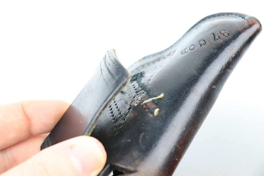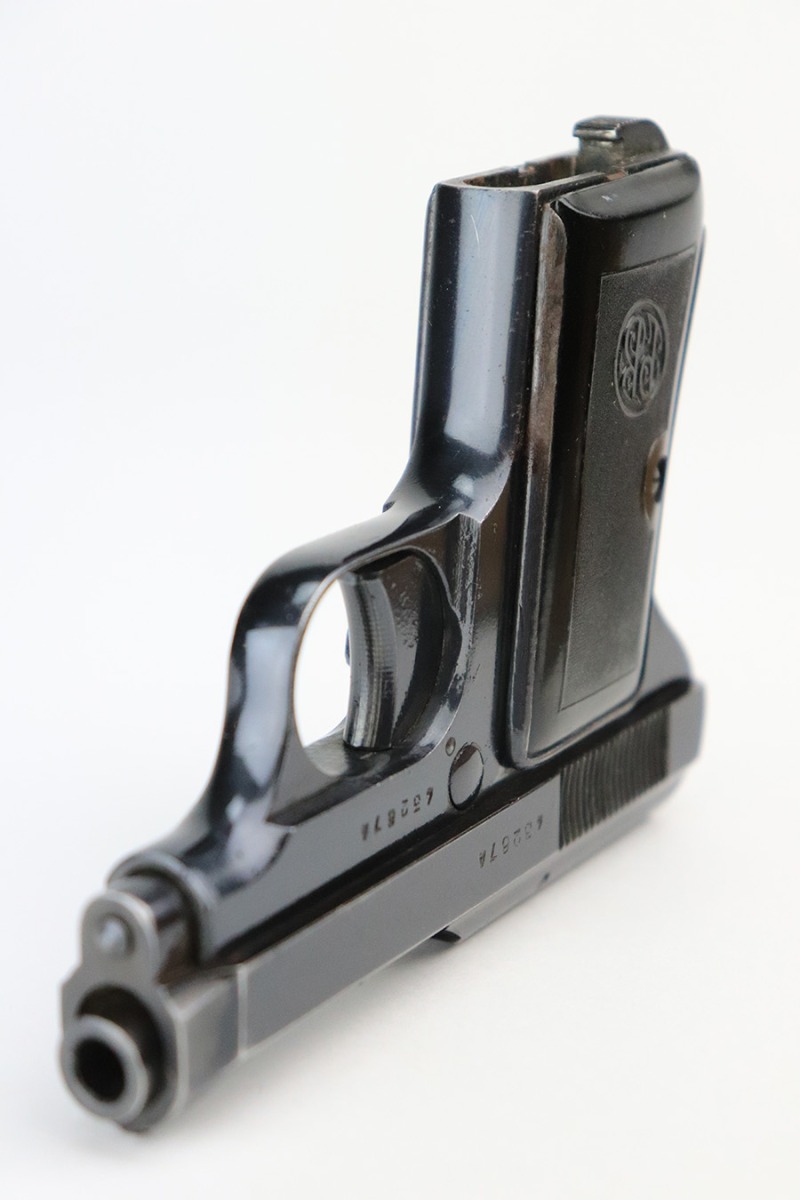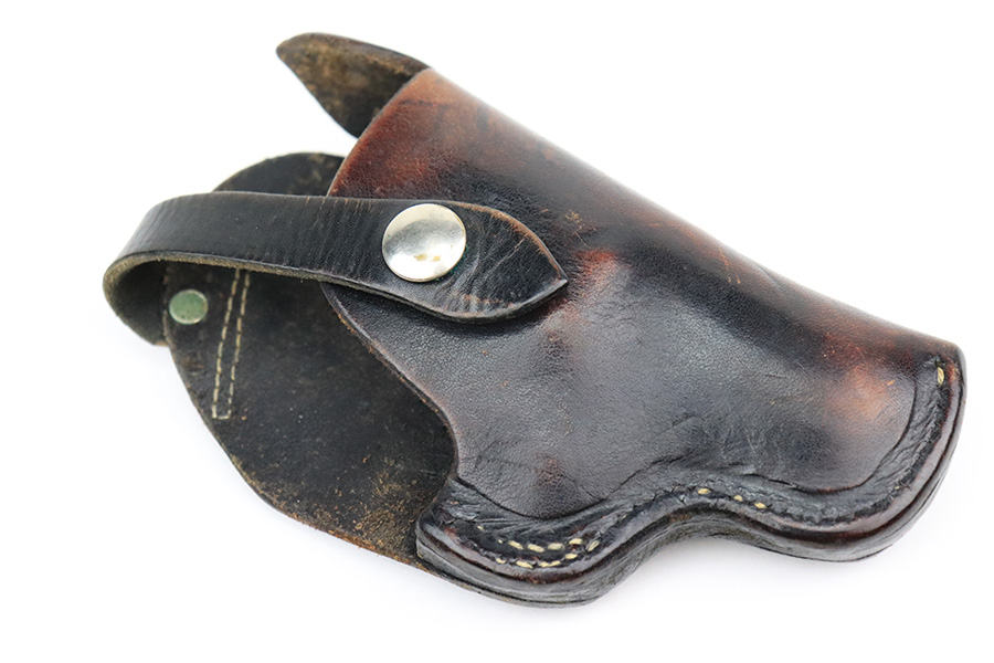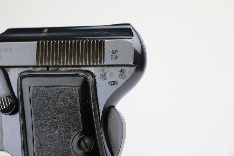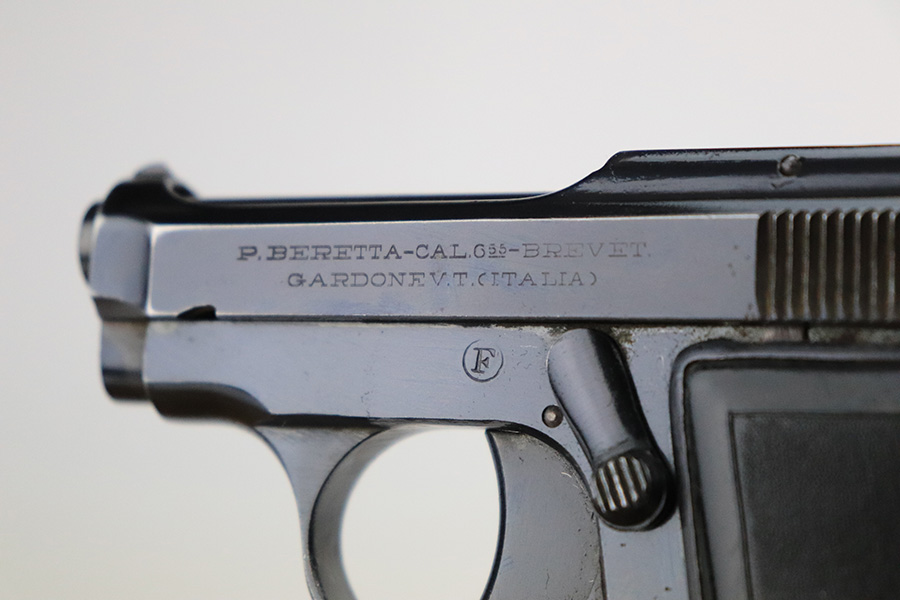 7/13/22 – This is an excellent example of a Beretta Model 418 manufactured in 1950. It is all matching and has the proper Italian proofs throughout. It comes as a rig with one proper magazine and a leather holster that fits the gun well. The gun itself has retained about 97% of its original high polish finish with just very minor wear around some of the high edges. Comes with excellent period-correct black bakelite grips. Minty bore.
