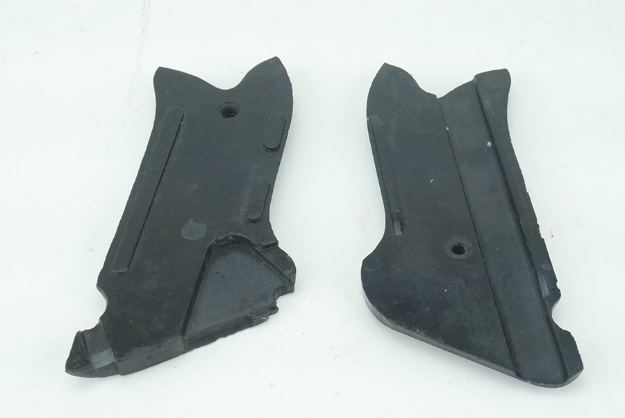 7/8/24 – This is an original pair of WWII Black Widow Luger grips. The grips are in excellent condition, with sharp exterior diamond pattern checkering. Some light handling wear and minor areas of smoothness on both panels. No major cracks or chips. Rare and highly desirable late-war production grips.
