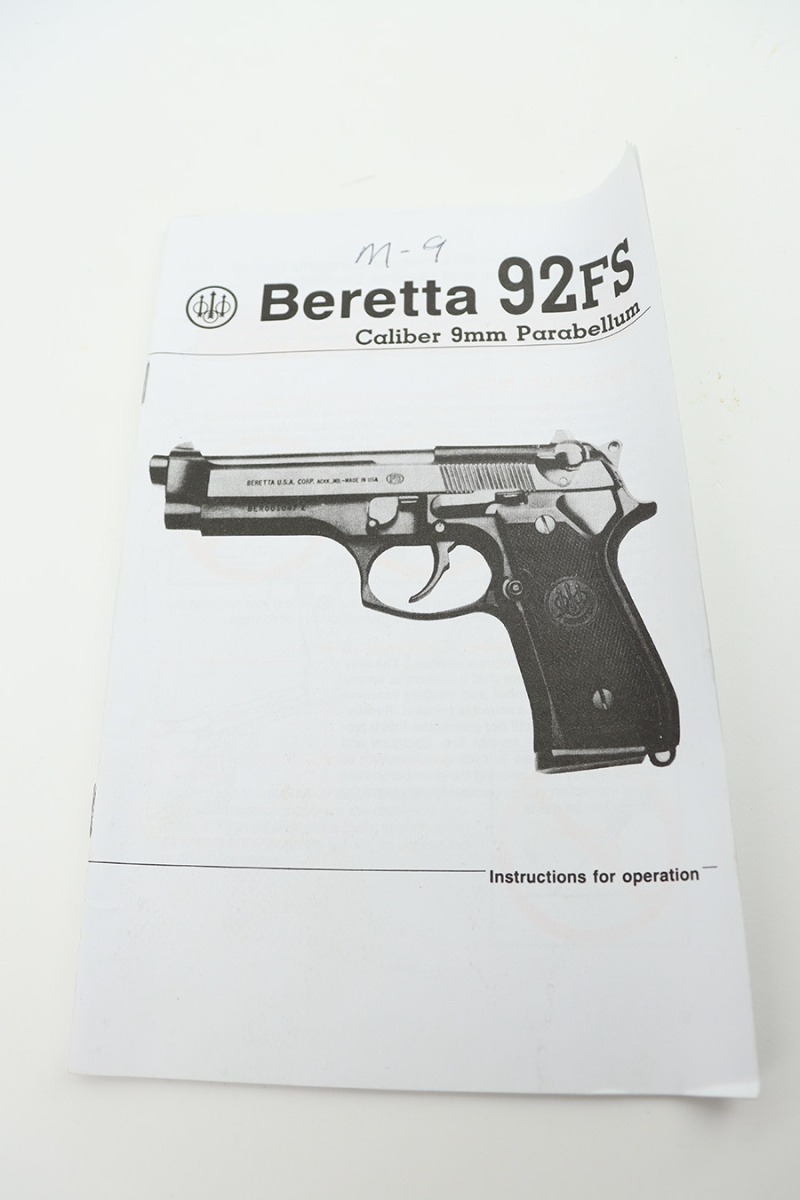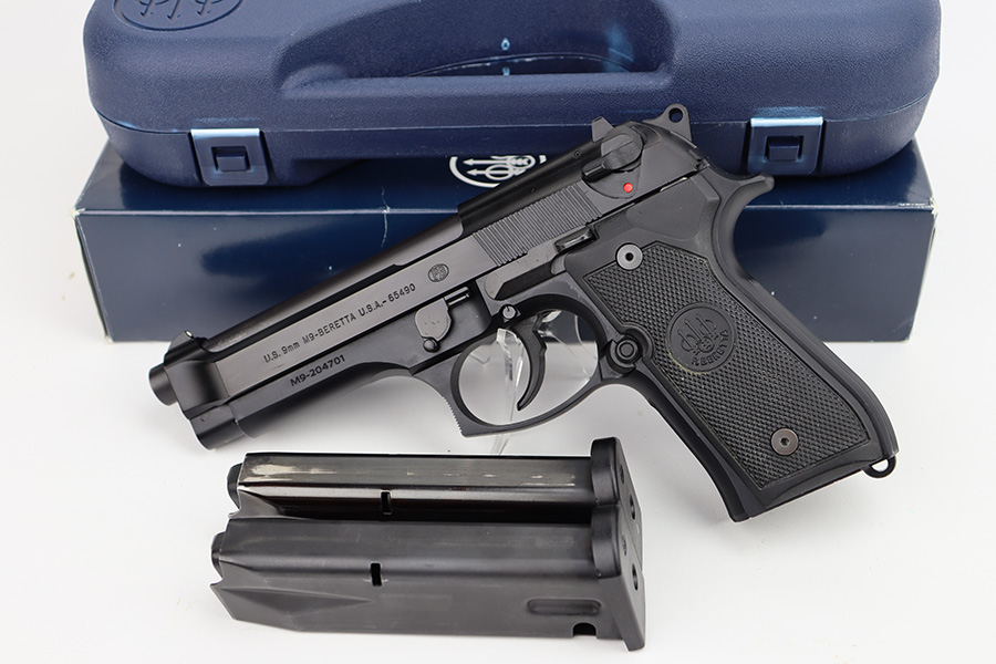 12/20/2023 ~ This is an excellent example of a Boxed Beretta M9 Special Edition chambered in 9mm. Comes with original matching-numbered box, hard case, Beretta cup, 2 magazines, gun lock, and user manual. The gun itself is in excellent condition with slight finish chips the top side of the slide and underneath the muzzle. Mint bore.