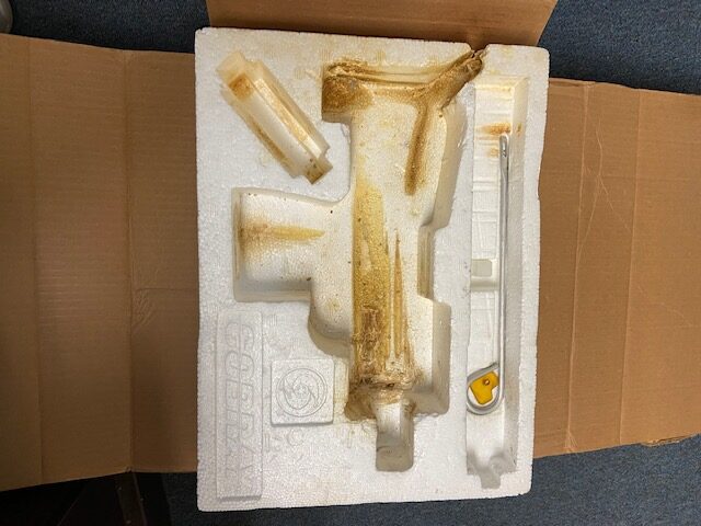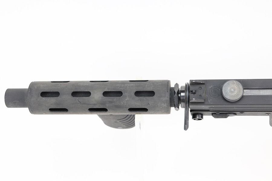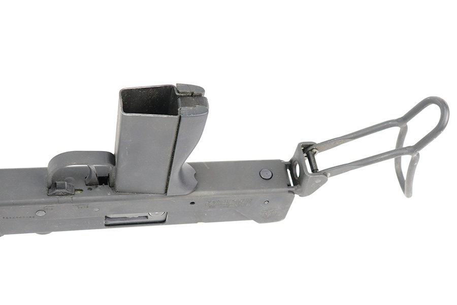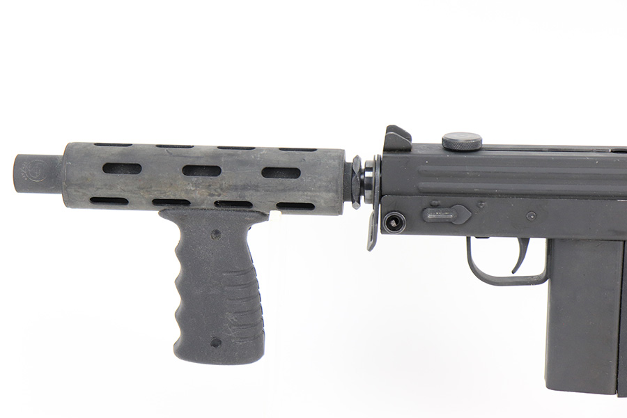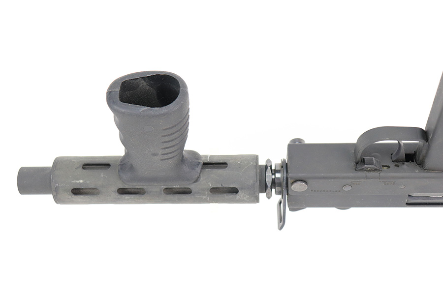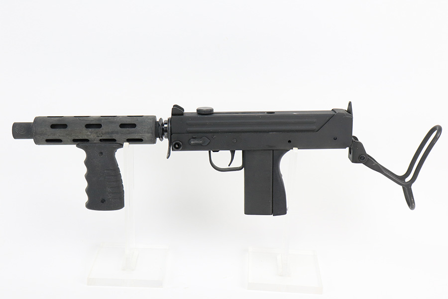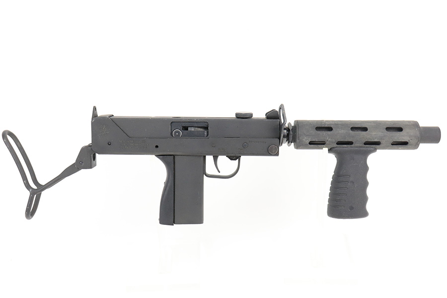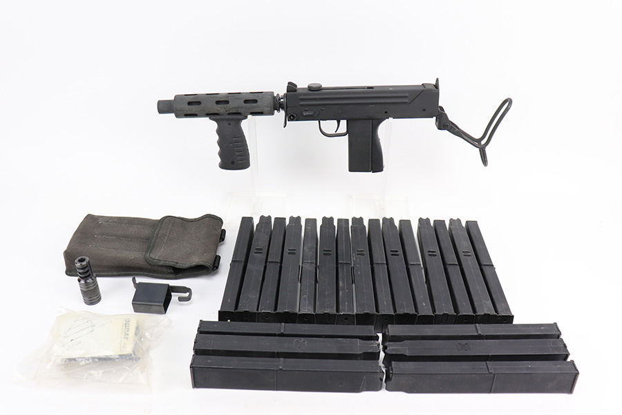 4/20/22 – This is a minty example of a Cobray M-11 submachine gun in its original shipping box. The gun is in terrific condition with a minty bore and only minor surface scuffs. It has a retractable wire stock and comes with an easy-on foregrip that is shown attached to the gun in photos, but just twists right off. The original Cobray Styrofoam insert is in the box, as is the cleaning rod. A total of 21 Cobray plastic magazines are included with this listing, which sell for about $75 each. Fully transferrable on a form 4.