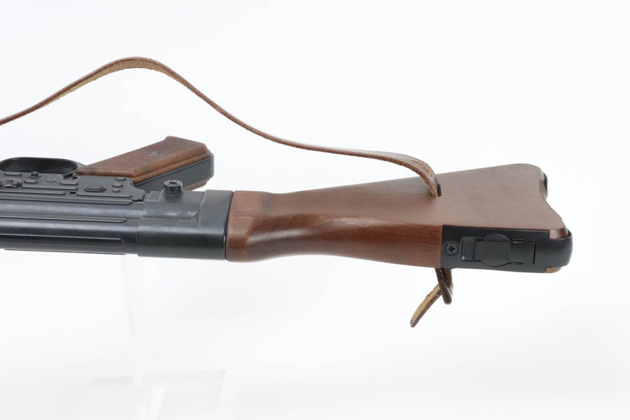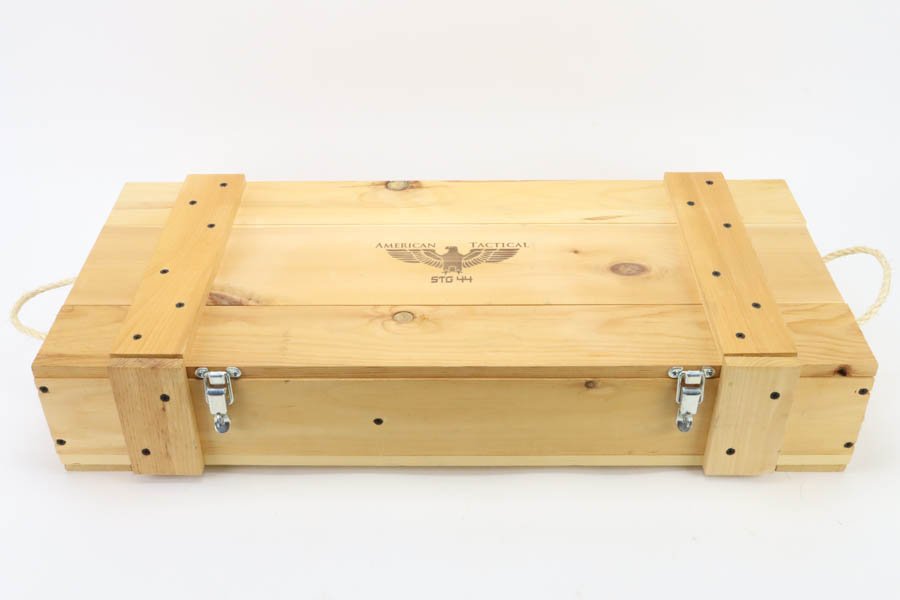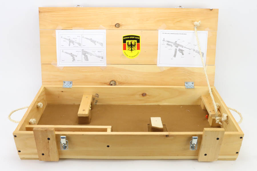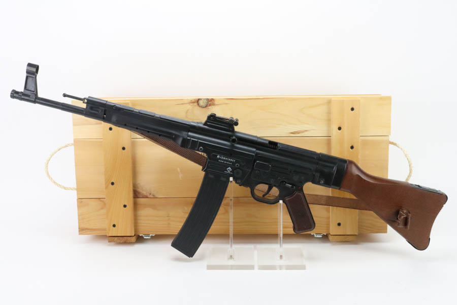 07/16/2024 – For sale is a STG-44 made by GSG that is chambered in .22lr. The rifle is in excellent condition with a deep bluing finish on the metal with minimal finish loss. The wood stock is in great condition with no cracks or breaks, but there is a small pressure dent below the sling slot on the left side. The bore is mirror bright. The rifle comes with a wood transit case to mimic WW2 rifle crates. The crate has some cracks from over-tightening of the screws on the sides. Inside is one spare grip panel and the owner’s manual.