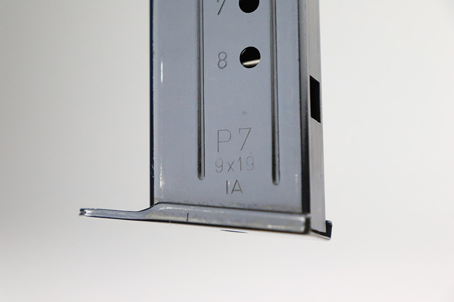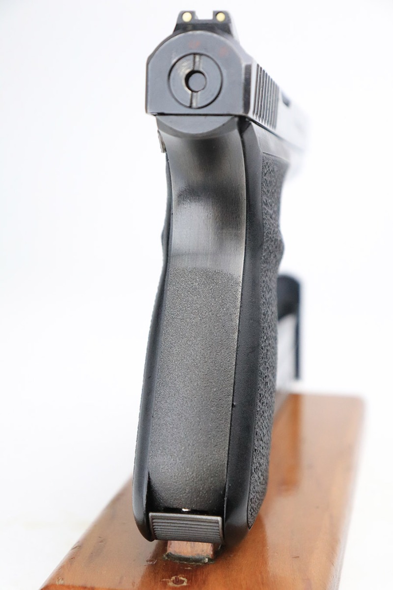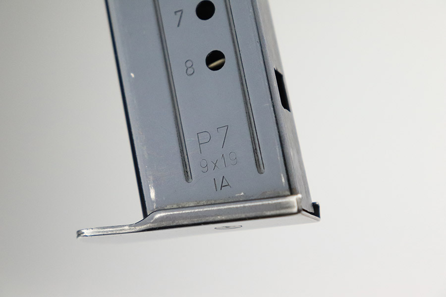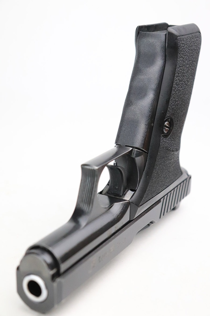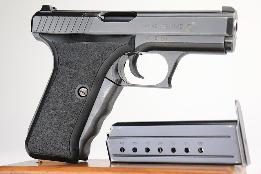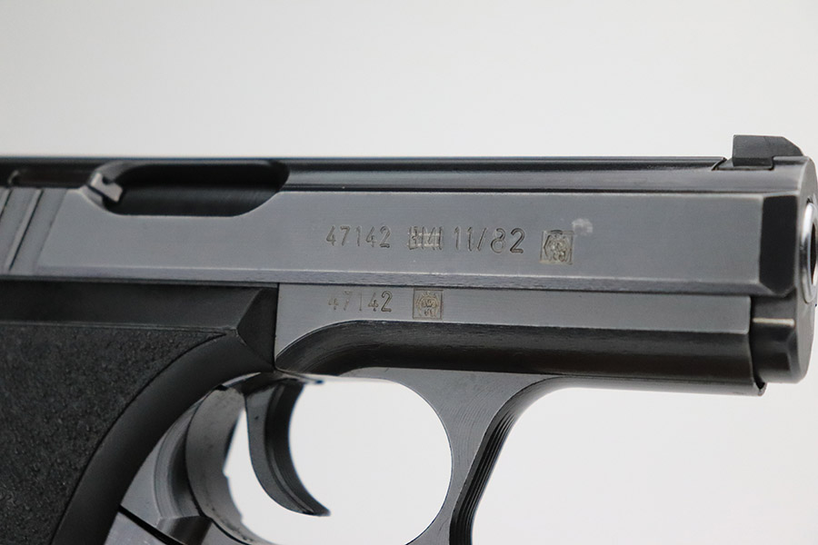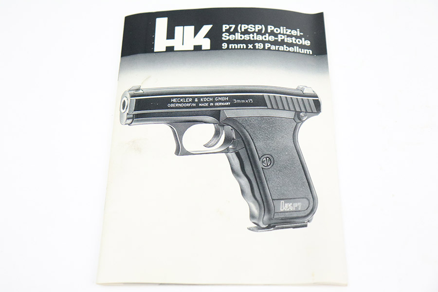 10/28/22 – This is an excellent example of an HK P7 that was manufactured in November of 1983. It is all matching and has the proper HK proofs. West German police issue with Import mark on the underside of the mag well. It comes with a period-correct plastic box (not numbered), a cleaning rod, multi-tool, owners manual, and two proper magazines. Overall, the gun is in excellent condition. There is just some very minor thinning on the back grip strap and edge wear on the slide. Comes with excellent black plastic grips. The bore is minty.