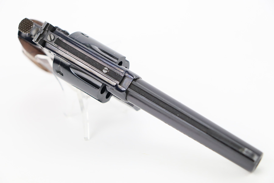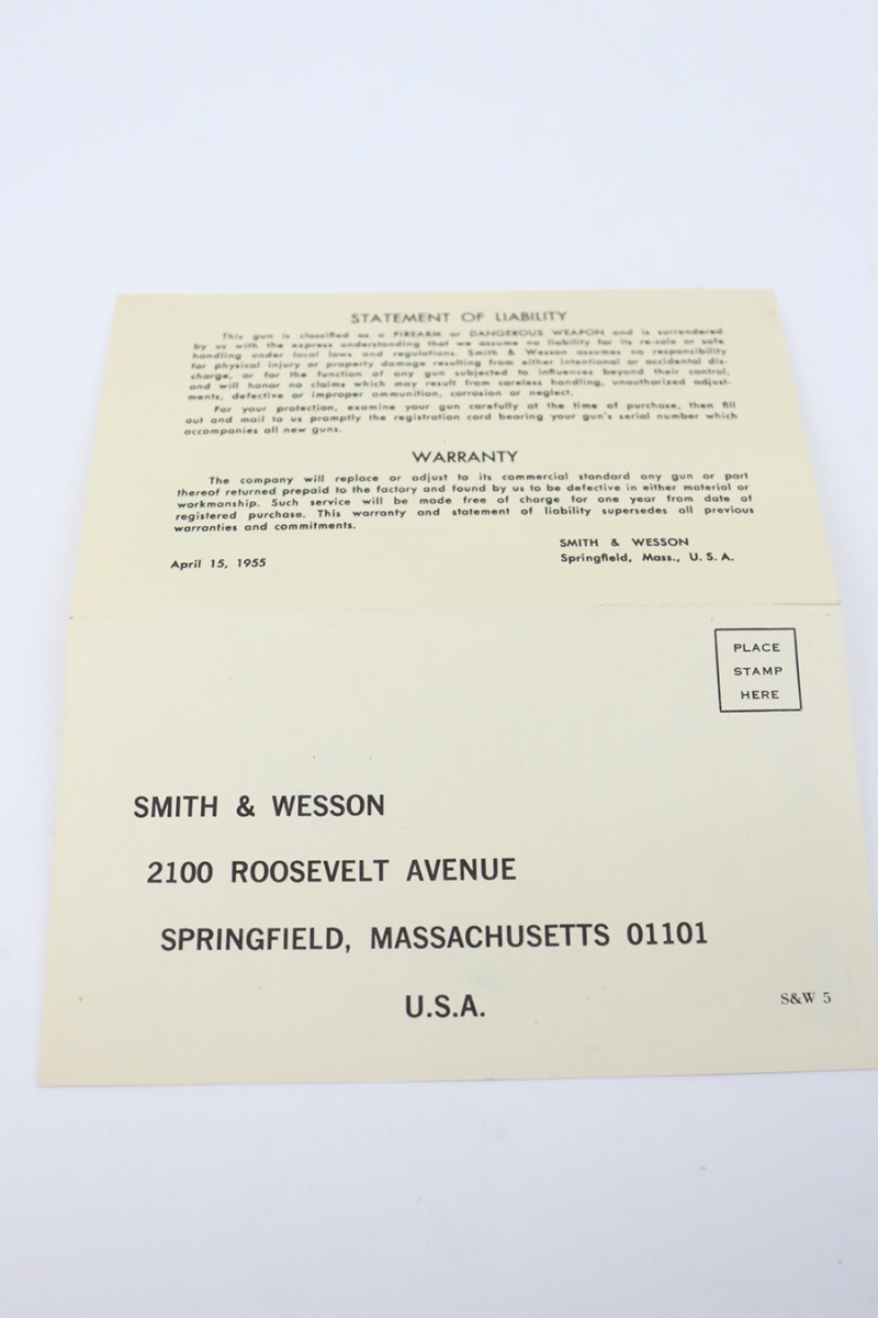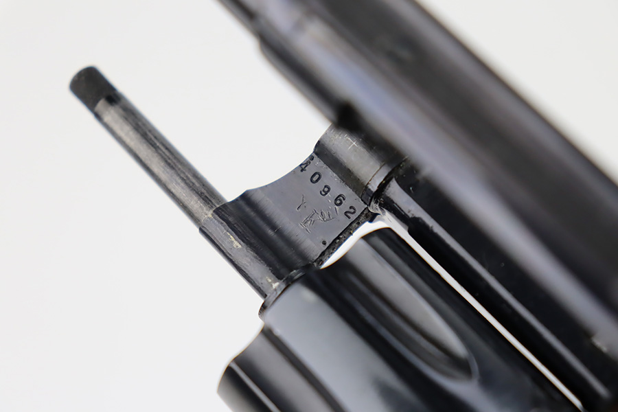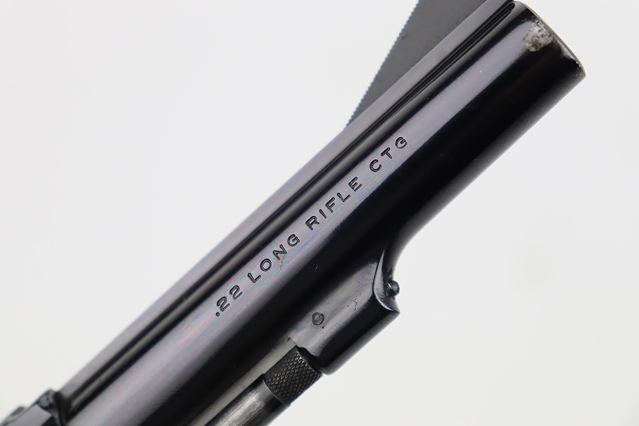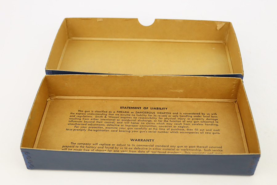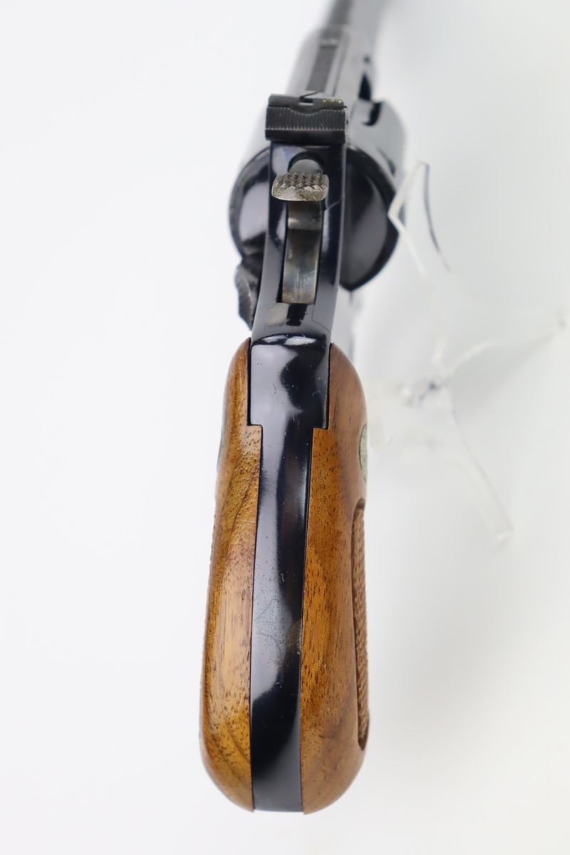 9/28/23 – This is an excellent Smith & Wesson Model 34-1 Kit Gun in its original, matching box. The revolver has about 97% of the blue remaining with minor muzzle wear, a turn line on the cylinder and minor wear on the back strap. Four inch barrel with minty bore. Excellent grips but mismatched to this gun. We couldn’t find the exact production date but appears it was made in the late 70s or early 80s. Box has the original manual and tools.