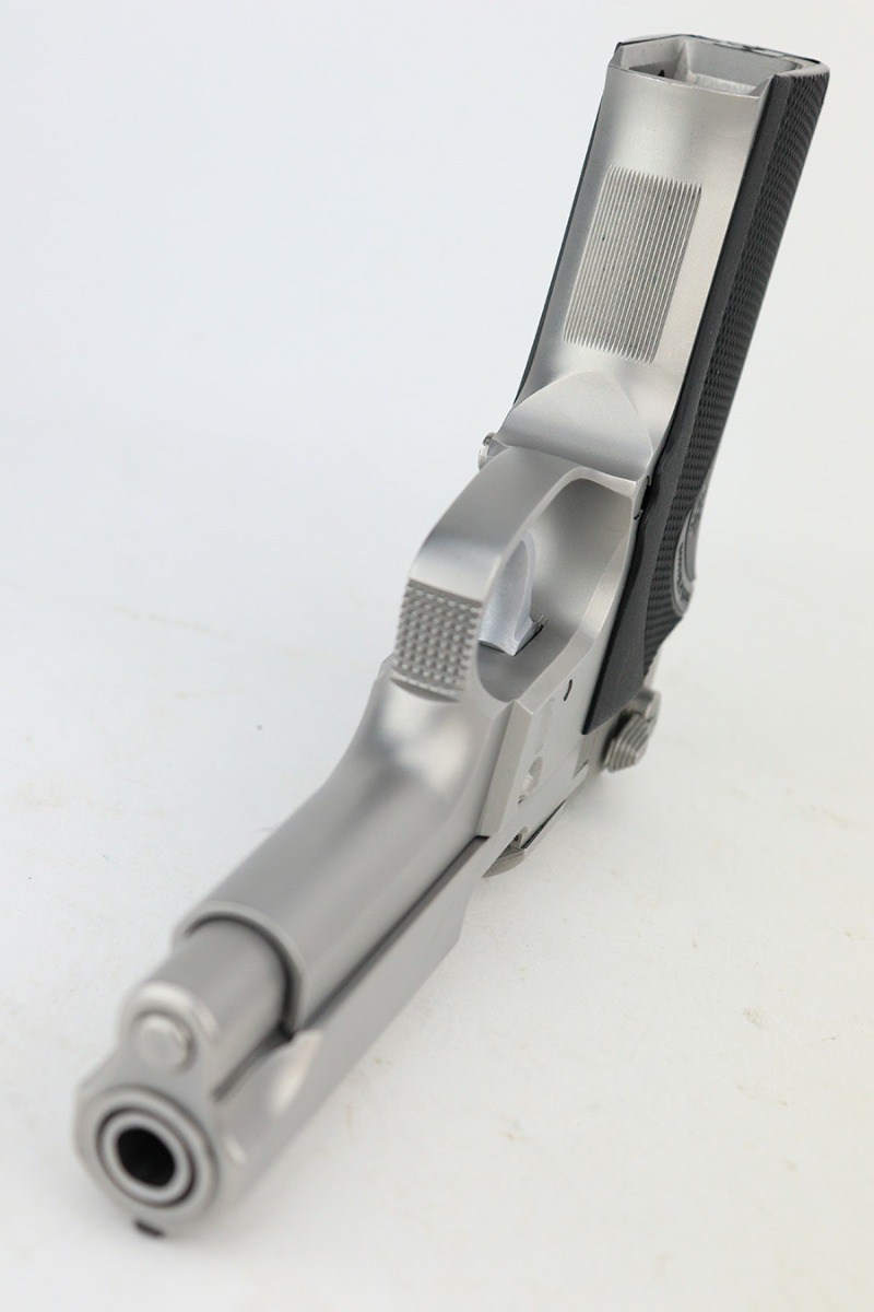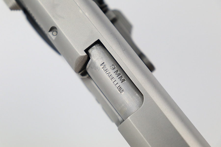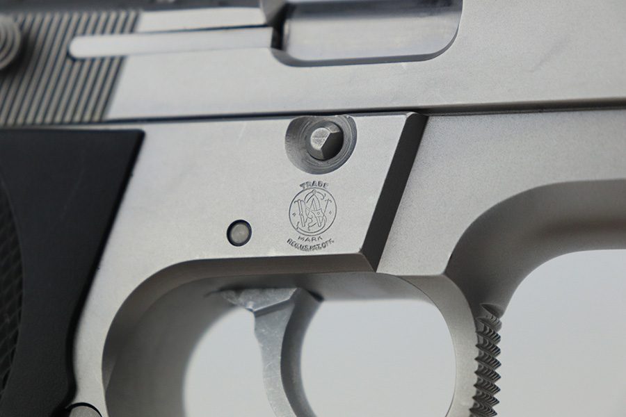 5/26/23 – This is an excellent example of a Smith & Wesson Model 5906 semi auto pistol, manufactured between 1989-1999, and chambered in 9mm. It is all matching and has a really nice stainless finish. It comes with a period-correct box that is not matching to the gun, owners manual, sales papers, and magazine. NOTE: The spare magazine is for the 6906, we will throw it in with this listing but this listing has only one correct magazine included. Overall, the gun is in excellent condition, but there are some small handling marks and very light scuffs here and there. Fitted with excellent black plastic grips. Excellent bore with strong rifling.