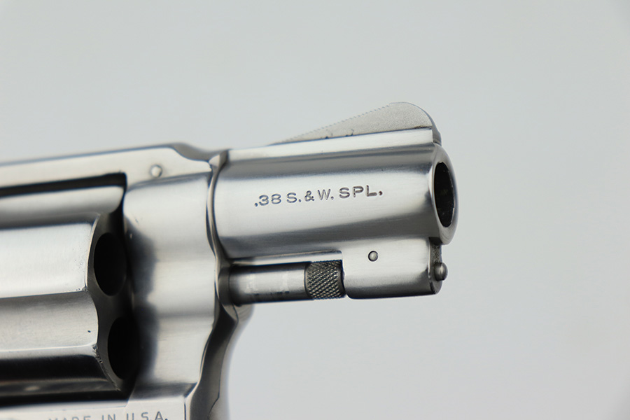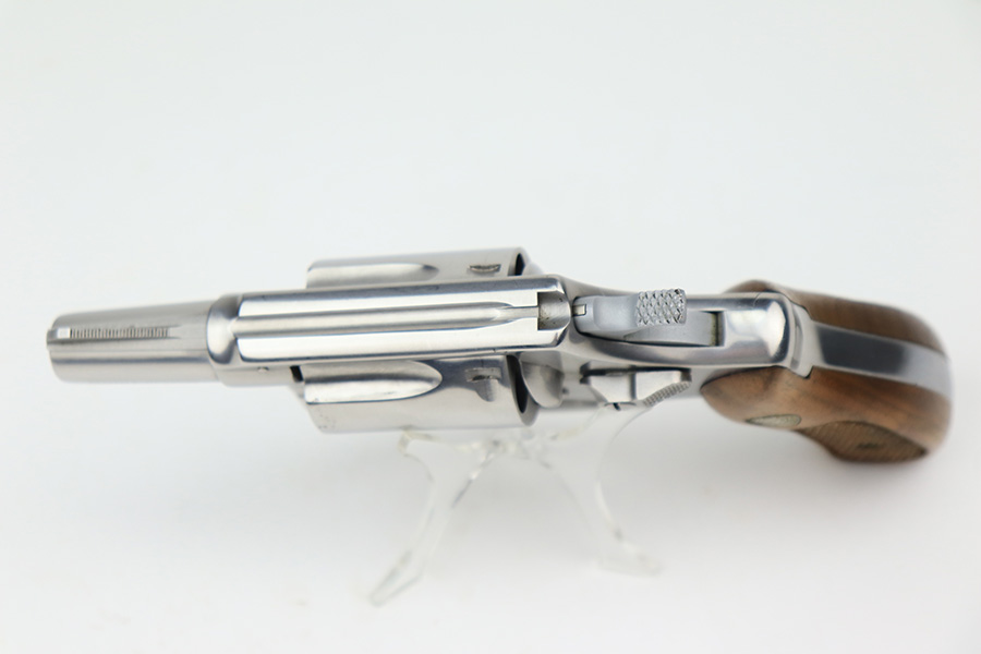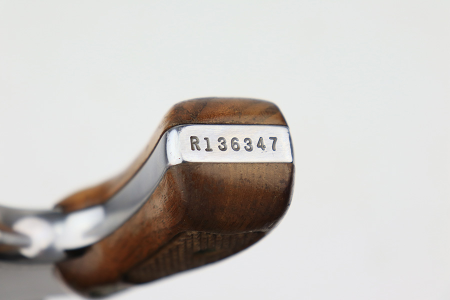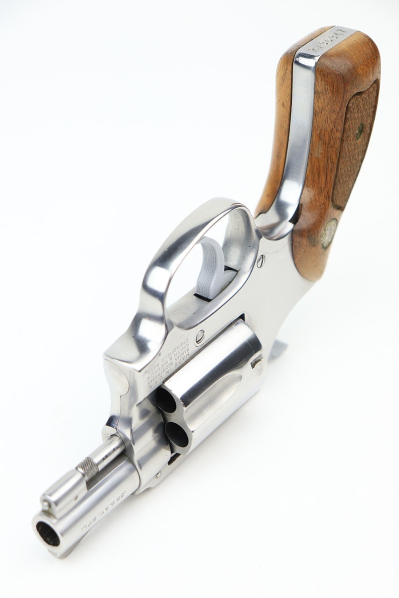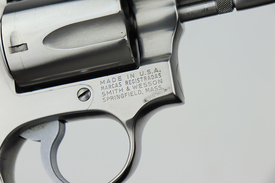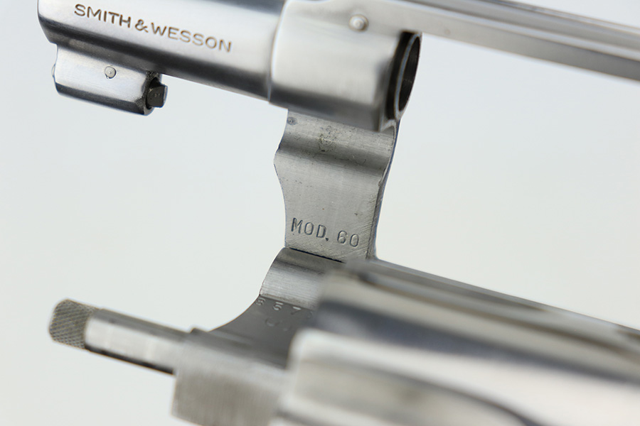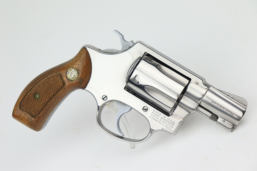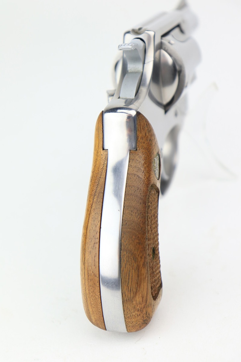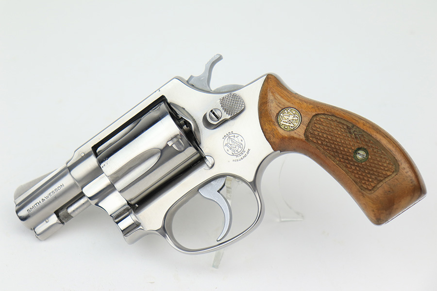3/17/22 – This is an excellent example of a Smith & Wesson Model 60 Revolver manufactured in the early 1970’s. The gun has a stainless finish and has a 2 inch barrel. It comes with the original matching-numbered box – the front panel is starting to tear away. Overall, the gun is in excellent condition. There are tiny micro-scratches in the finish throughout and one more noticeable scratch on the right side of the frame. One small area of tiny pitting on the cylinder. Very light roll mark on the cylinder. The cylinder is tight, and the action is smooth. Comes with excellent wood grips. The bore is mint.