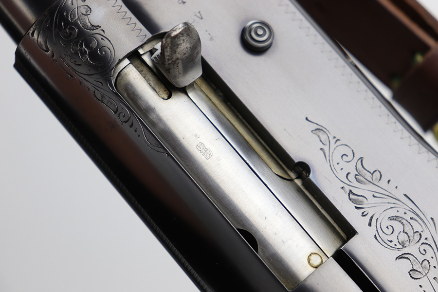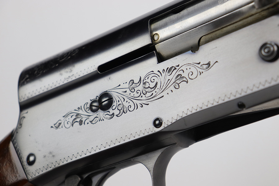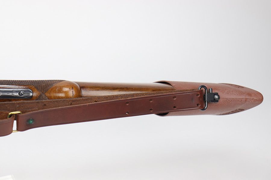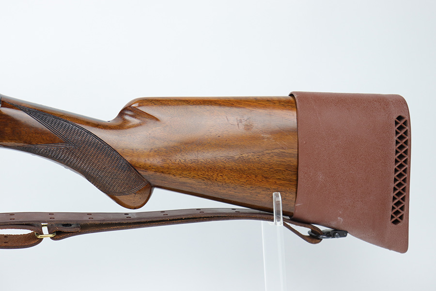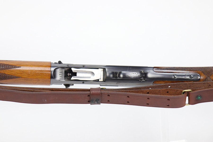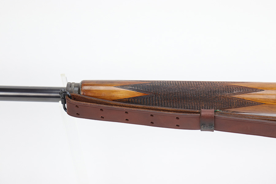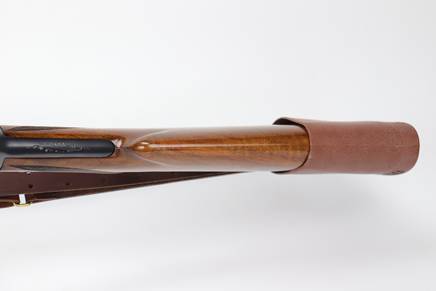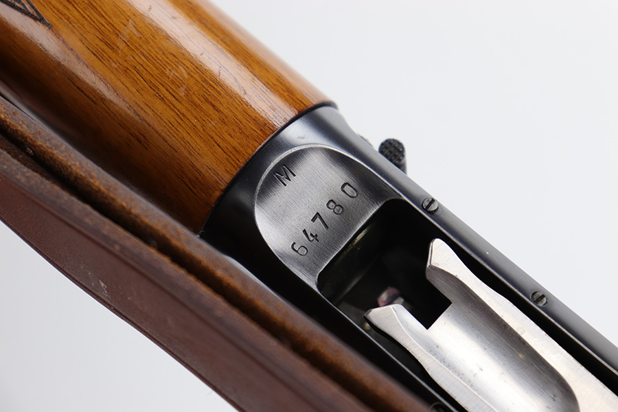 7/18/23 – This is an excellent example of a Browning A5 Light Twelve semi-auto shotgun, manufactured in Belgium in 1957 and chambered in 12 GA. All matching with the proper Belgian proofs throughout. It has retained about 97% of its rich bluing with just some small spots of wear on the top of the receiver and on the top of the barrel (around where it meets the receiver). Excellent wood furniture with just some minor scratches and handling marks here and there. Comes with a very nice rubber butt pad and leather sling. Near-mint bore.