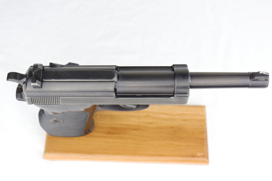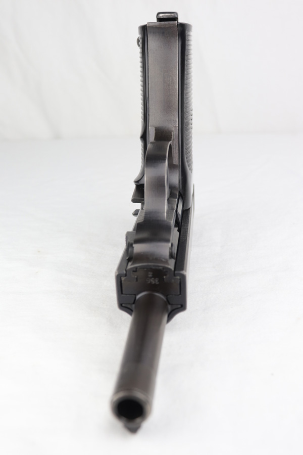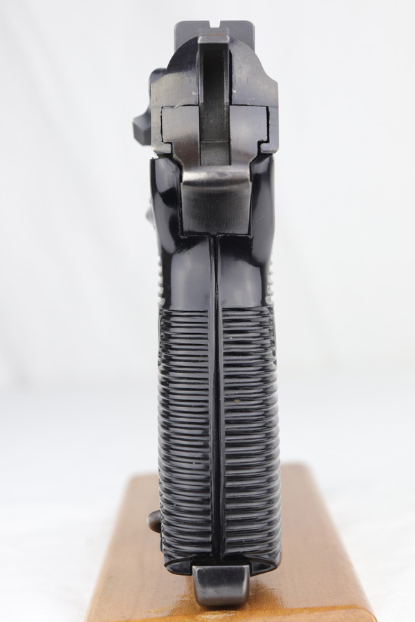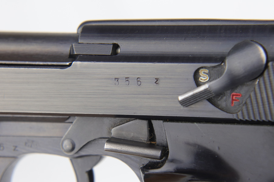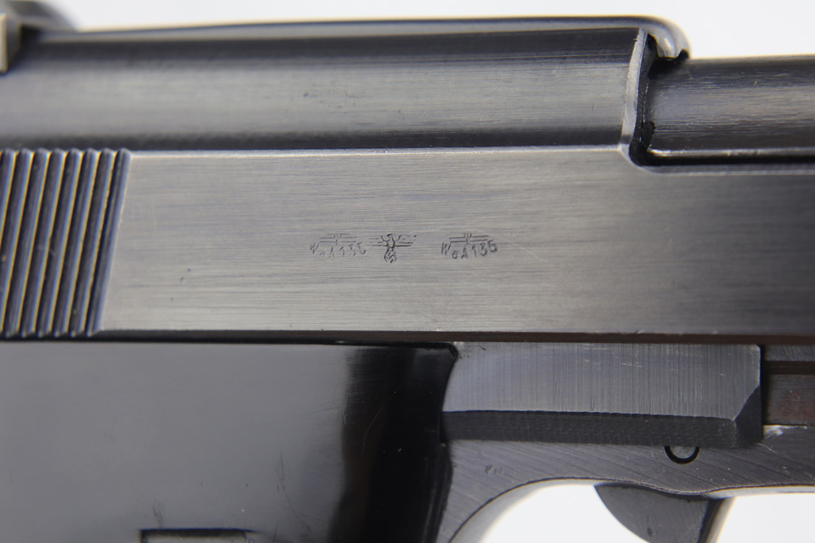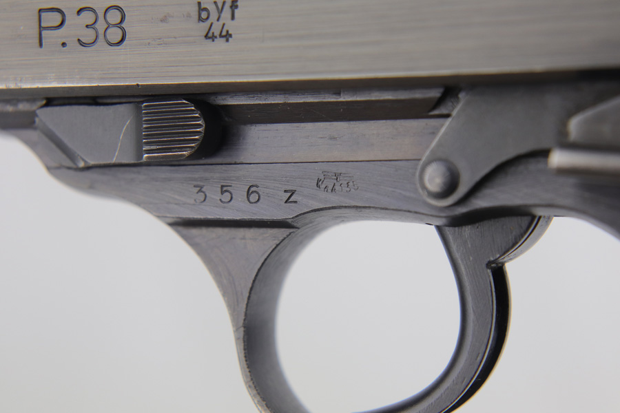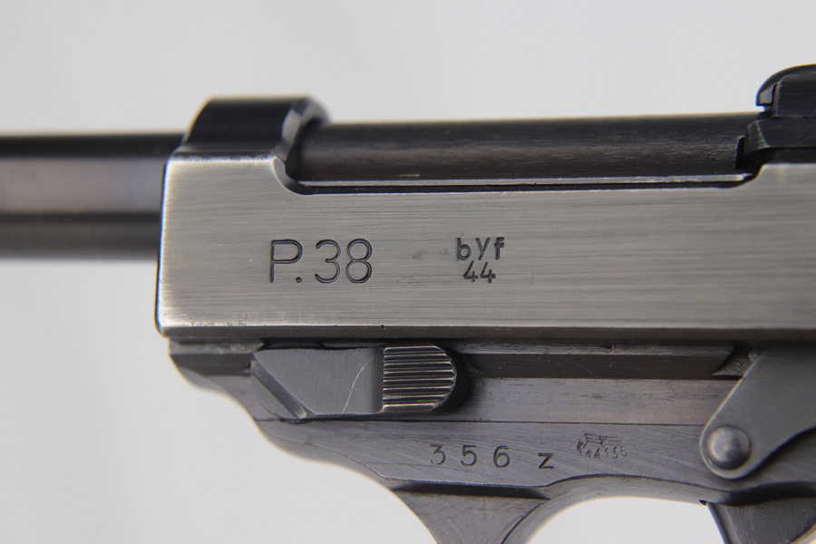 12/27/18 – This is an excellent example of a late war Mauser P.38, marked BYF 44, and in the Z block. It also has a 3 digit serial number. The original late war finish would be in the 98% range save for the thinning front strap. The late war Mauser black plastic grips are also excellent to match the condition of the gun. It has all matching parts including the slide, frame, barrel and locking block. The gun also has the proper WaA/135 military proofs. It also comes with a proper Eagle 135 marked magazine. The bore is excellent and shiny. I would rate it a 9 out of 10. Guaranteed original and authentic.