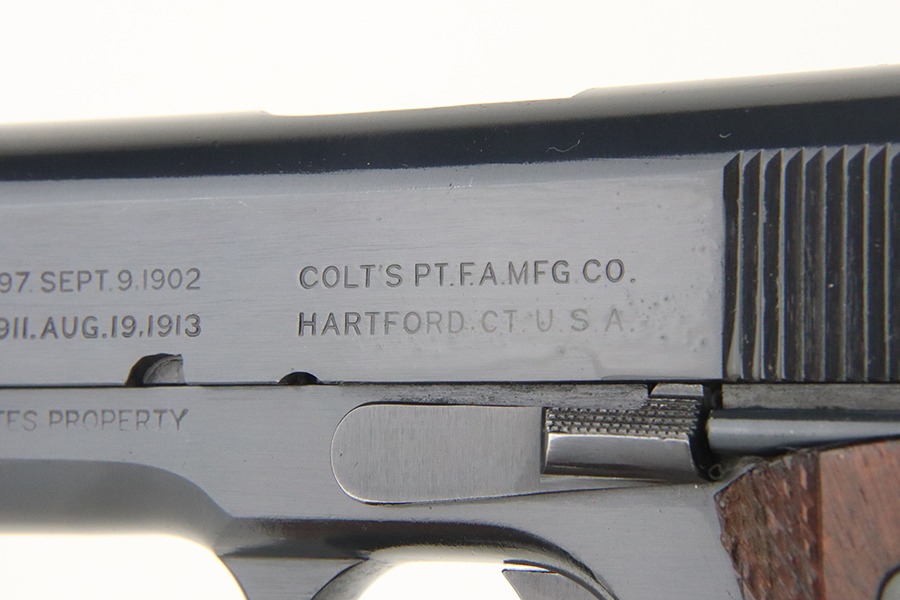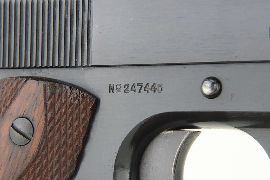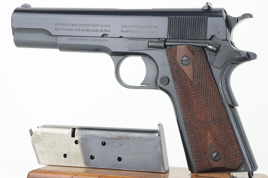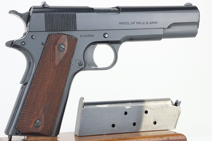 11/8/24 – This is a gorgeous Colt M1911 from 1918 that was issued to the U.S. Army. The finish is immaculate but is a very high-quality restoration that retains very sharp markings. WW2-era barrel with mint bore, and small ‘F’ under lug. Minty wood grips. Proper two-tone mag.