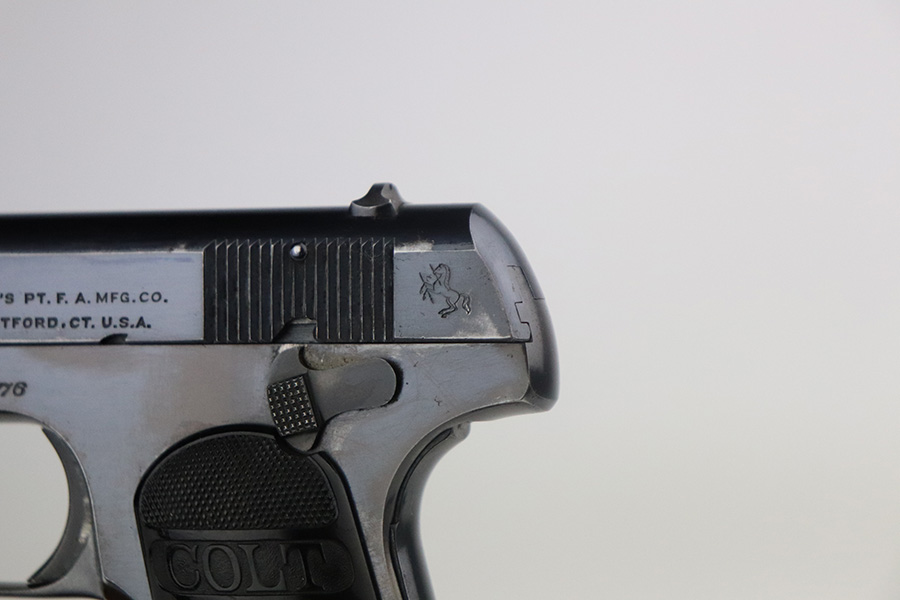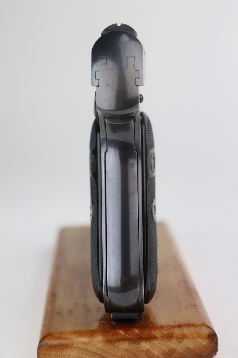 7/12/21 – This is an excellent example of a Colt Model 1919 manufactured in 1919. It is all correct and has retained about 94-95% of its original high polish finish. There is very minor wear on the high edges of the slide and around the muzzle. There is spotty wear on both sides of the slide, especially near the muzzle. Some tiny dots of discoloration on the top of the slide and on the front strap. Comes with excellent grips and a proper magazine. The bore has good rifling with minor pin-pricking throughout.