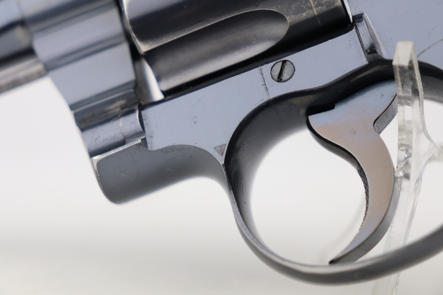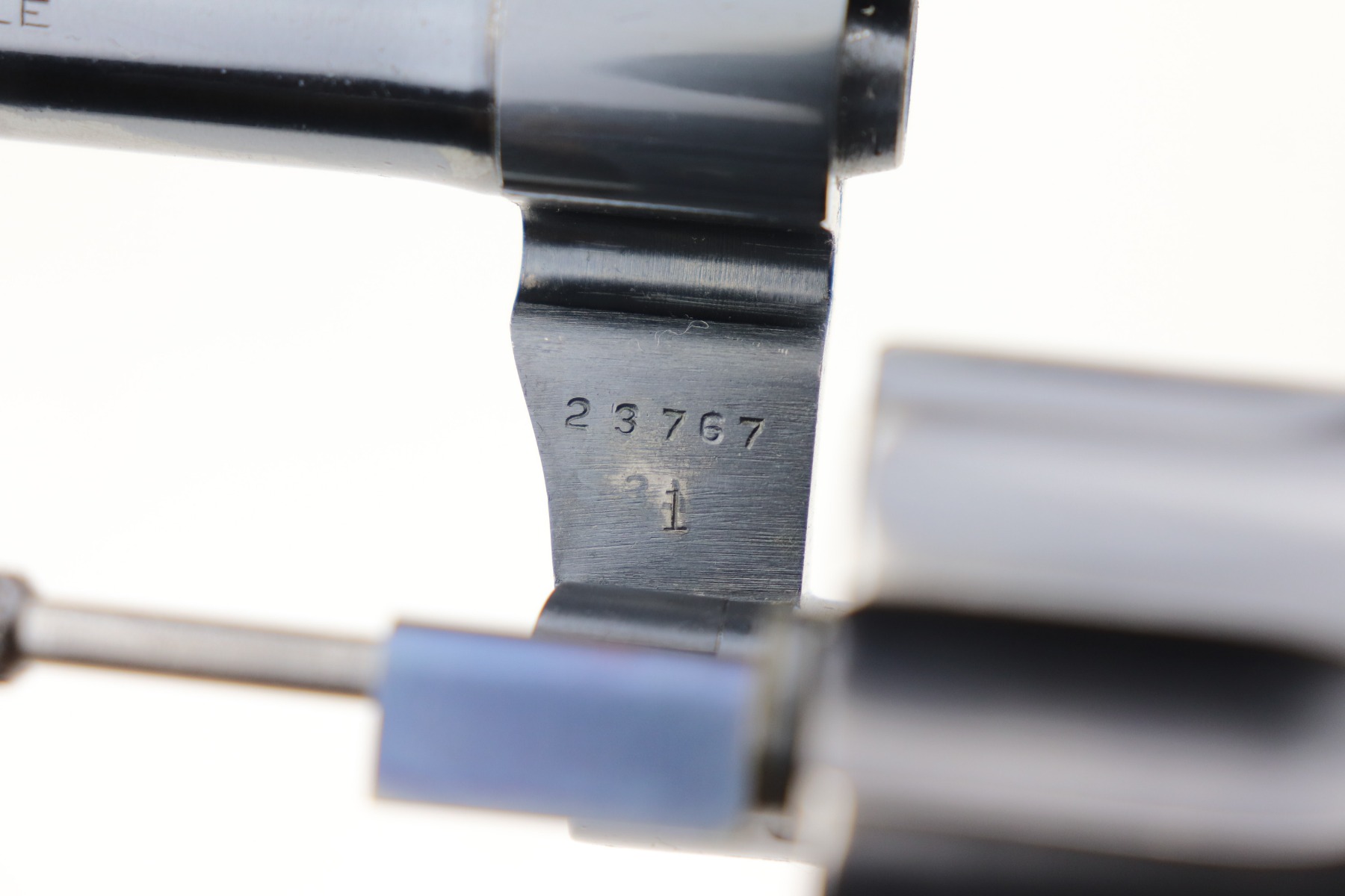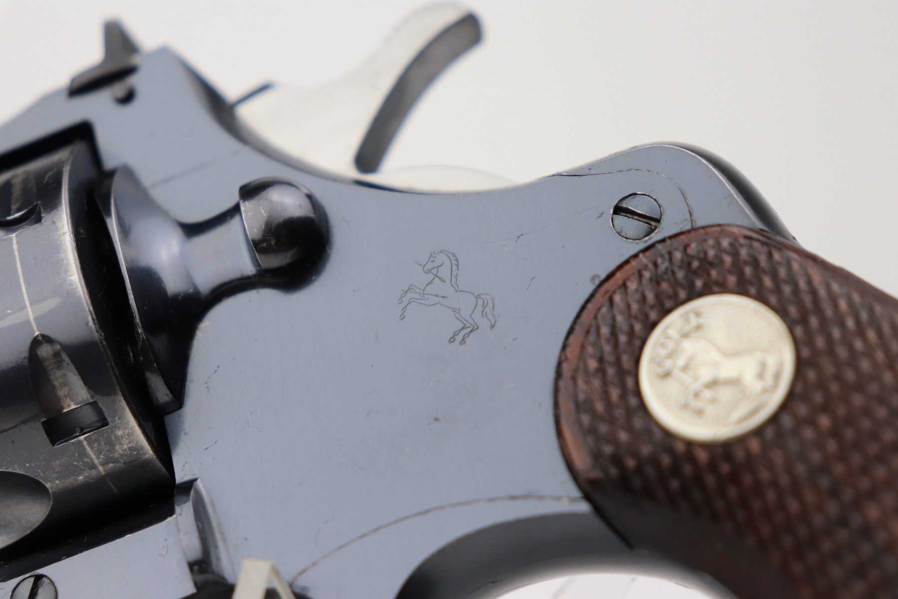 3/1/21 – This is an excellent example of a Colt Officers Model Target Revolver, chambered in .22 LR. It was manufactured in 1941. It is all matching and in excellent condition, retaining about 96% of its original bluing. There is wear around the muzzle, high edges of the cylinder, and at the base of the front strap. Light roll mark on the cylinder. The cylinder is tight and the action is smooth. Excellent wood grips. The bore is mint. 6 inch barrel.