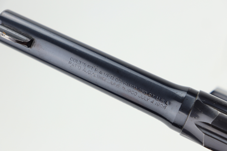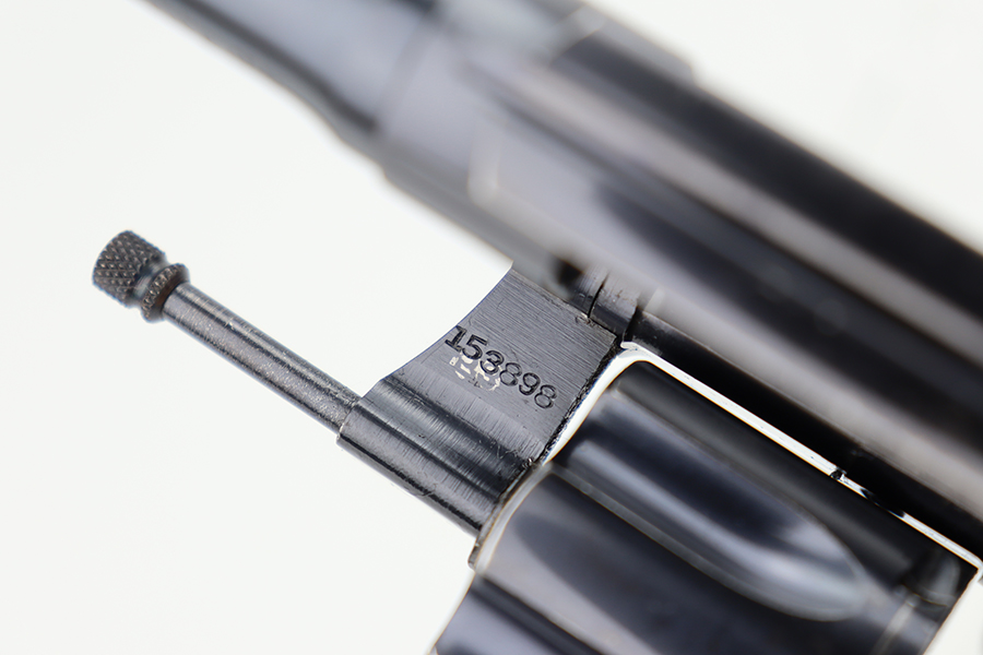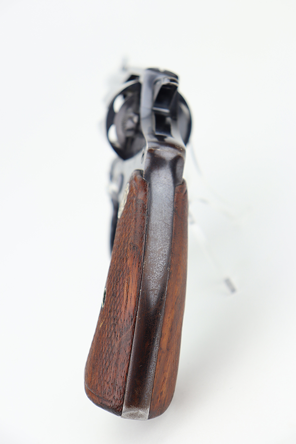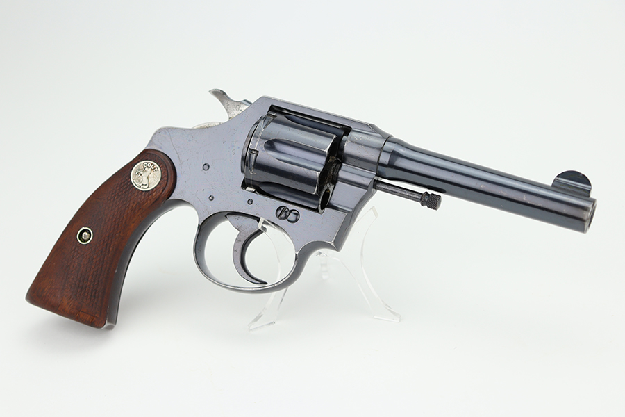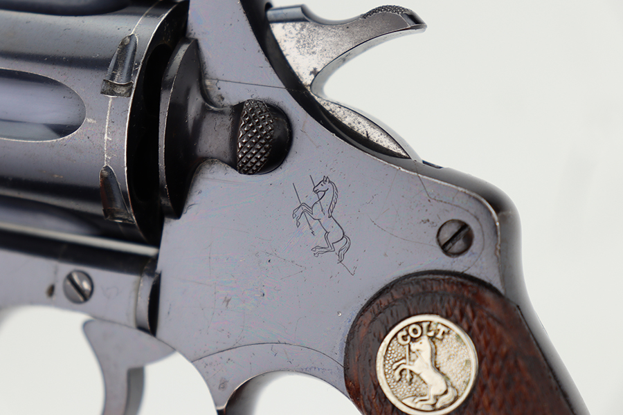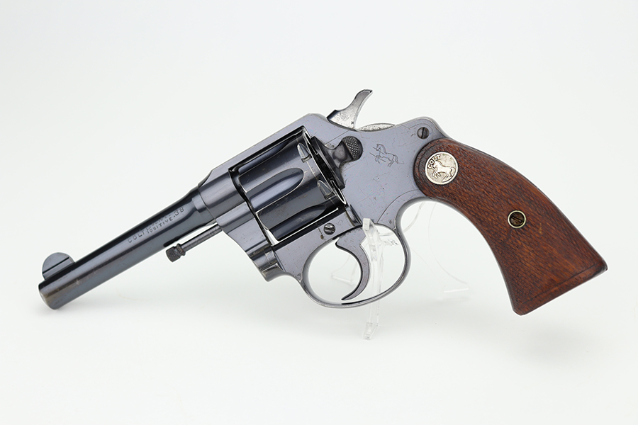 6/28/24 – This is an excellent example of a Colt Police Positive, manufactured in 1924 and chambered in .38 Caliber. All matching and has retained about 96-97% of its original high polish finish. There is minor muzzle wear, minor high edge wear, dulling on the grip straps, and some small scratches here and there. Fitted with nice checkered wood grips. Mint bore.
